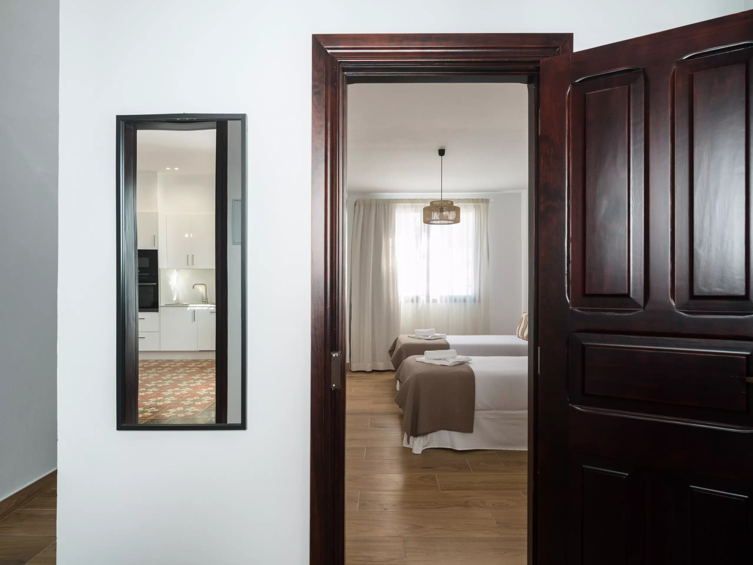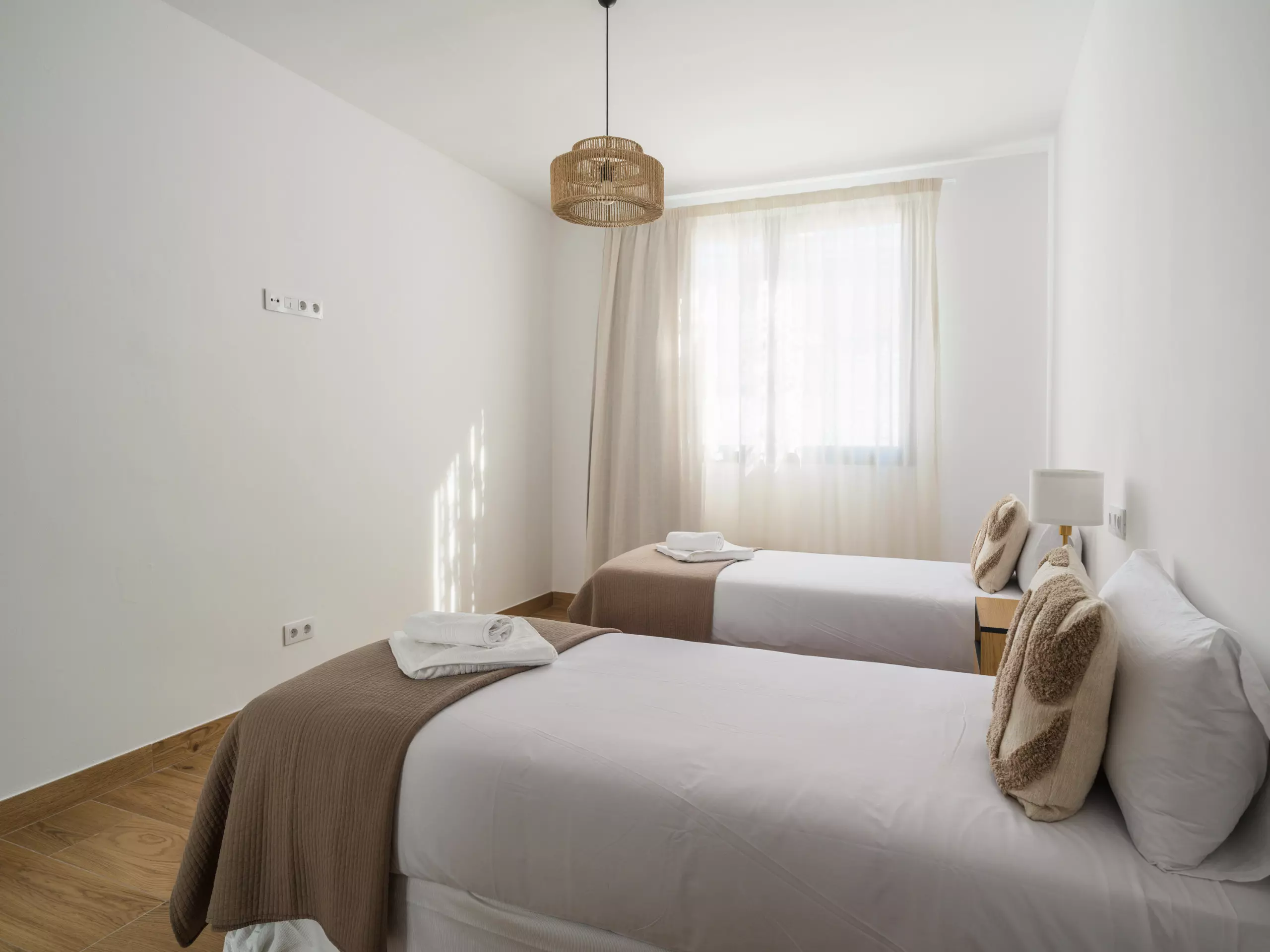 Deuxième chambre avec deux lits individuels et un dressing séparé.