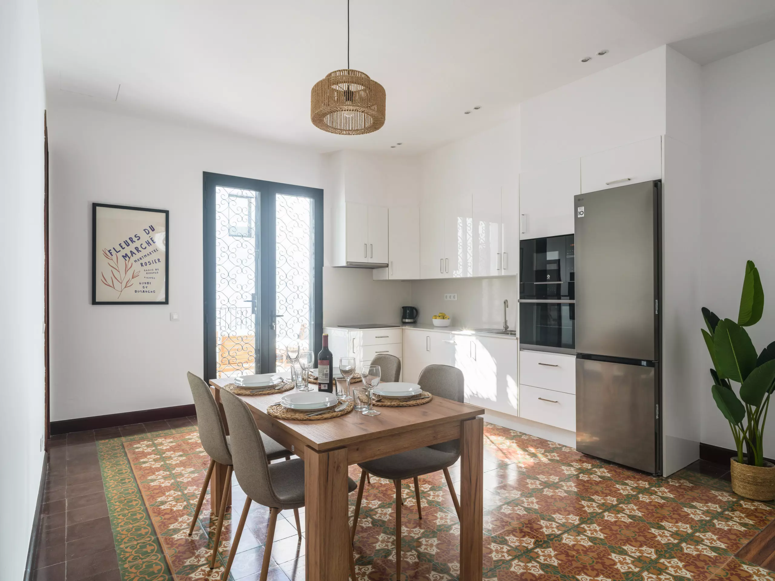 La maison conserve des éléments originaux avec de la personnalité, comme le sol hydraulique dans certaines pièces, qui apporte une touche unique et pleine de caractère, mélangeant l'ancien et le moderne de manière harmonieuse.
