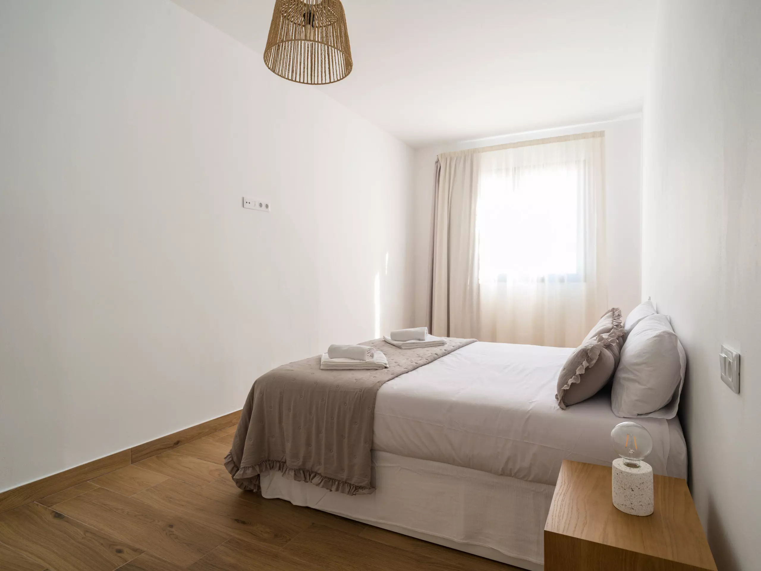Chambre principale très spacieuse avec un lit double et une ambiance sereine.