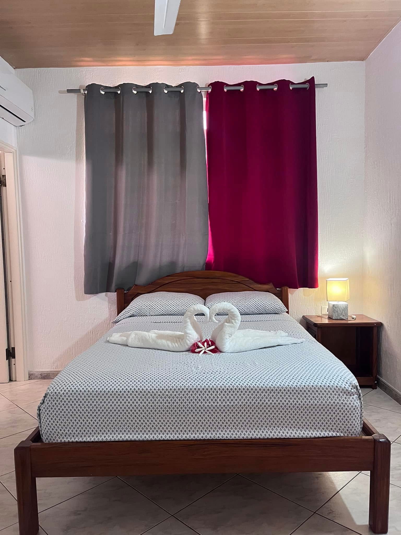 La villa bénéficie d'une chambre climatisée avec lit queen size et matelas orthopédique. La salle de bain est indépendante, avec lavabo, douche et toilettes.