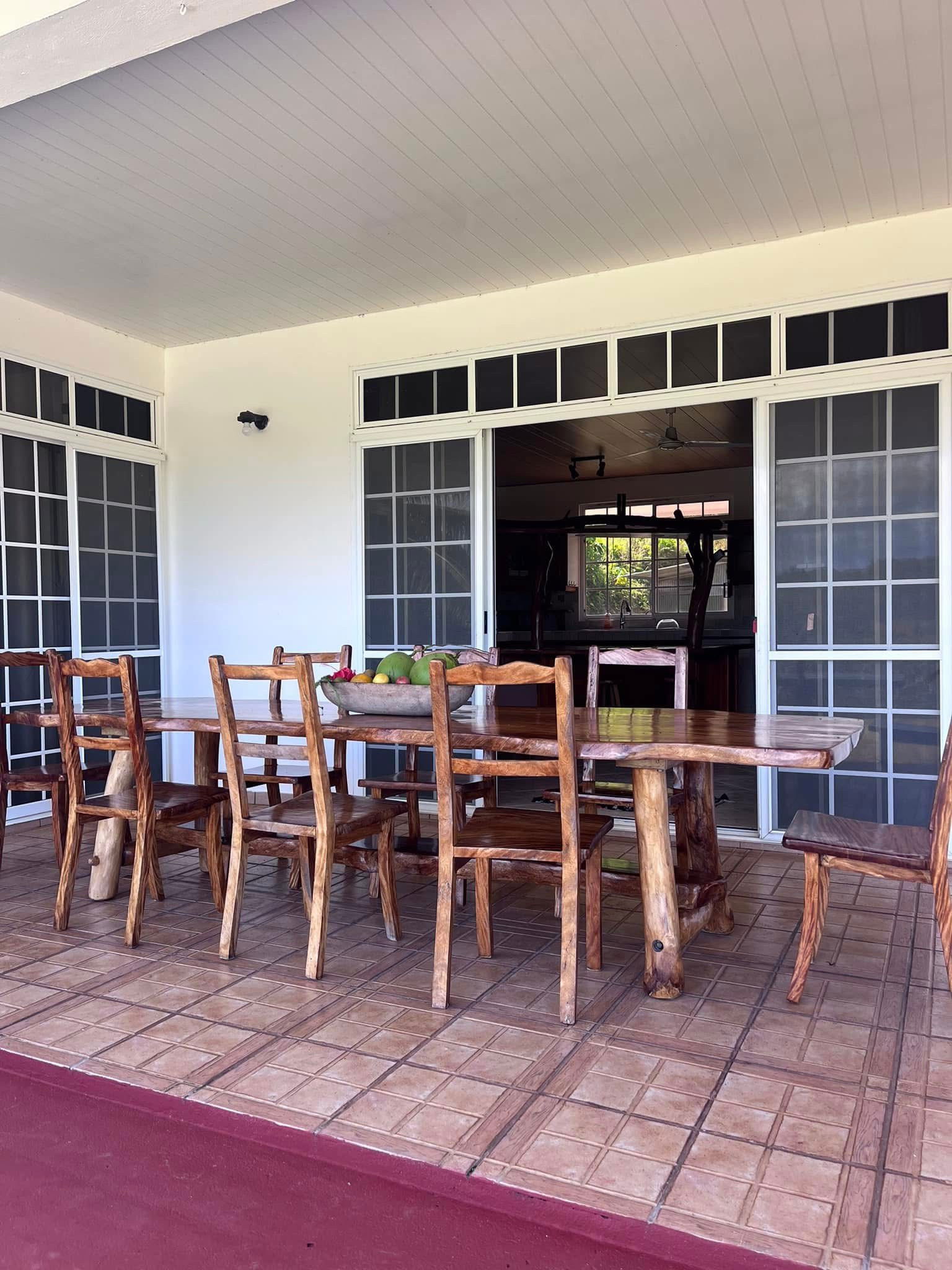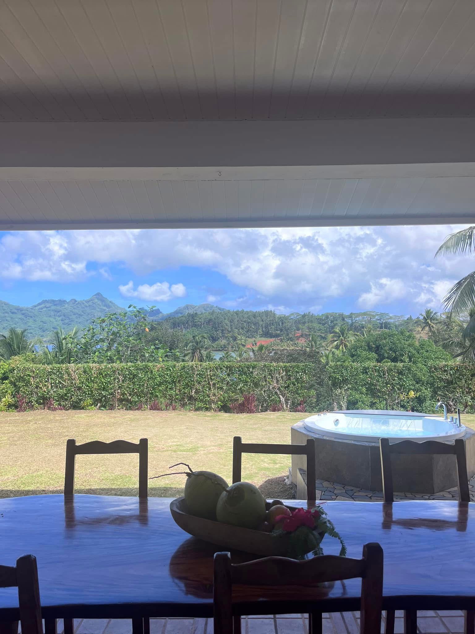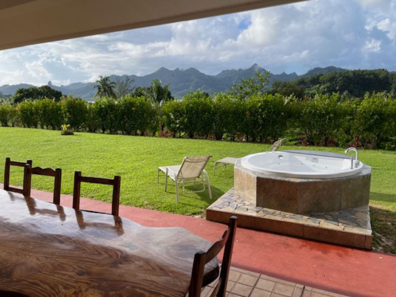 Votre lieu favori sera la terrasse où vous pourrez vous détendre, prendre vos repas et préparer vos barbecues... et surtout profiter du Jacuzzi à votre disposition! La villa bénéficie aussi d'un très grand jardin arboré qui offre un terrain de jeu idéal pour petits et grands. En contre bas de la propriété il y a la rivière de Maroe, lieu chargé de "Mana" et une plantation de noni.