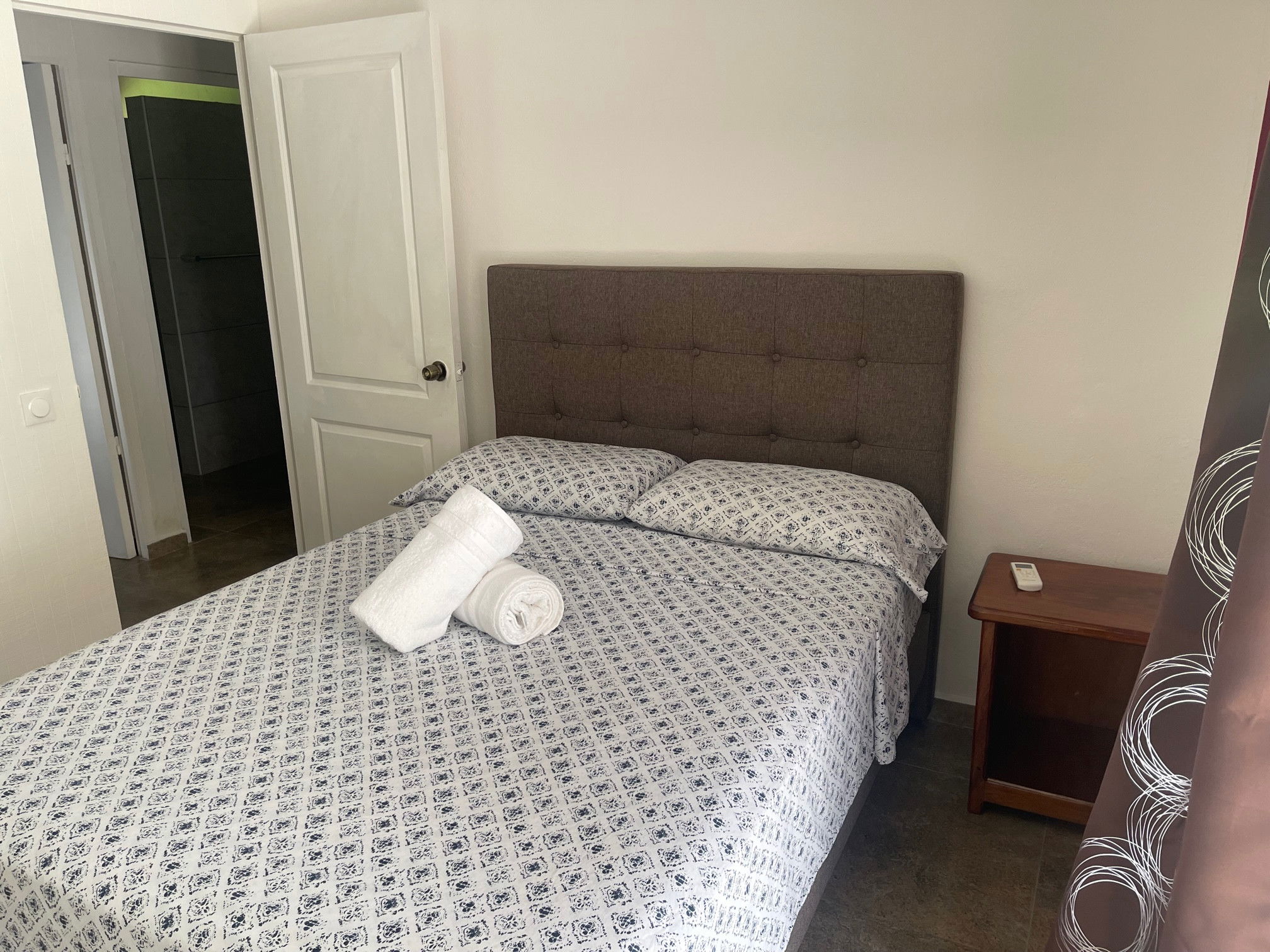 La villa bénéficie de 3 chambres, chacune avec lit queen size et matelas orthopédique. La salle de bain est indépendante, avec lavabo, douche et toilettes.