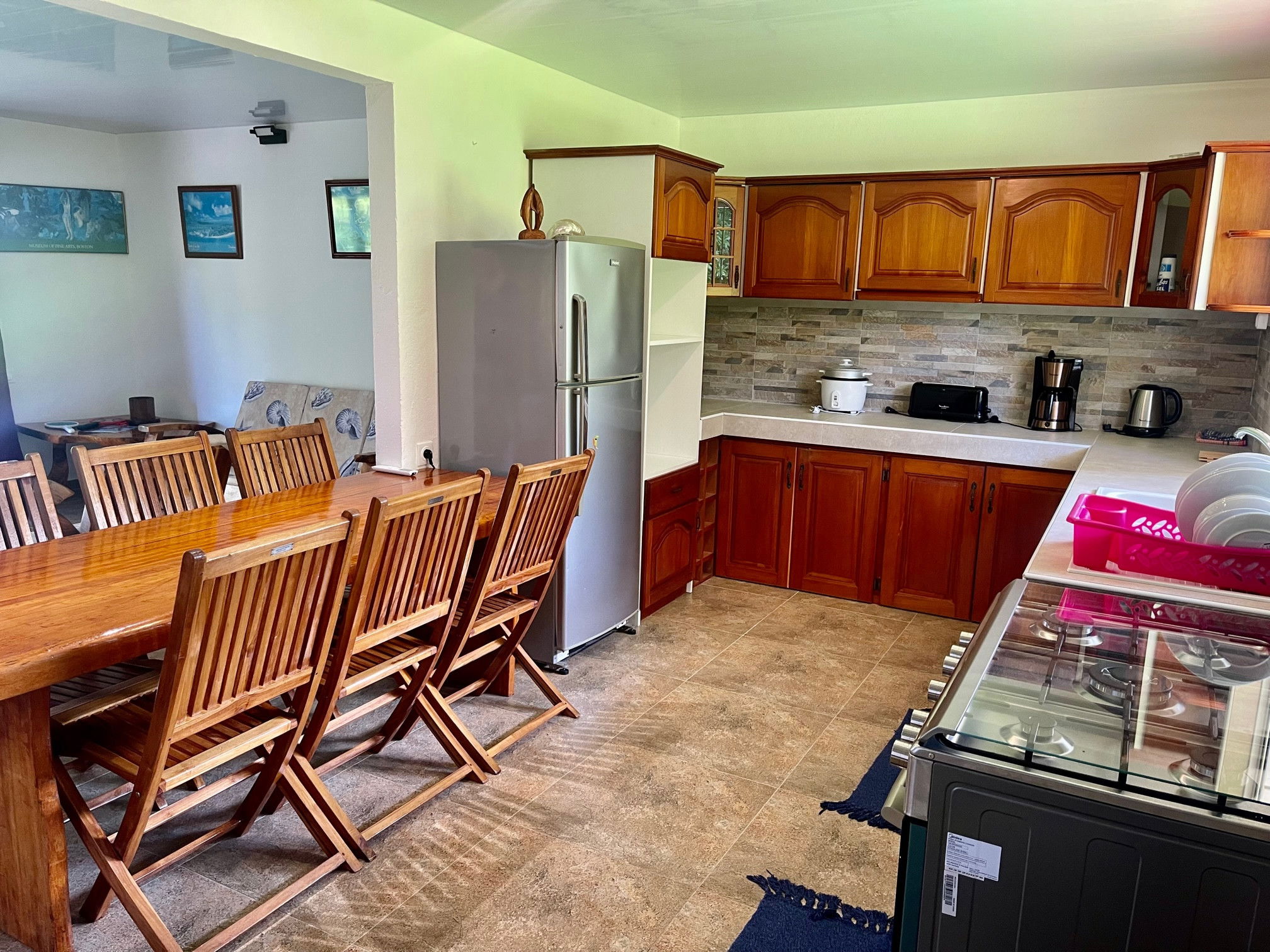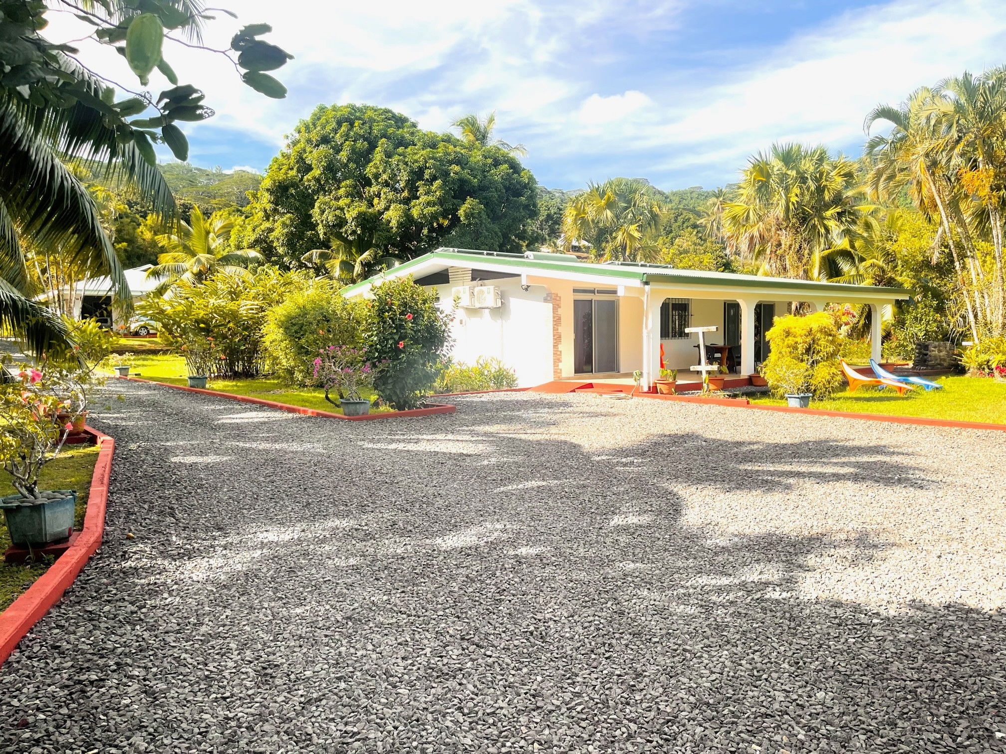 Votre lieu favori sera la terrasse où vous pourrez vous détendre, prendre vos repas et préparer vos barbecues... La villa bénéficie aussi d'un très grand jardin arboré qui offre un terrain de jeu idéal pour les enfants. Au fond de la propriété il y a la rivière de Maroe, lieu chargé de "Mana" et une plantation de noni.