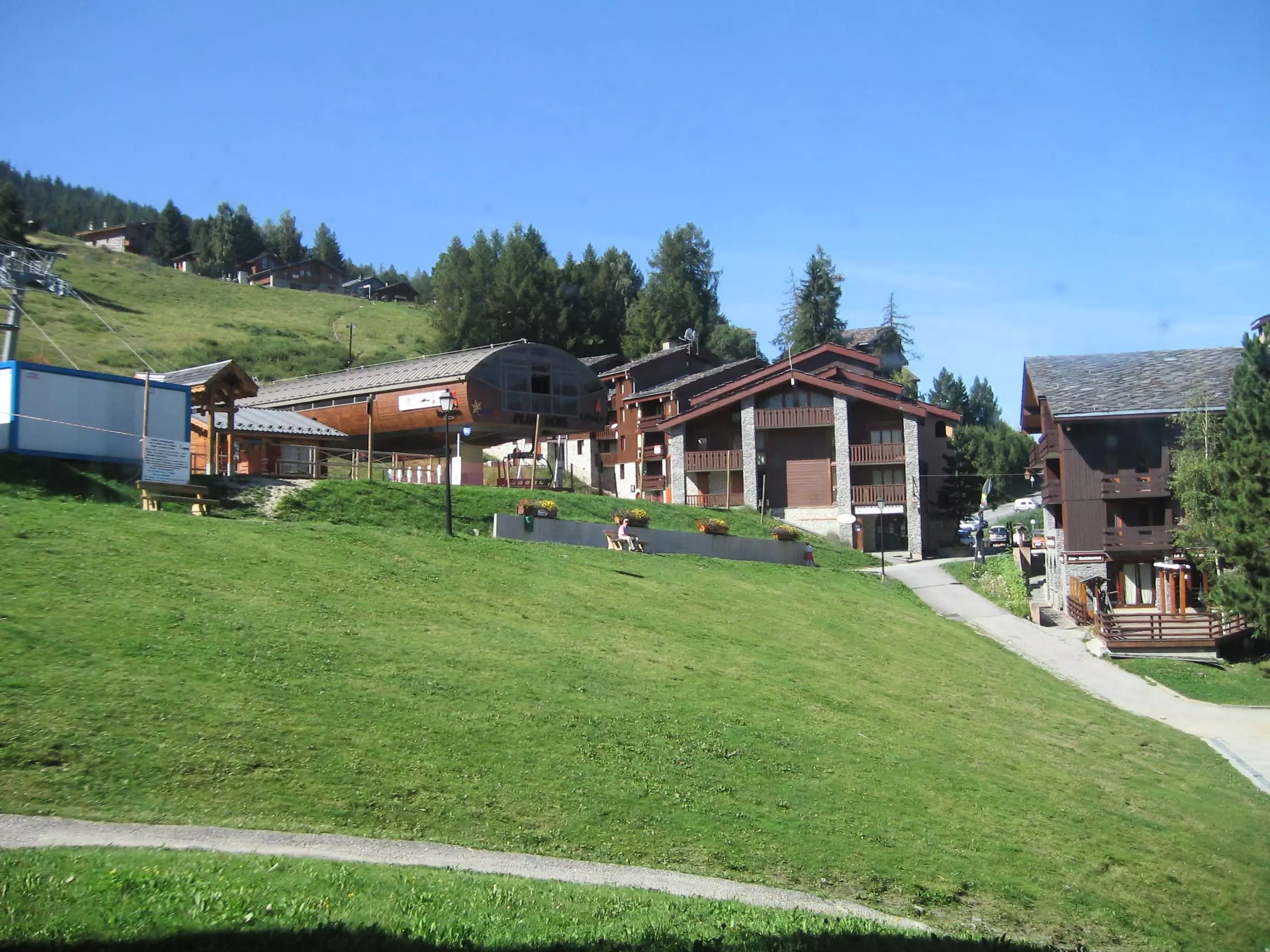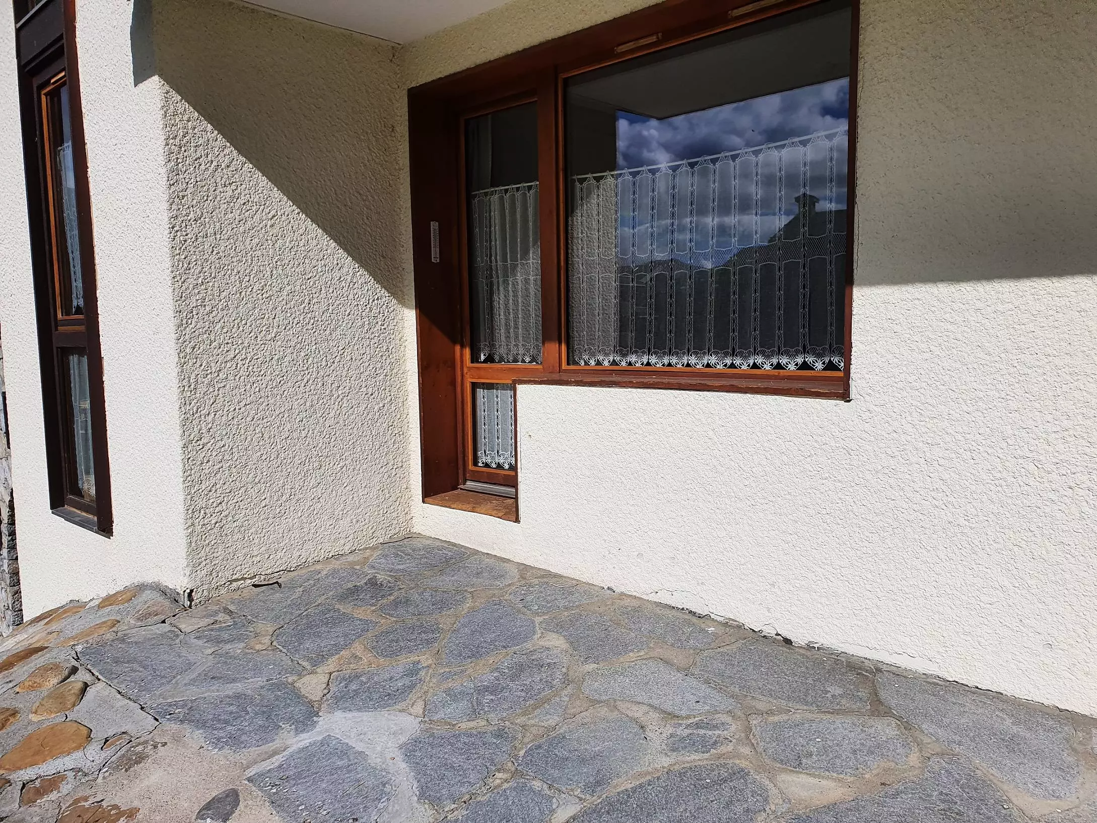 La terrasse avec vue sur la place du Carreau est exposée Sud-Ouest. Le casier à skis est dans la résidence.