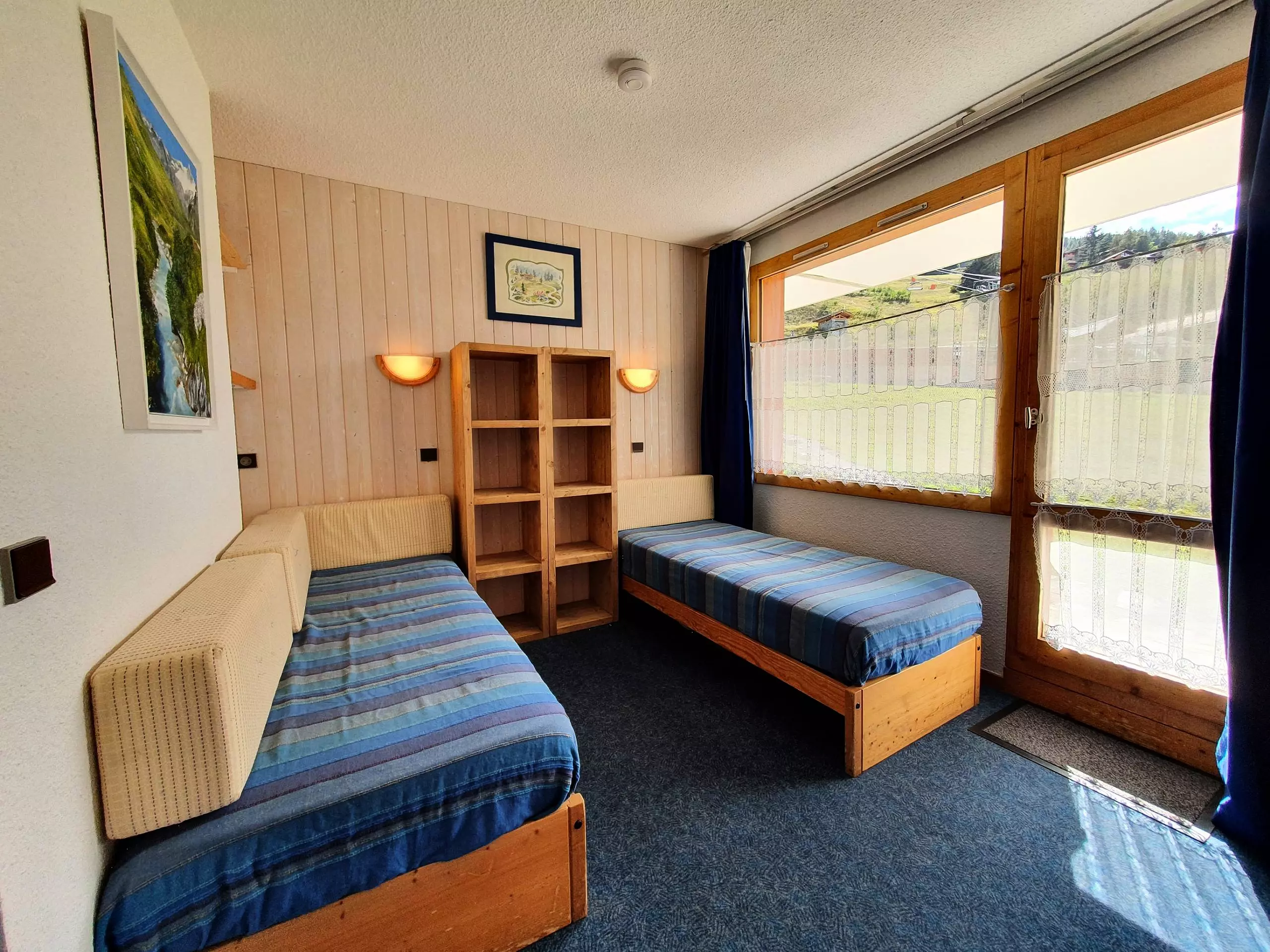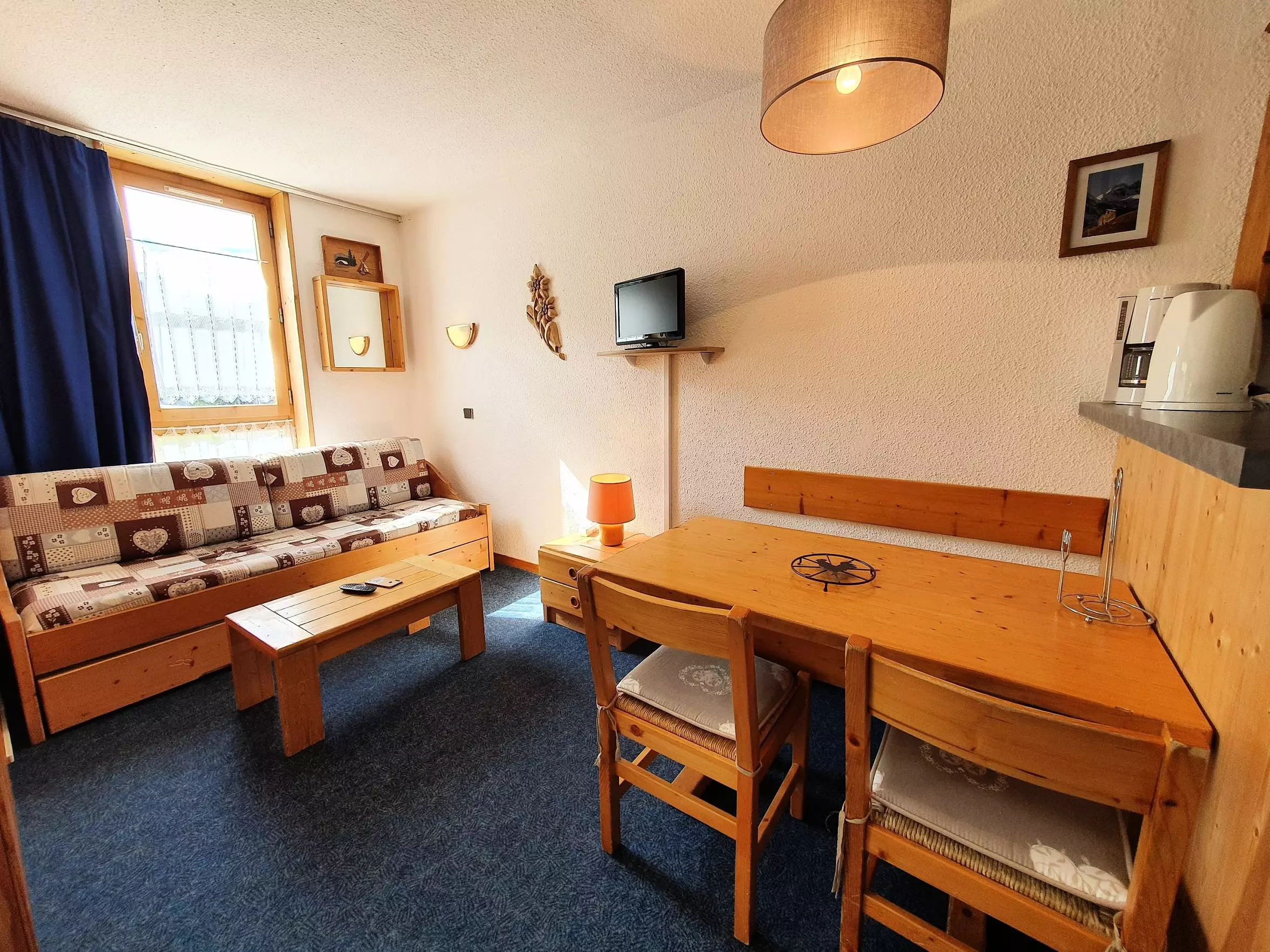 - un séjour avec côté coin nuit 2 lits simples et côté coin repas 1 banquette lit simple avec gigogne, 1 TV, 1 radio