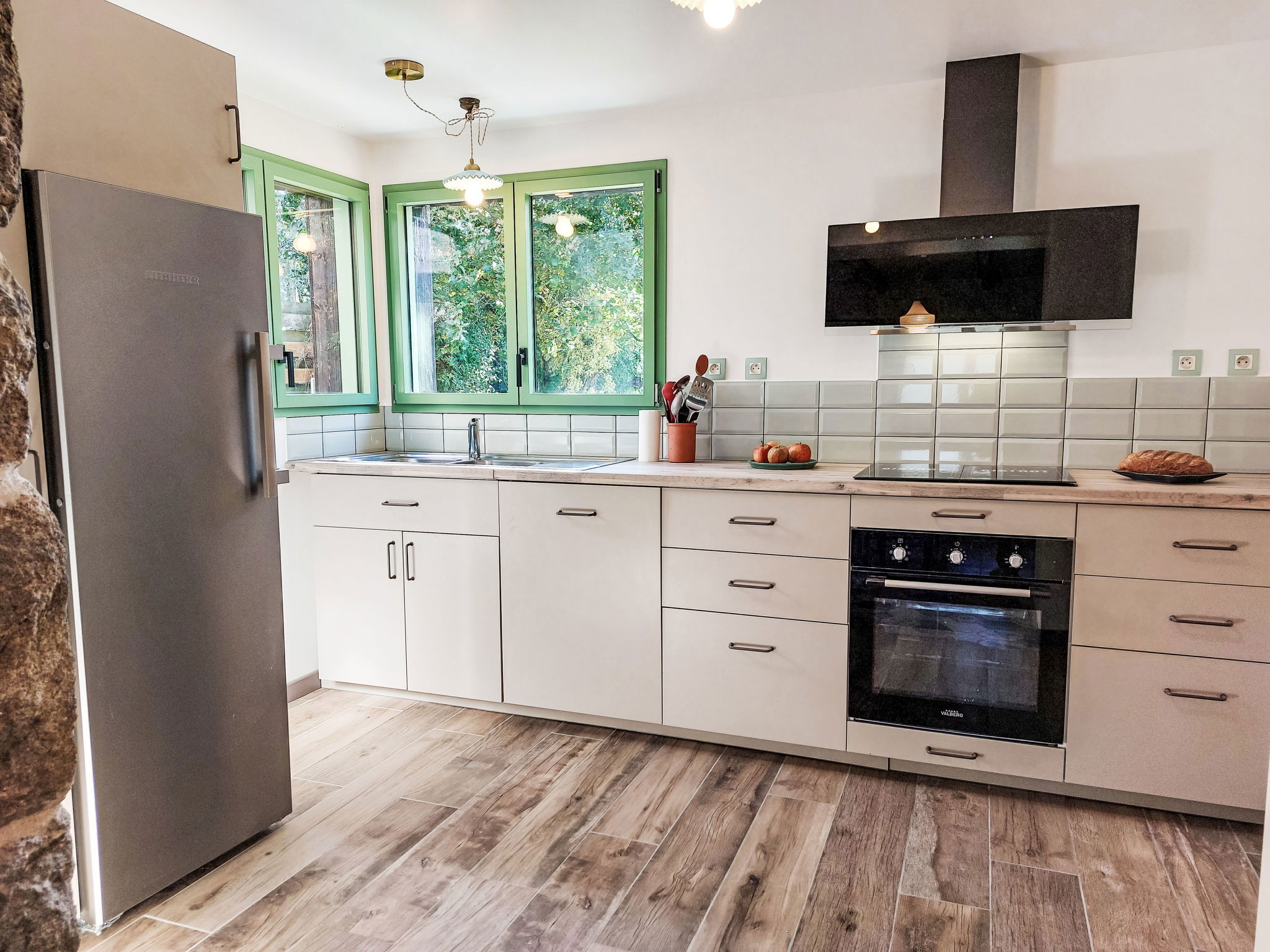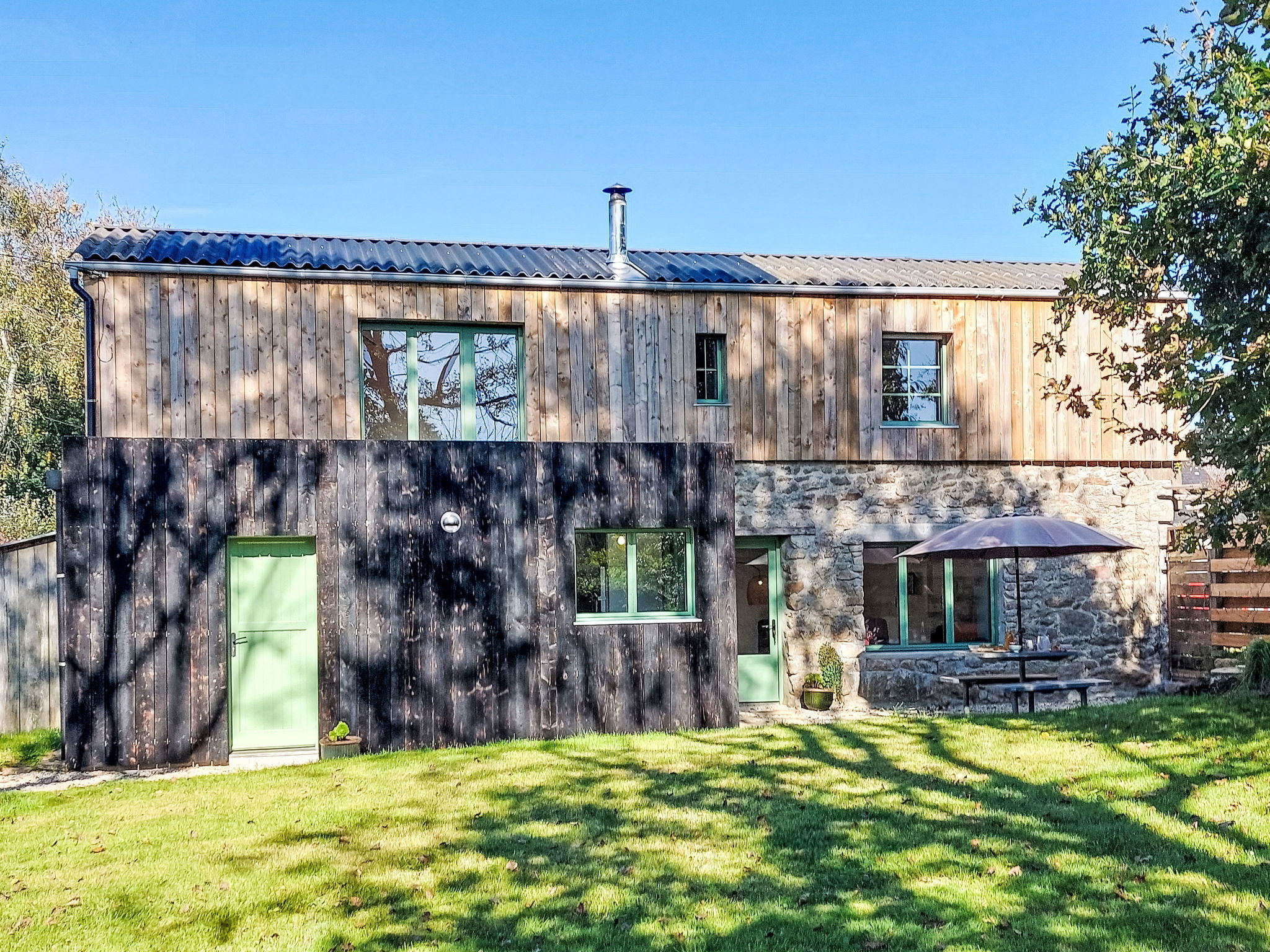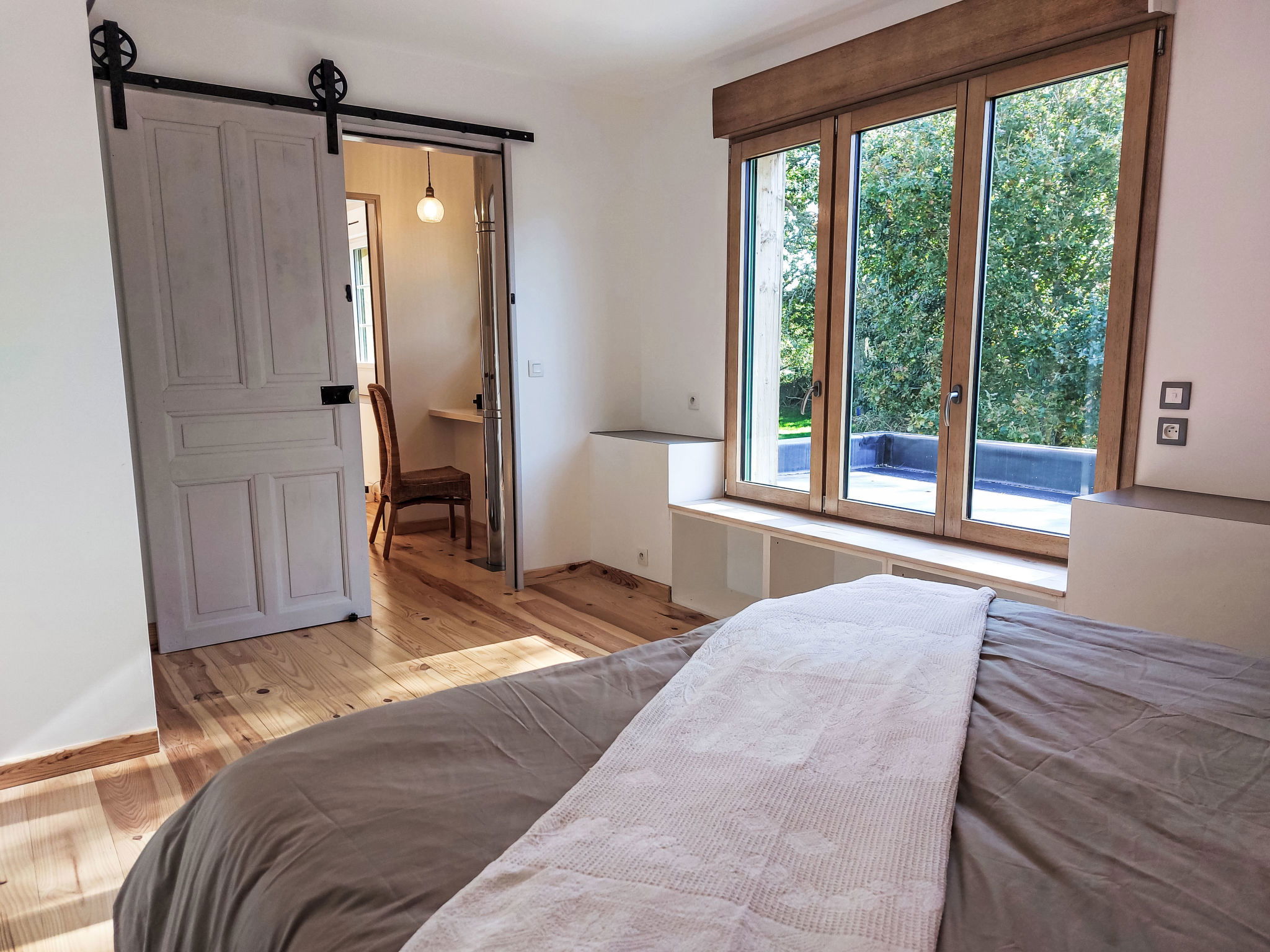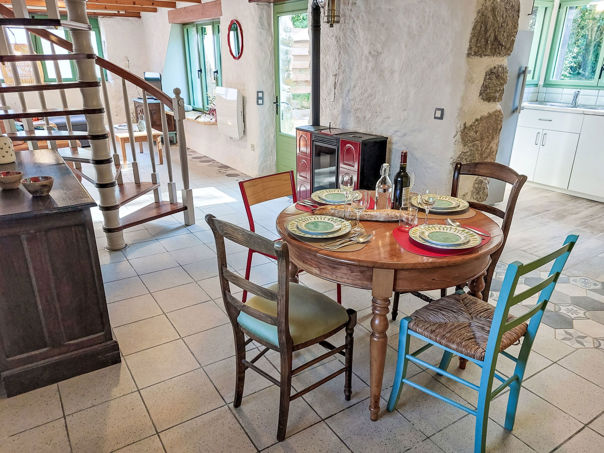 "La Longère", maison 4 pièces 70 m2 sur 2 niveaux. Clair, complètement rénovée en 2025, aménagement agréable et plaisant: séjour/salle à manger 30 m2, ouvert avec TV, écran plat et poêle à bois. Sortie sur le jardin, sur la terrasse. Cuisine ouverte (four, lave-vaisselle, 4 plaques à induction, grille-pain, bouilloire électrique, micro-ondes, congélateur, cafetière électrique). Sortie sur le jardin, sur la terrasse. Douche, WC séparé. À l'étage supérieur: 1 chambre 15 m2, mansardée avec 1 lit double (90 cm, longueur 190 cm). 1 chambre avec 2 lits (90 cm, longueur 190 cm). A disposition: lave-linge, lit bébé jusqu'à 2 ans, sèche-cheveux. Internet (Connexion WIFI, gratuit). Veuillez noter: maison non-fumeur. Maximum 1 animal/ chien de petite taille autorisé. Détecteur de fumée. Annonce d'un particulier (art 155, IV du CGI).