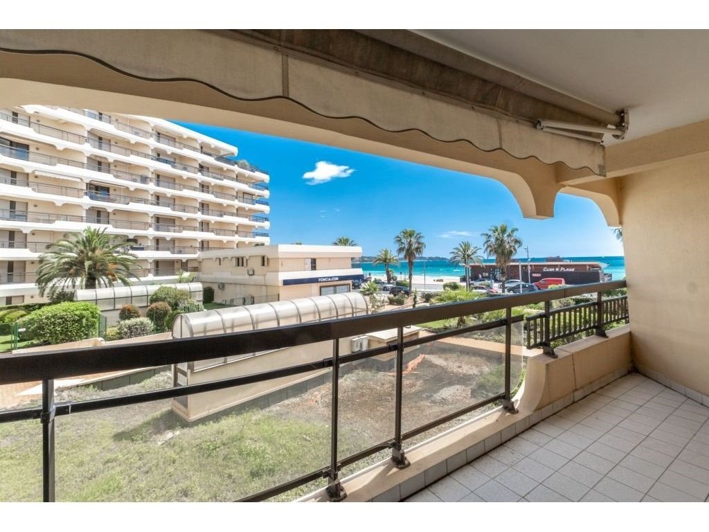Les avantages de cette location saisonnière: Vue mer, Séjour climatisé, Une terrasse avec store banne et salon de jardin, à 200 m de Port Fréjus.