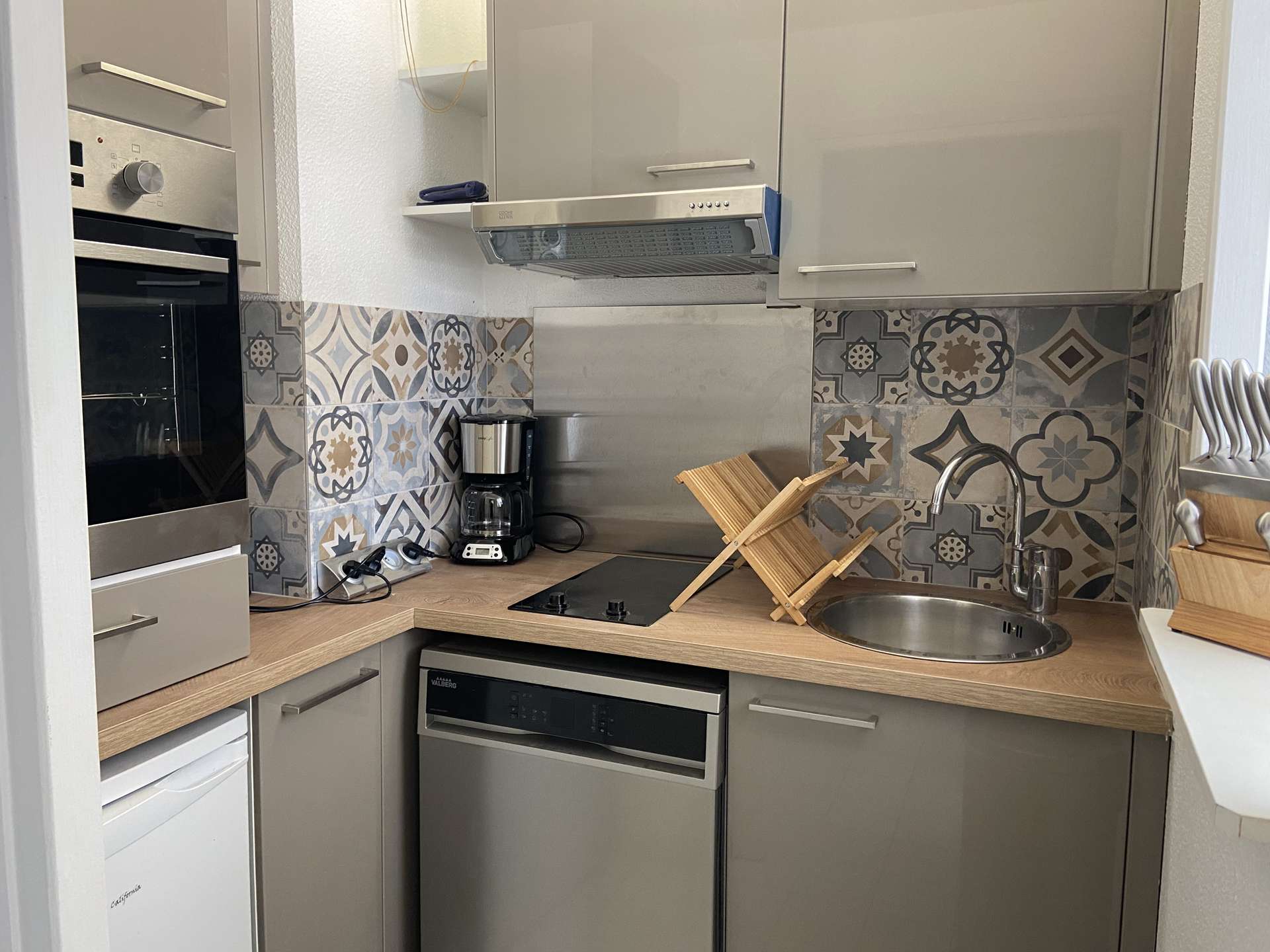 Il comprend une entrée, un séjour avec un canapé convertible deux personnes, un coin cuisine aménagé et équipé, une chambre avec un lit deux personnes, une salle de bains et un WC indépendant.