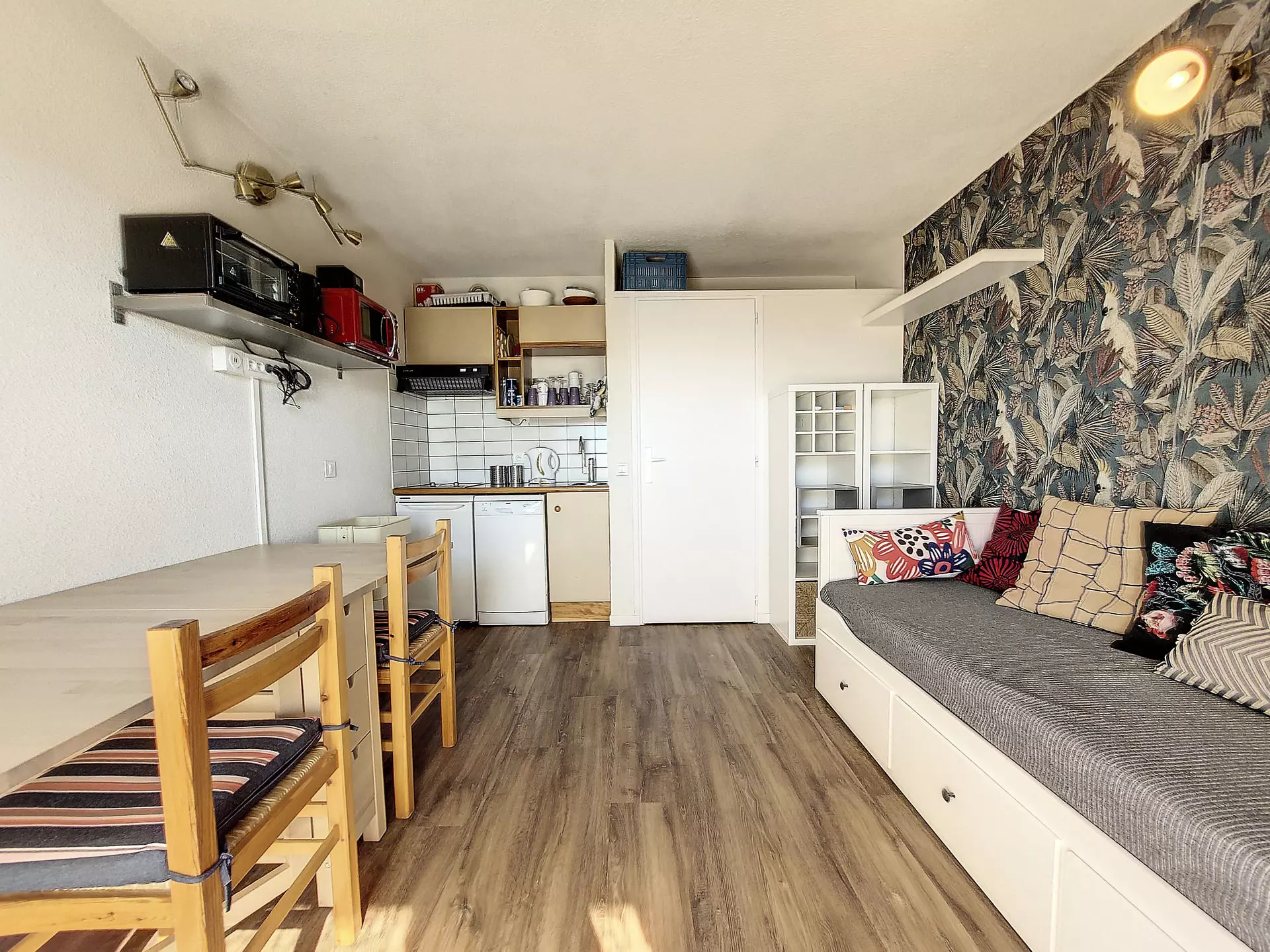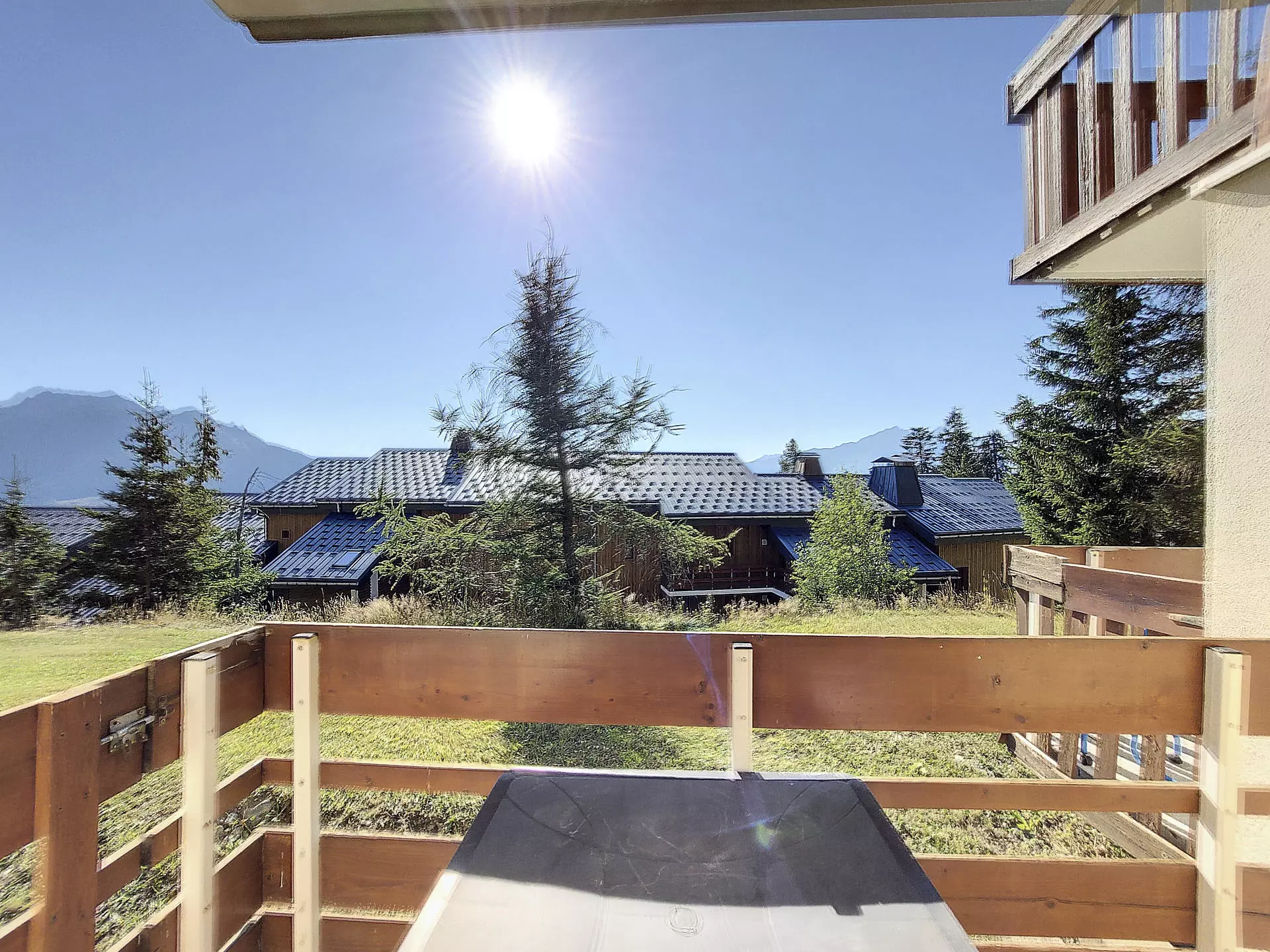Studio de 22m² pour 4 personnes. Il est situé au rez-de-chaussé de la résidence et possède un balcon exposé sud avec vue sur la vallée.