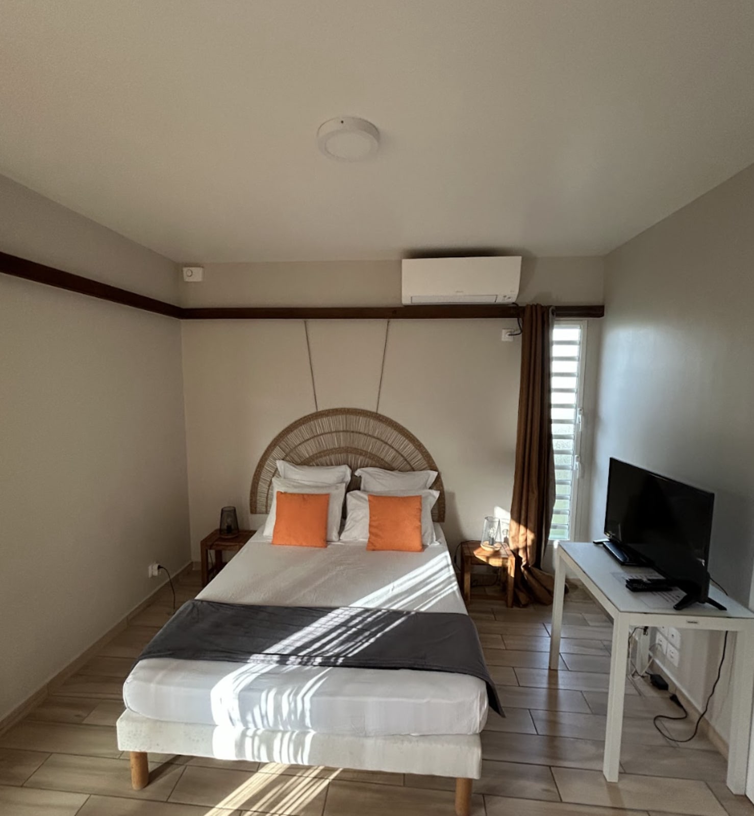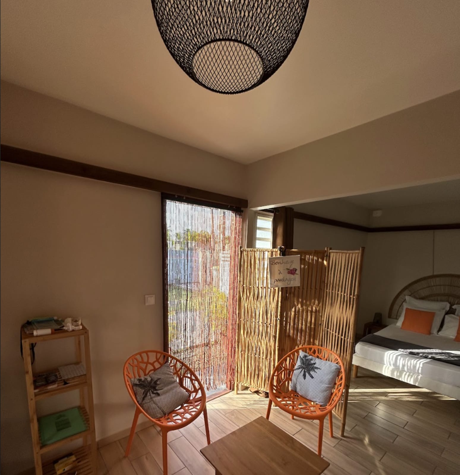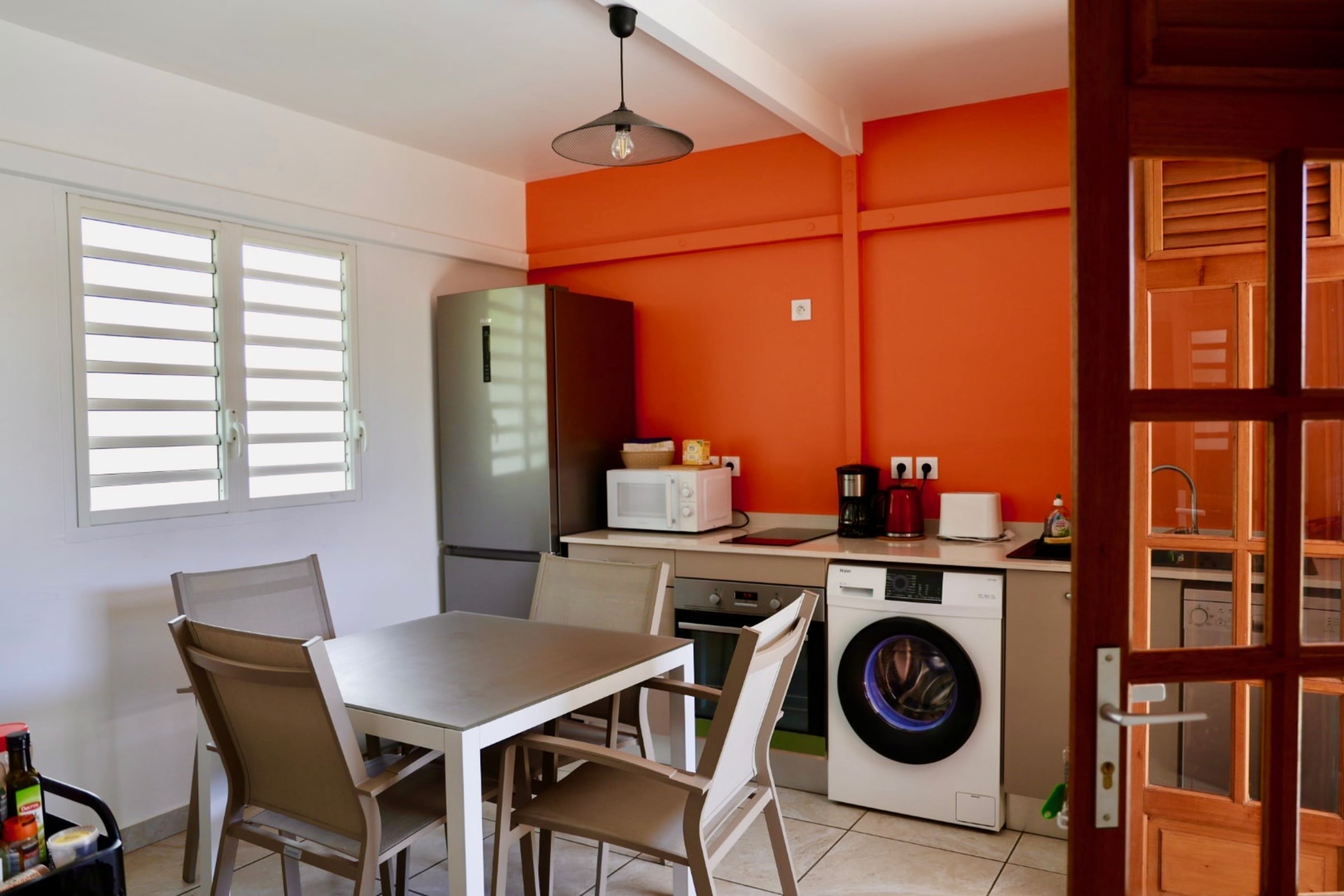 La cuisine entièrement équipée, avec four, micro-ondes, réfrigérateur, lave-vaisselle et ustensiles, vous permettra de préparer facilement vos repas, que ce soit pour un dîner romantique ou un petit-déjeuner sur la terrasse. Le salon convivial s’ouvre sur un agréable espace extérieur, parfait pour profiter de la douceur du climat antillais. Vous aurez également accès à une belle piscine collective, nichée au cœur d’un jardin verdoyant, idéale pour des moments de détente après la plage. Un barbecue au charbon est à votre disposition pour prolonger vos soirées sous les étoiles.