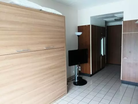 Entrée avec cuisinette (carrelage) : 2 plaques de cuisson, 1 réfrigérateur"freezer", 1 four, 1 micro ondes, 1 bouilloire, 1 grilles pain, 1 cafetière électrique, vaisselle et batterie de cuisine (sur demande)