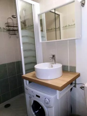 Salle d'eau ( carrelage ) : douche cabine, 1 vasque, 1 lave linge, WC.