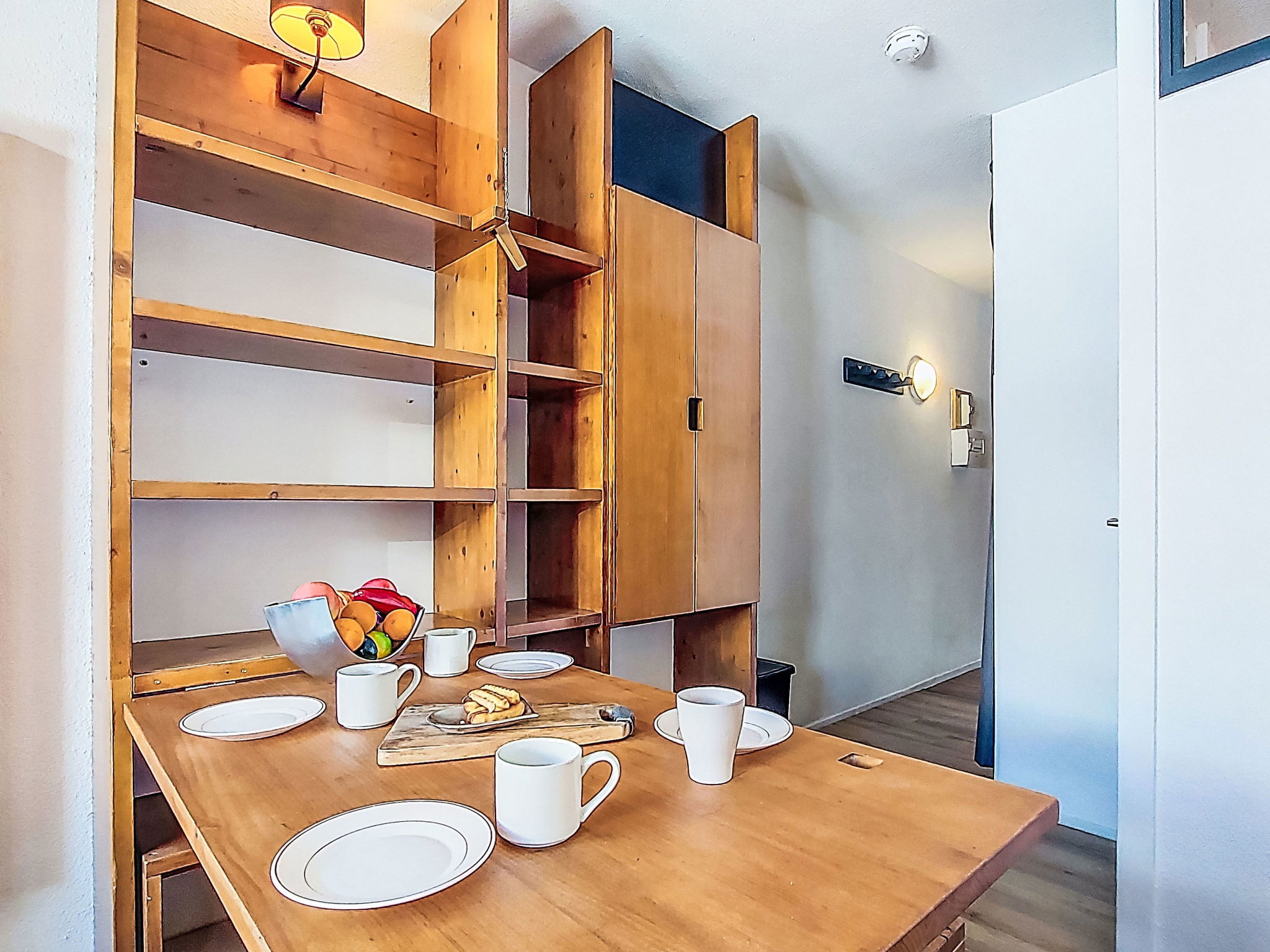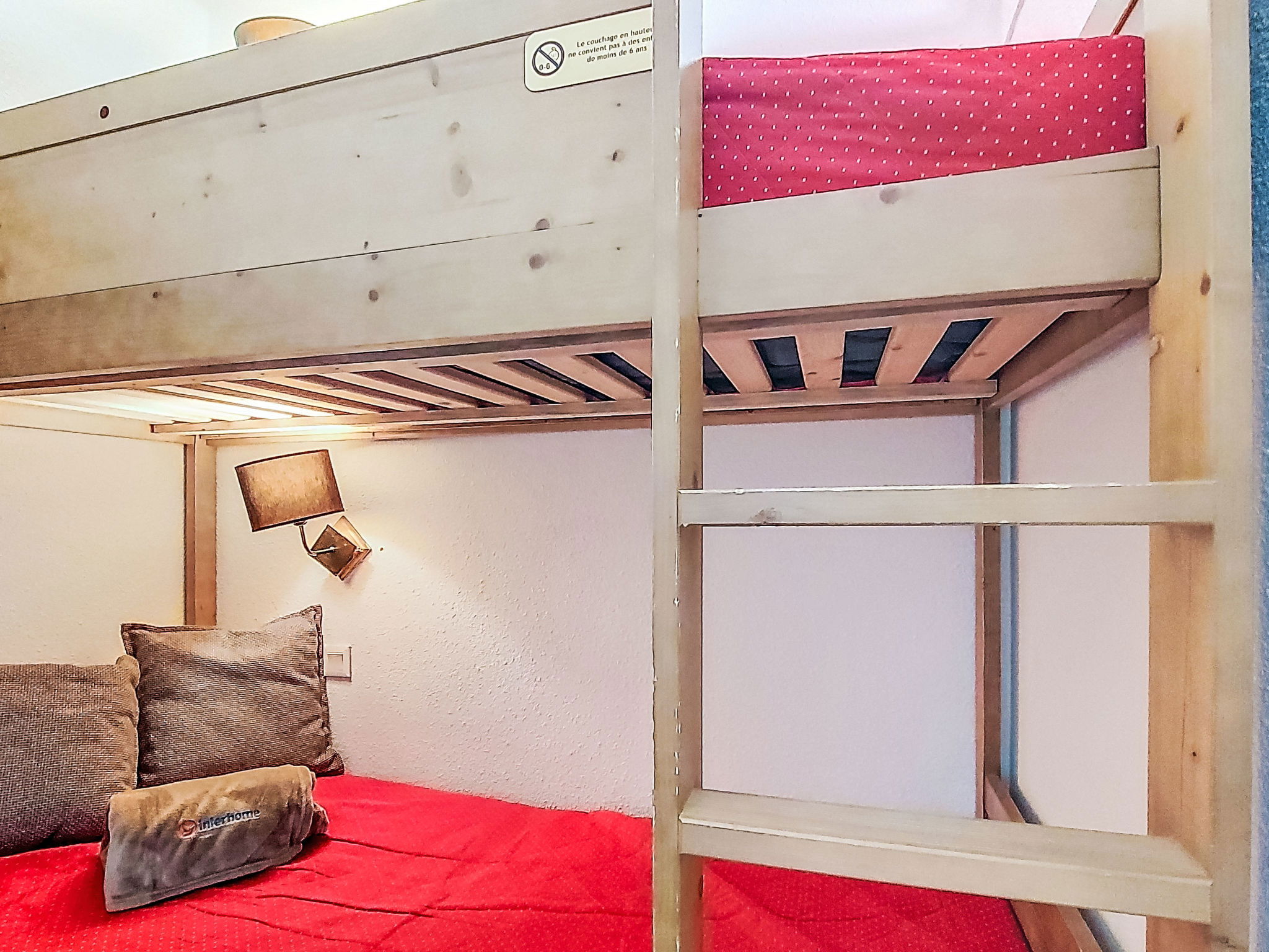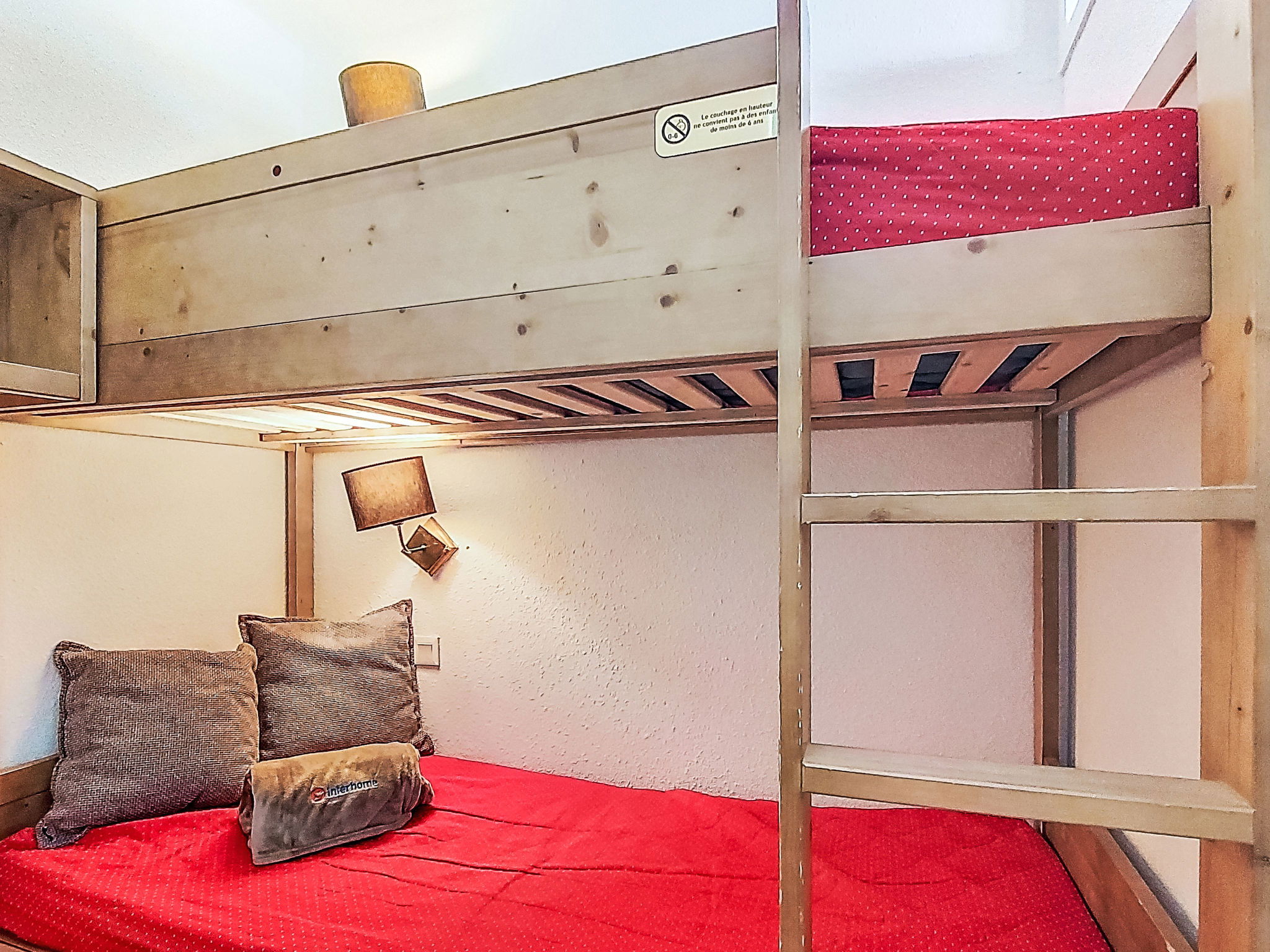 Studio 21 m2 au 6ème étage, situation nord. Partiellement rénové en 2025: séjour/salle à manger avec 1 lit gigogne (2 pers. 2 x 80 cm, longueur 190 cm), table pour les repas, TV, écran plat et chauffage électrique. Sortie sur le balcon, orientée nord. Cabine avec 1 x 2 lits superposés (80 cm, longueur 190 cm). Entrée avec coin-cuisine. Coin cuisine (2 plaques de cuisson, lave-vaisselle, grille-pain, bouilloire électrique, cafetière électrique). Salle de bains, WC séparé. Sol en parquet. Petit balcon 3 m2. Vue sur les montagnes, la vallée, les pistes de ski et la localité. A disposition: Internet (Connexion WIFI, en sus). Veuillez noter: logement non-fumeur. Détecteur de fumée. Annonce d'un particulier (art 155, IV du CGI).