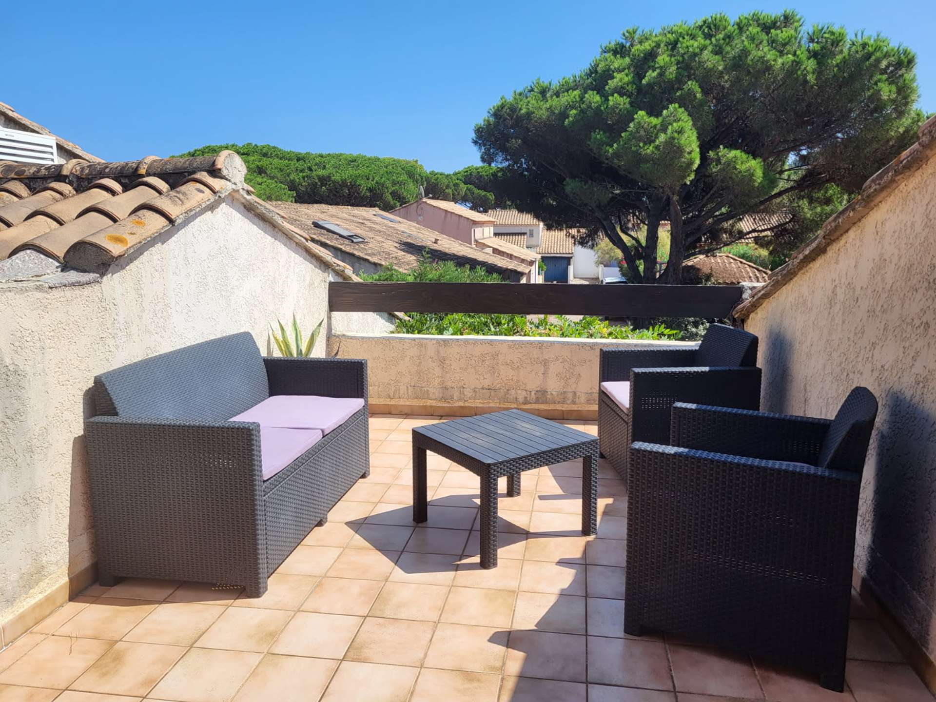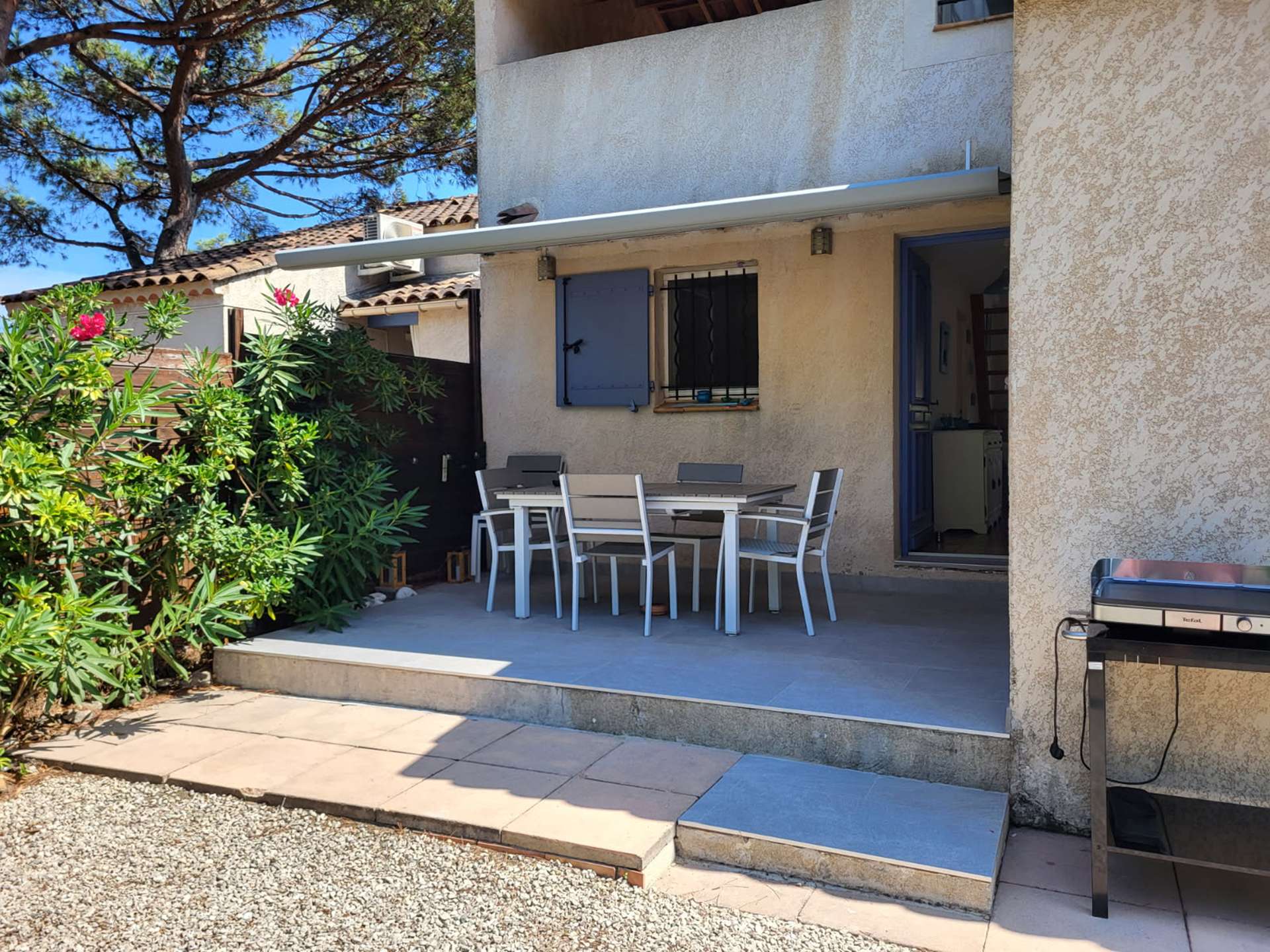 Villa jumelée, au charme méditerranéen avec beaucoup de caractère et d'authenticité. Nichée dans un écrin de verdure. Cette location de vacances se situe dans une petite résidence au calme, à quelques centaines de mètres de la plage de la Nartelle.
