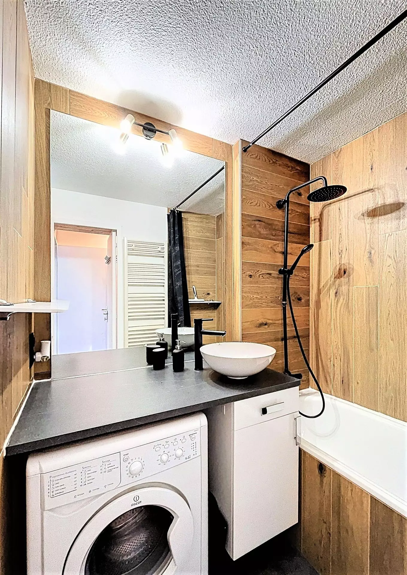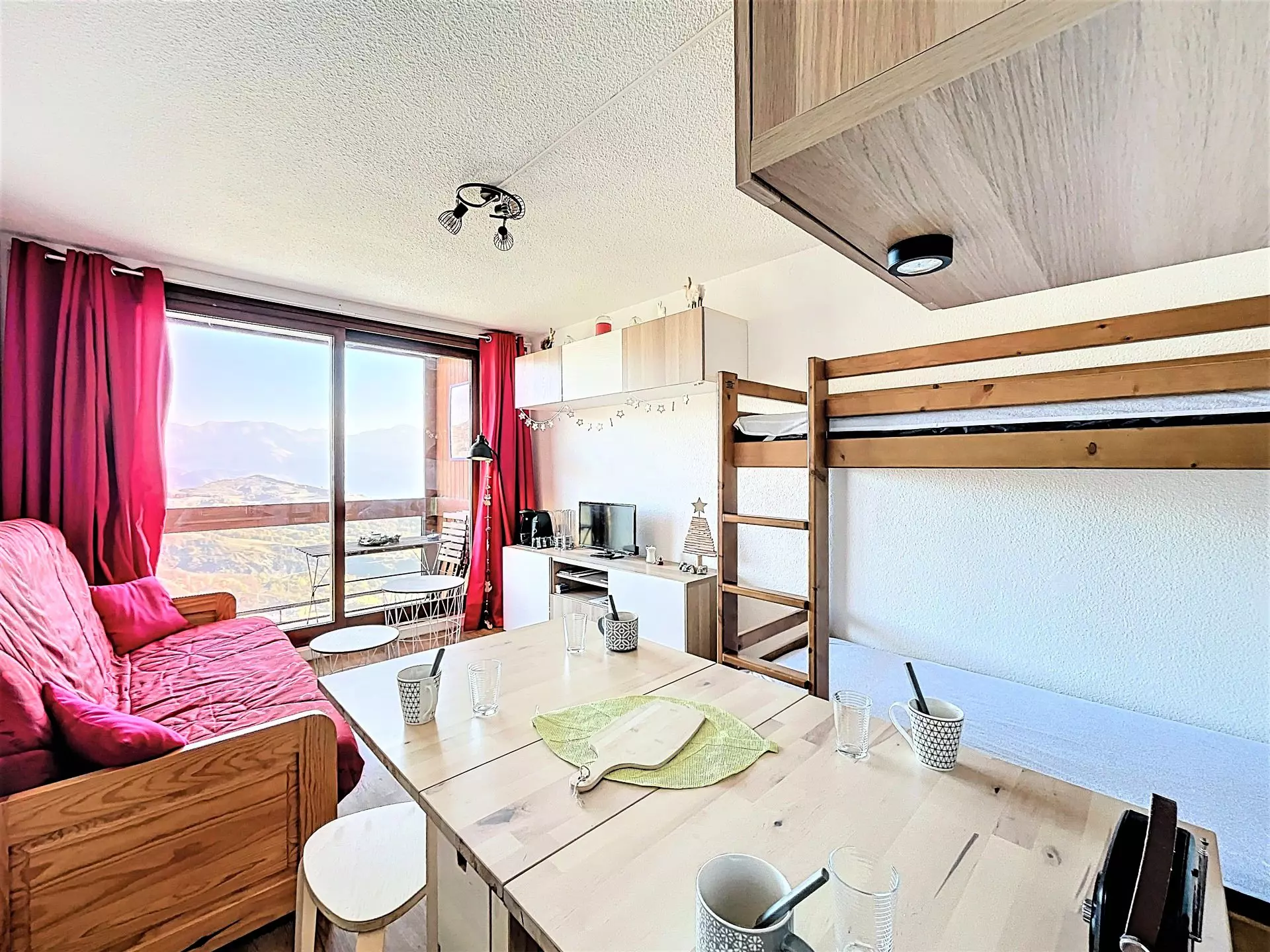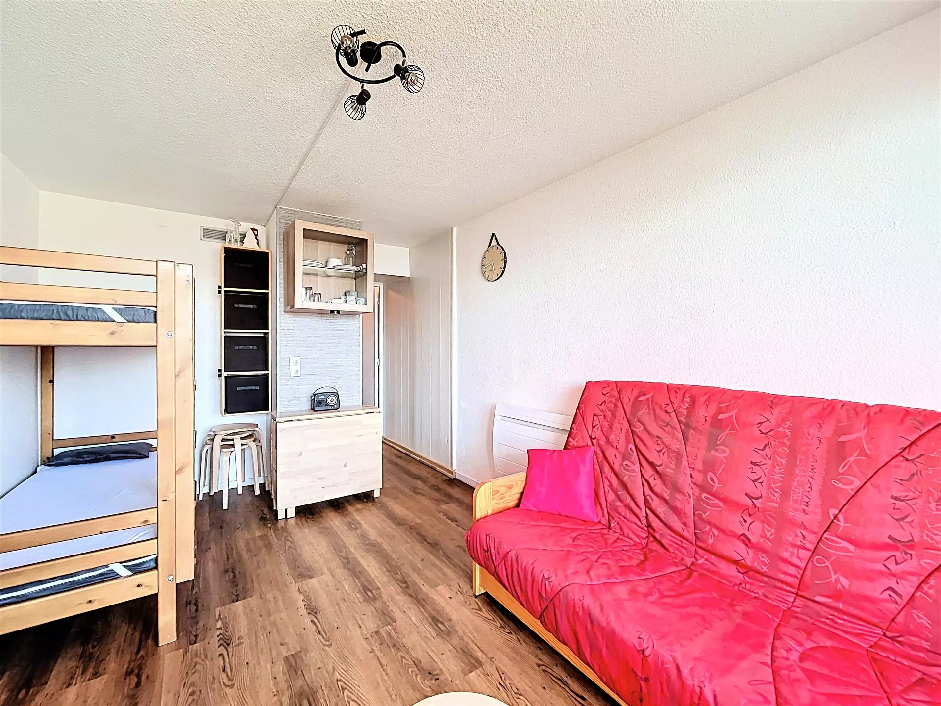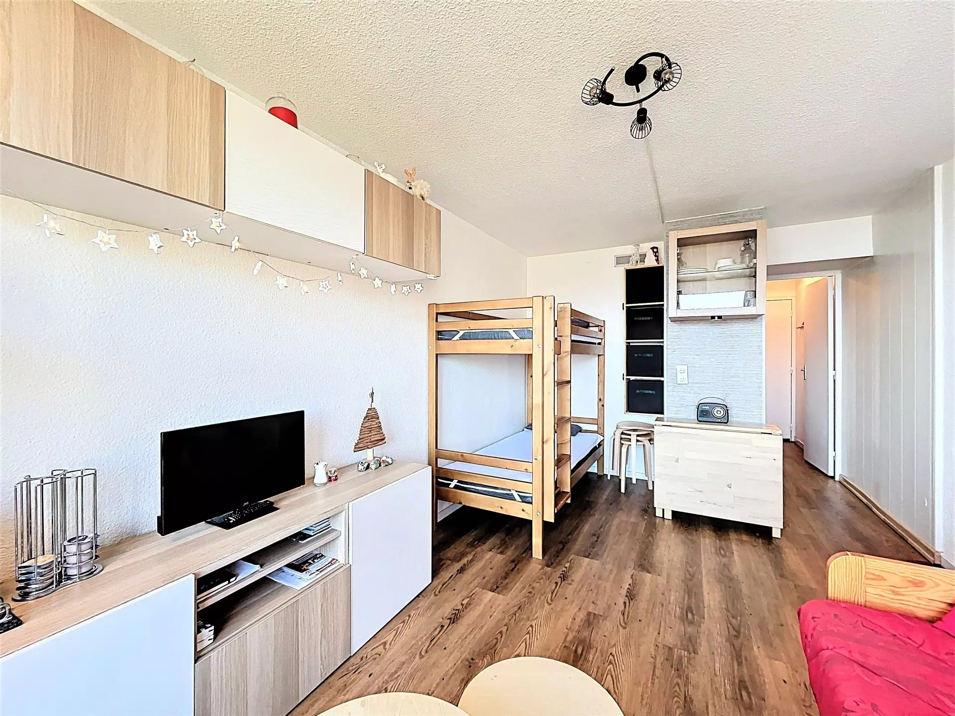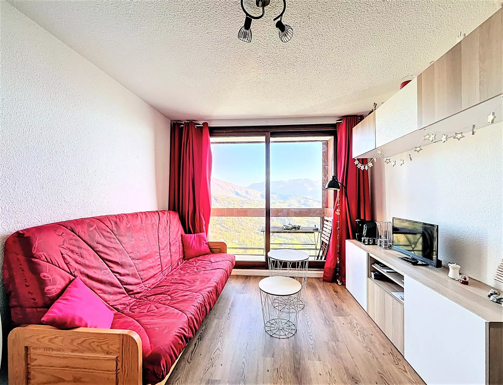Beau studio de 22m², entièrement rénové, pour 4 personnes, Situé Résidence Soyouz, au 18ème étage, Balcon orienté nord, Vue montagne