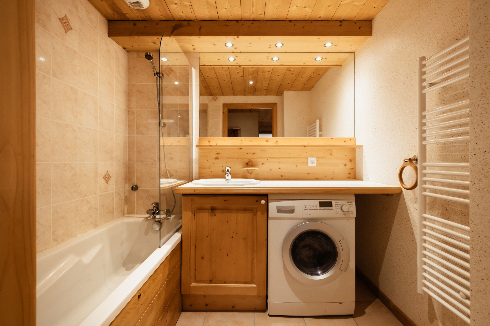 - SALLE DE BAINS (3.78 m²) : lavabo, baignoire, radiateur SECHE-SERVIETTES, LAVE-LINGE SECHANT