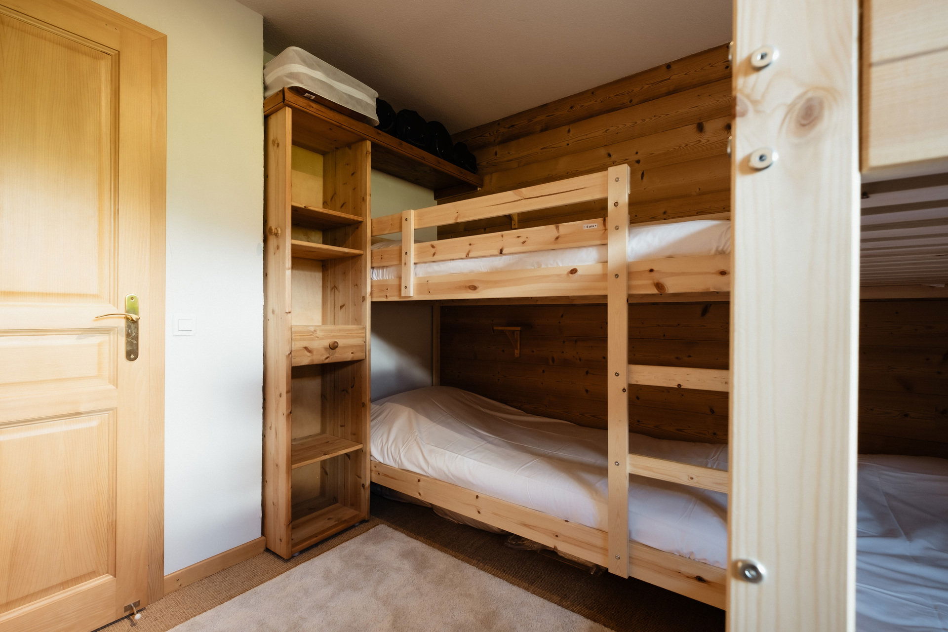 - CHAMBRE (8.31 m²) : 2 x 2 LITS SUPERPOSES (90) -> lit supérieur interdit -6 ans, fenêtre fixe est, vue espaces verts / montagne