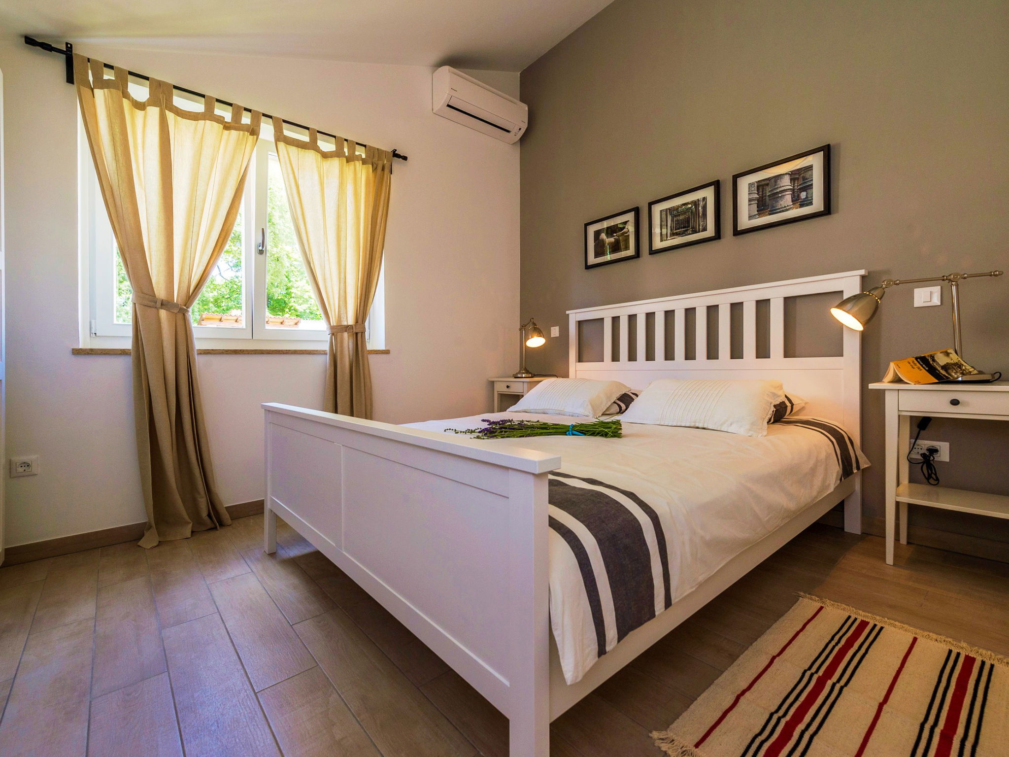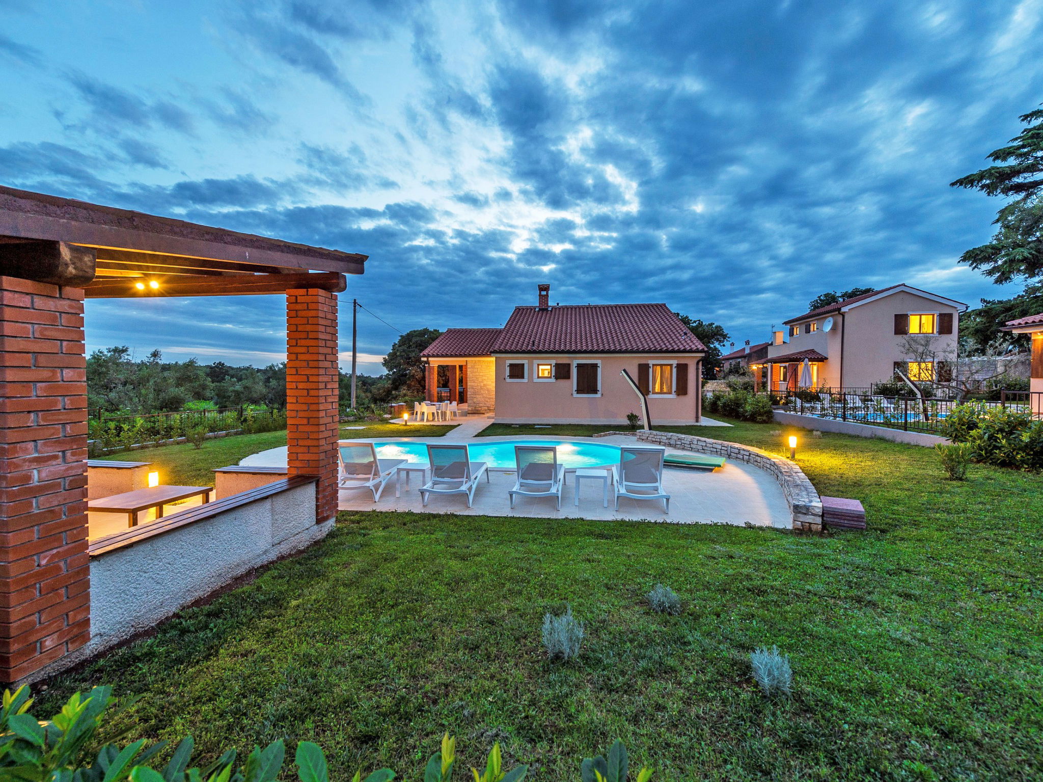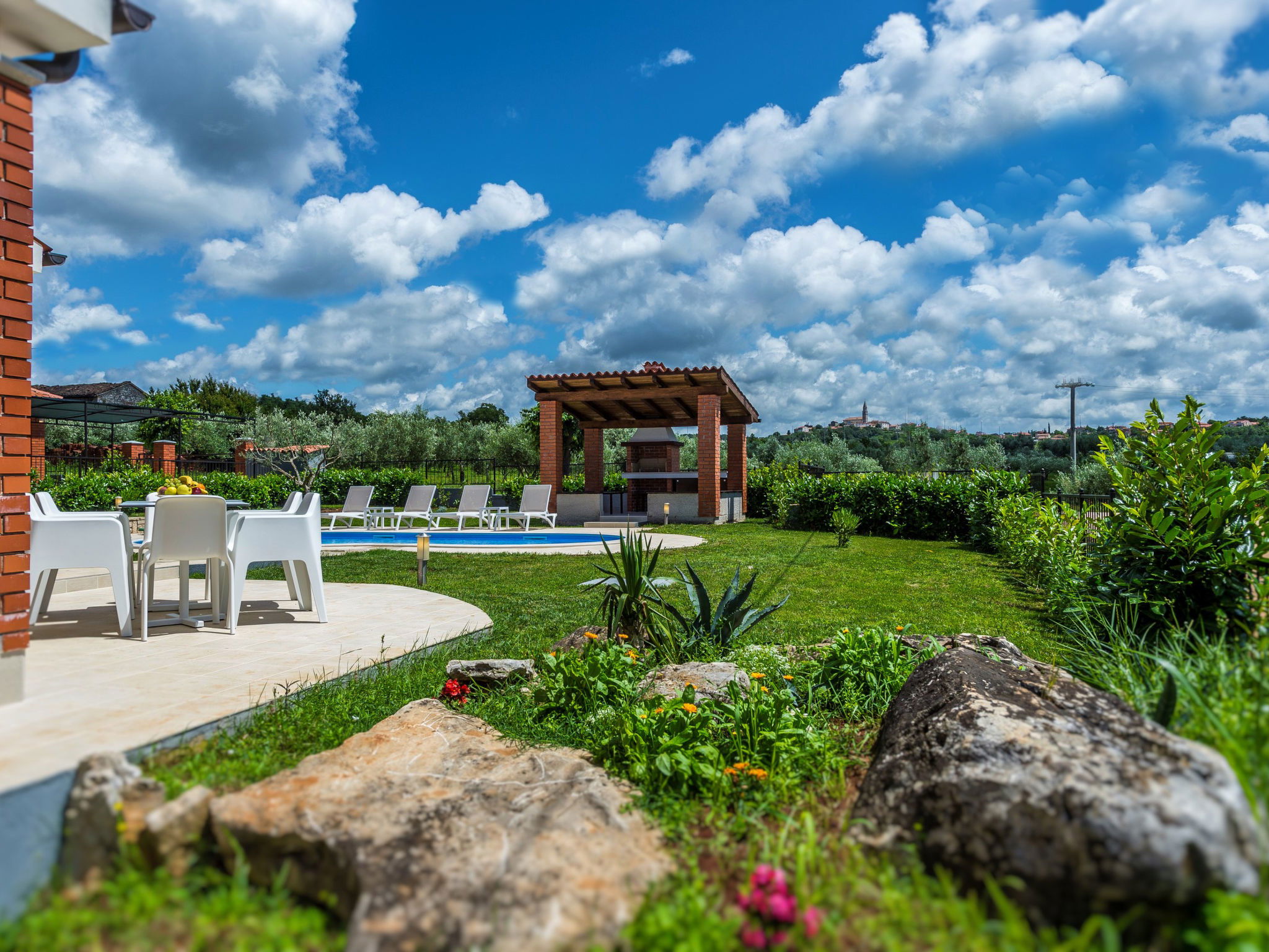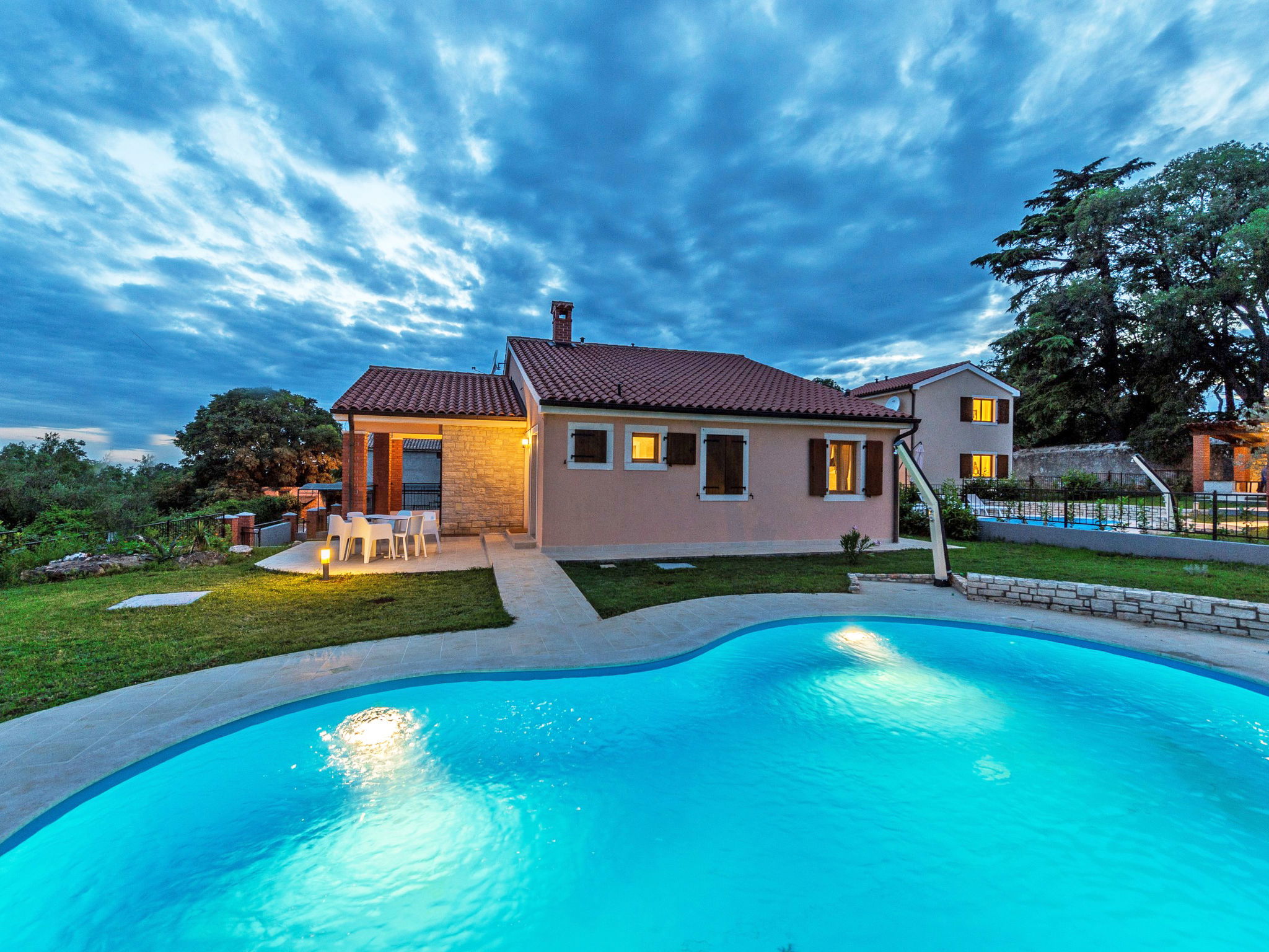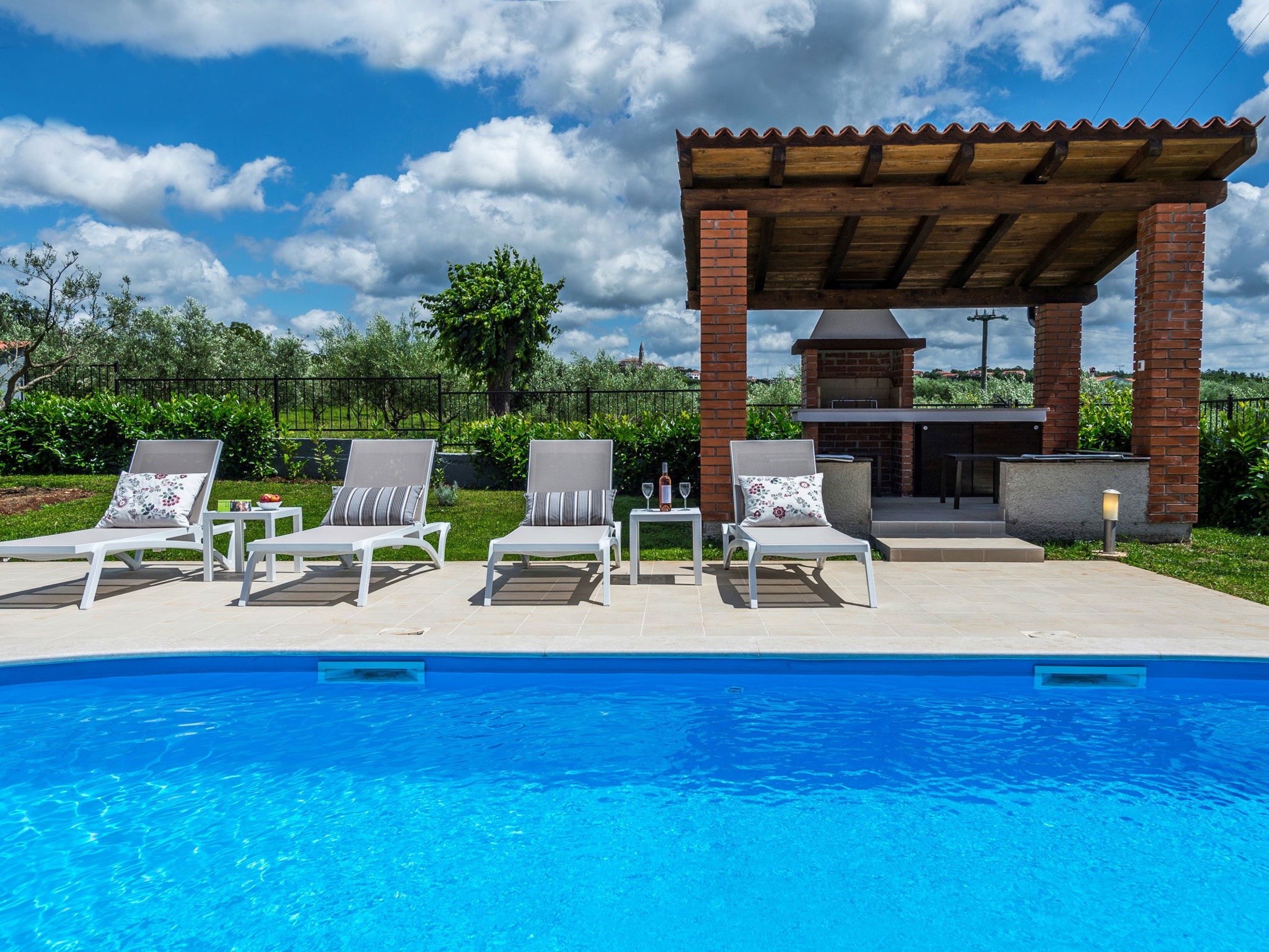 Višnjan à 10 km de Poreč: Maison individuelle "Dalia". Dans le hameau de Kolumbera, à 1 km du centre de Višnjan, situation ensoleillée, à 8 km de la mer. A usage privé: terrain 800 m2 (clôturé), jardin avec pelouse, piscine (28 m2, profondeur 140 cm, disponibilité saisonnière: 20.Avr. - 28.Sep.). Piscine de forme irrégulière. Douche extérieure, terrasse (15 m2), meubles de jardin, barbecue. Infrastructures de la Maison: accès internet, lave-linge. Place de parking près de la maison sur le terrain. Magasins 1 km, restaurant 500 m, plage de graviers 8 km, plage de rochers 8 km. Tennis 13 km, centre équestre 10 km, chemins de randonnées pédestres depuis la maison 100 m, piste cyclable 150 m.