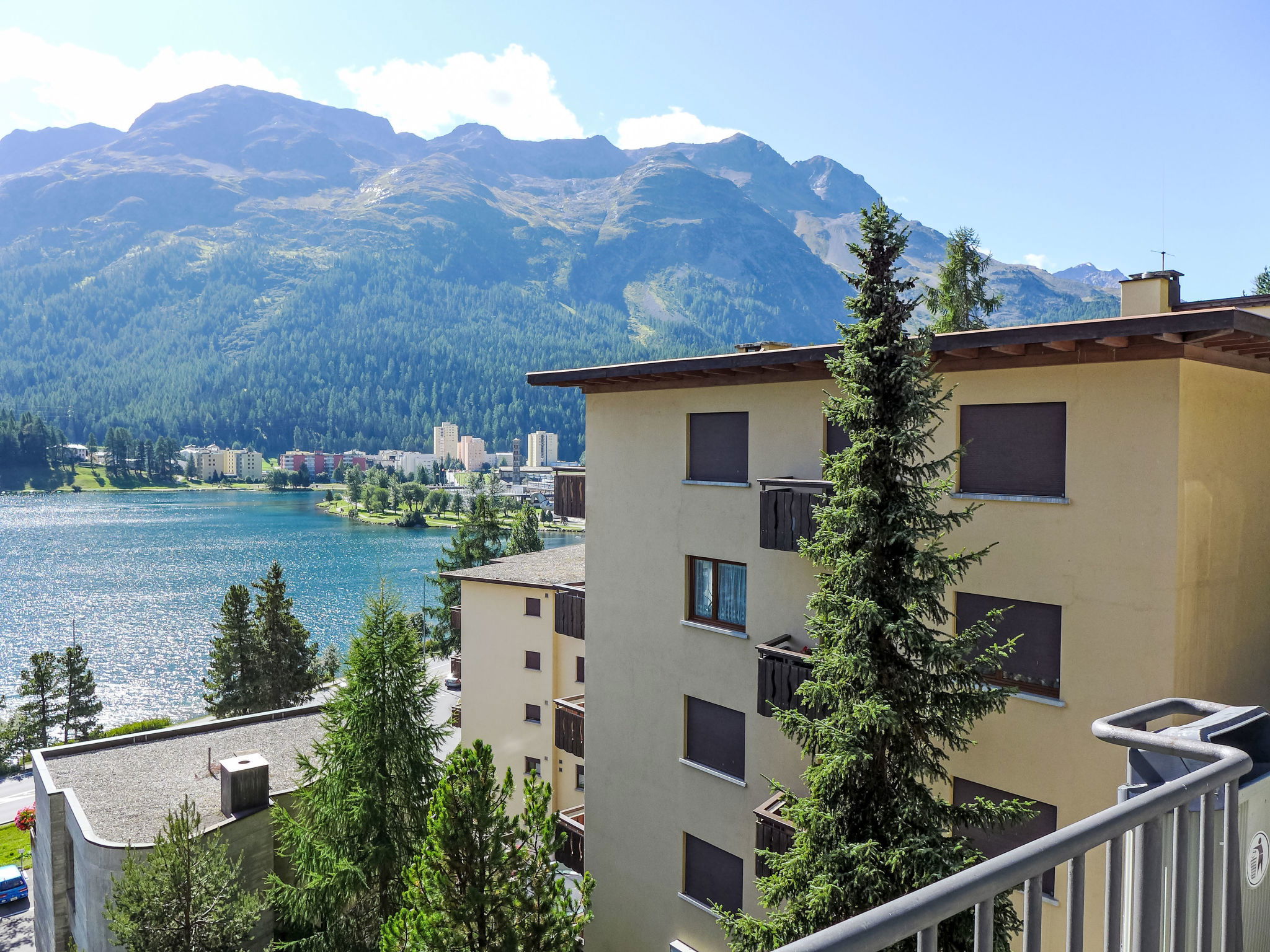 St. Moritz-Bad: Immeuble simple "Chesa Sonnalpine B", de 8 étages, année de construction 1968. Dans la localité, à 800 m du centre de St.Moritz-Bad, à 600 m du centre de St.Moritz-Dorf, situation centrale, animée, ensoleillée, à 50 m du lac, à 1 km du domaine skiable. Infrastructures de la Maison: ascenseur, chauffage central. Parking public couvert à 600 m, parking public 50 m. Magasins 260 m, supermarché, restaurant 200 m, boulangerie 500 m, café 700 m, location de bicyclettes 800 m, arrêt de bus "St. Moritz Bad, Via Aruons" 180 m, gare ferroviaire 1.5 km, piscine couverte 1 km, centre thermal "Heilbadzentrum St. Moritz" 1.2 km, lac St. Moritzer See 50 m. Terrain de golf (18 trous) 7.7 km, tennis 1.5 km, tennis couvert 1.5 km, golf miniature 1 km, centre équestre 2.8 km, chemins de randonnées pédestres depuis la maison 100 m, piste cyclable 1 km, téléphérique 1.4 km, téléski 1 km, pistes de ski 1.4 km, location de ski 1 km. Arrêt du ski-bus 180 m, école de ski 1 km, école de ski d'enfants 1 km, piste de luge 5.7 km, ski de fond 1 km, patinoire 500 m, jeux pour enfants 1.3 km. Attractions à proximité: Segantini Museum 1.2 km, Engadiner Museum 120 m, Mili Weber-Haus 2 km, Olympia Bob Run mit Museum 1.7 km, Nietzsche Museum in Sils-Maria 10 km. Les domaines skiables de renommée sont facilement accessibles: Corviglia Piz Nair 1 km, Corvatsch - Furtschellas 7 km, Diavolezza - Lagalb 19 km. Les lacs connus sont facilement accessibles: St. Moritzer See 50 m, Silvaplaner See 5.7 km, Silser See 10 km. Région de randonnées: Stazerwald & Stazersee, Corviglia Piz Nair, Muottas Muragl. Veuillez noter: Déchargement et chargement des bagages à la location de vacances. La remise des clés a lieu à l’agence de St. Moritz Bad. D’autres appartements sont également proposés à la location dans cette maison de vacances.