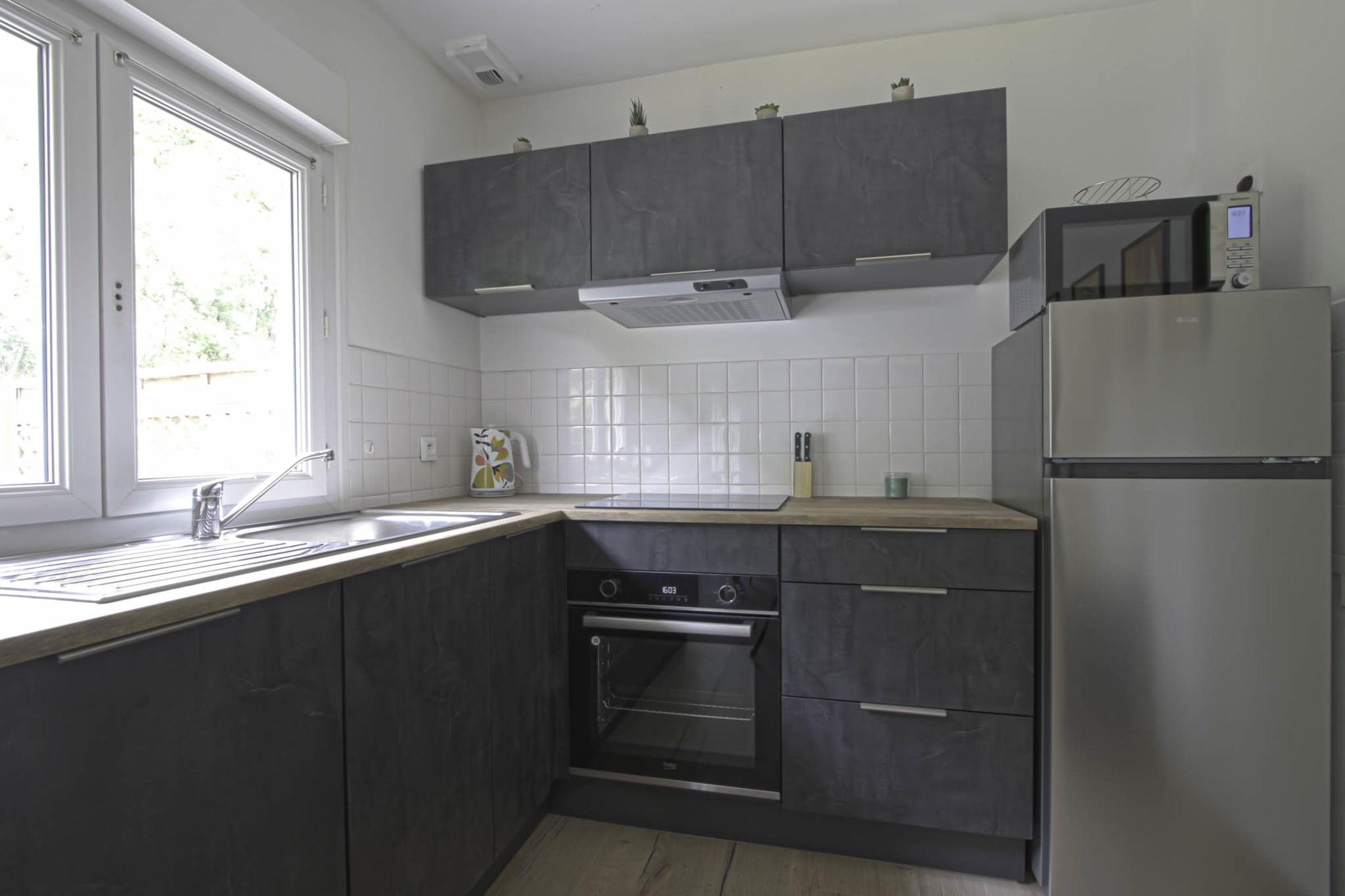 La maison dispose de 2 chambre pour 4 personne, d'une belle pièce de vie ouverte sur une cuisine équipée, d'une salle de douche et d'un WC.