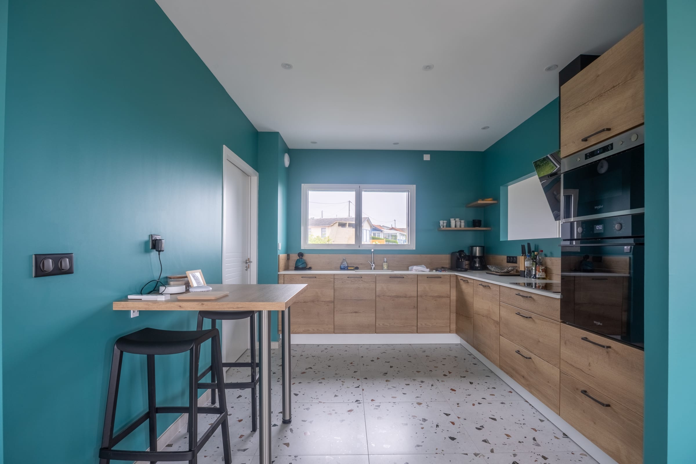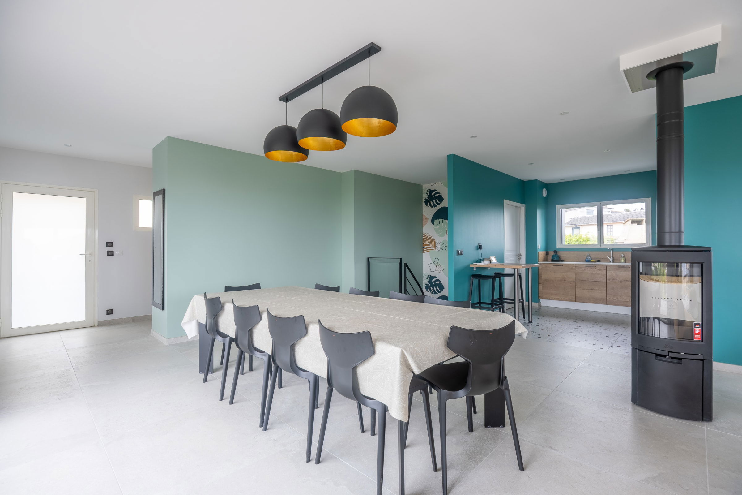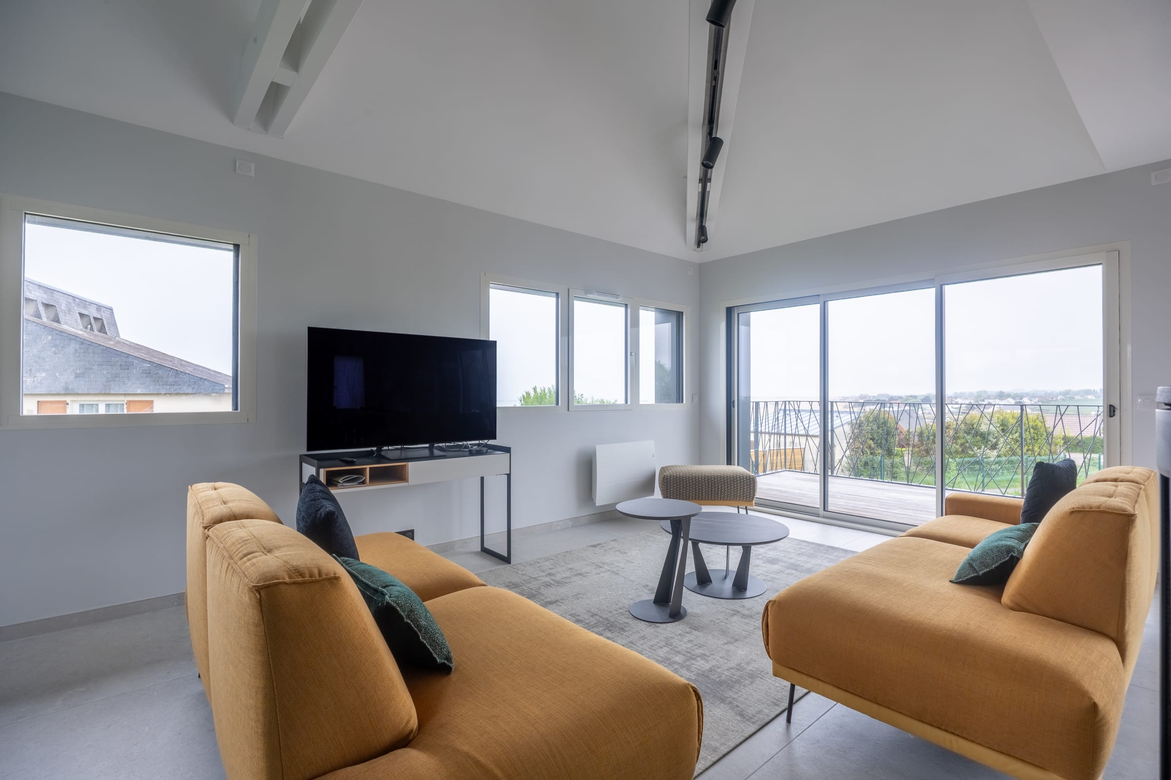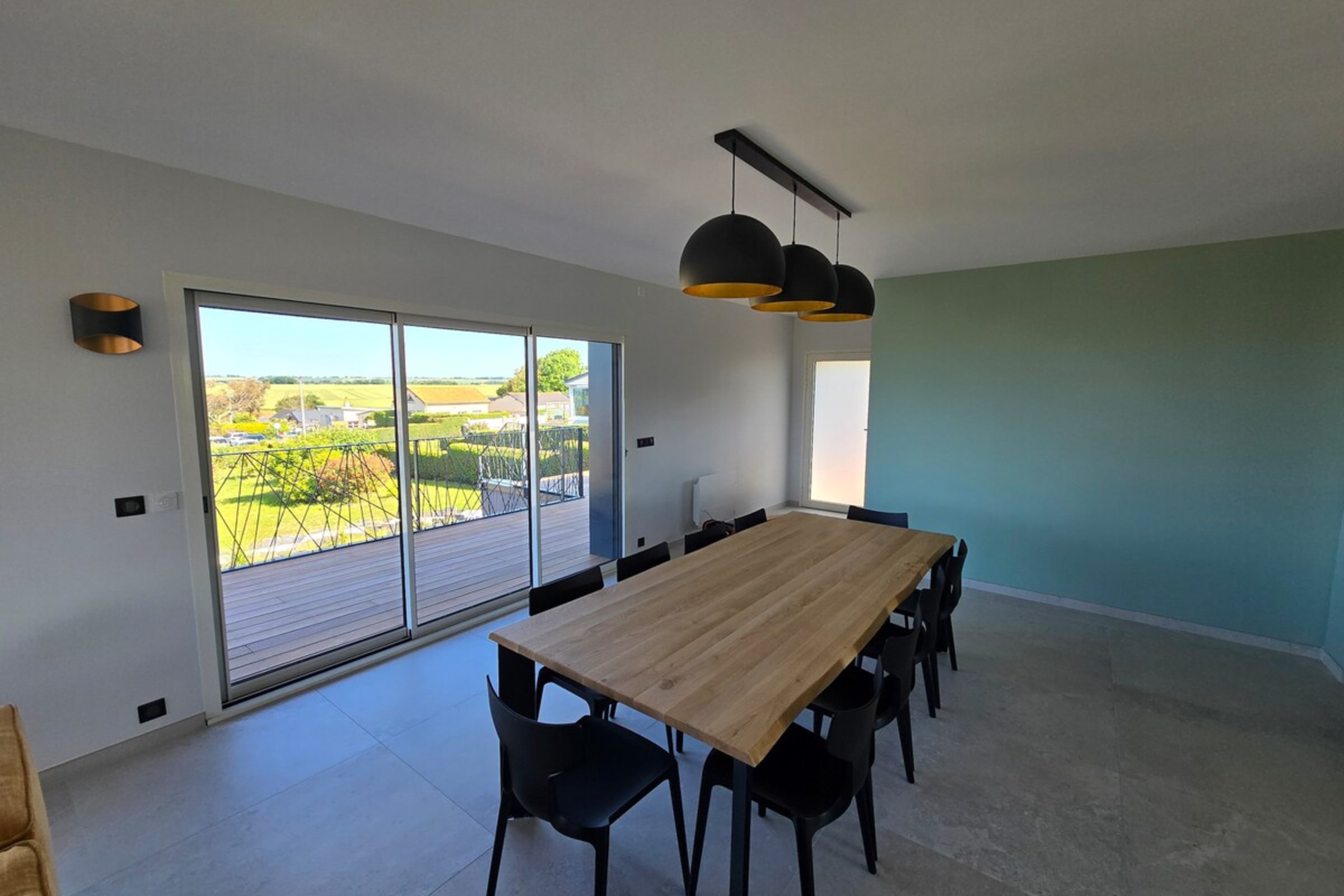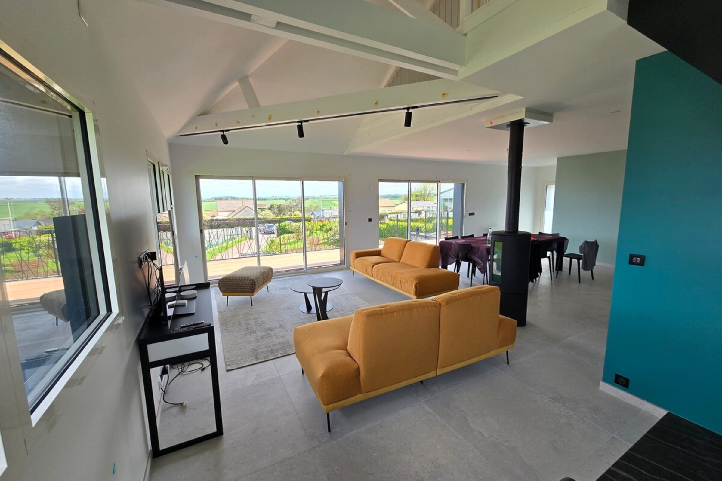 Le RDC est dédié aux espaces de vies avec une cuisine tout équipée ouverte sur la salle à manger et le salon pour plus de convivialité et pour profiter de la vue sur mer.