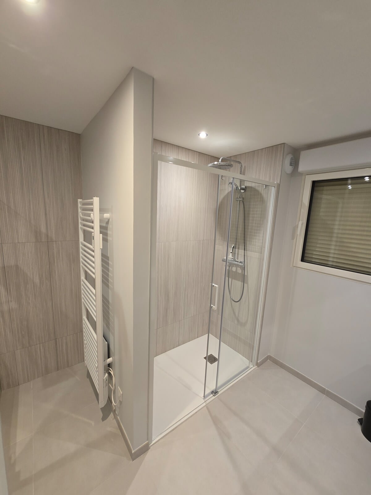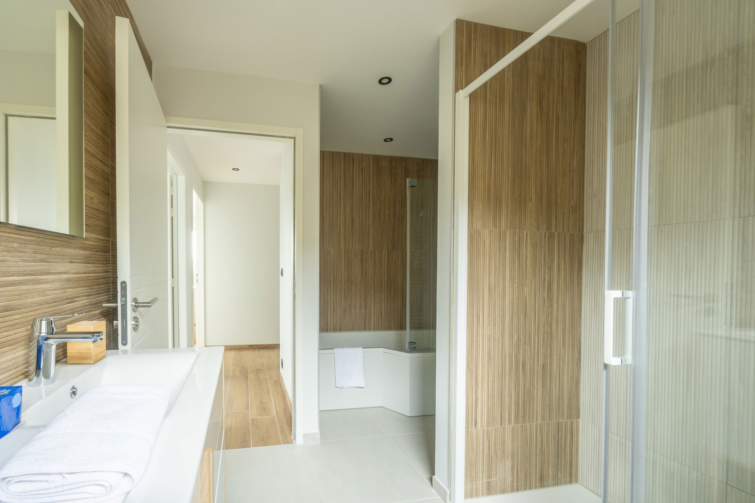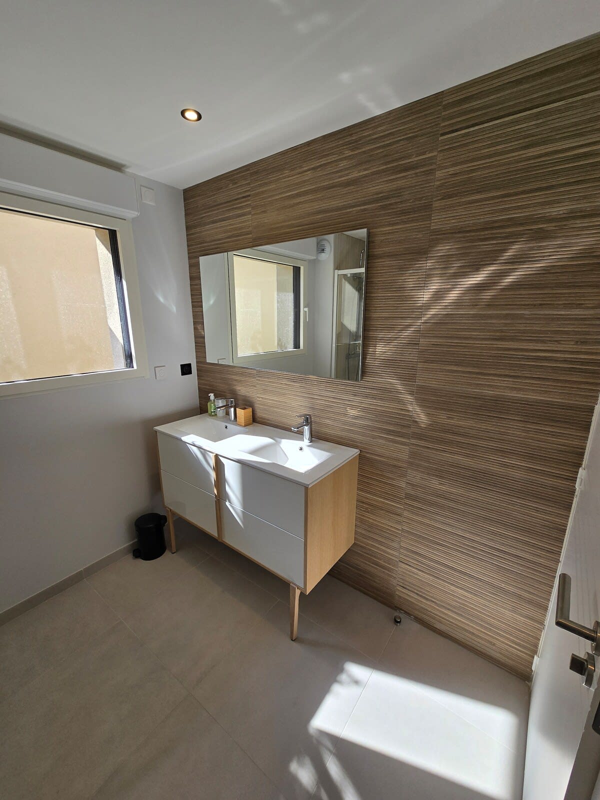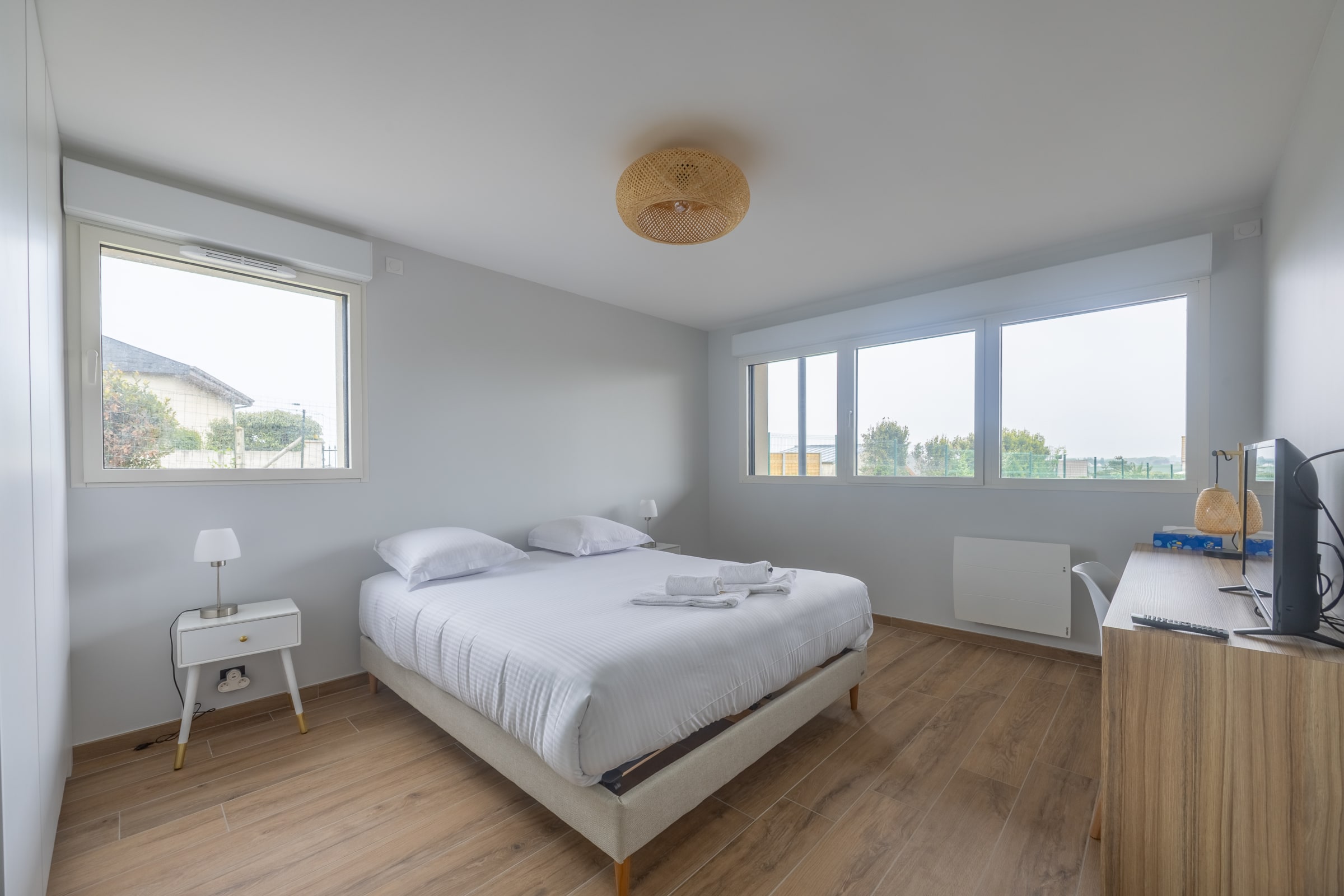Vous trouverez au RDJ, 4 chambres, 2 salles de bains (2 douches et 1 baignoire), 1 buanderie (équipée de lave-linge et sèche-linge) et 1 WC indépendant.