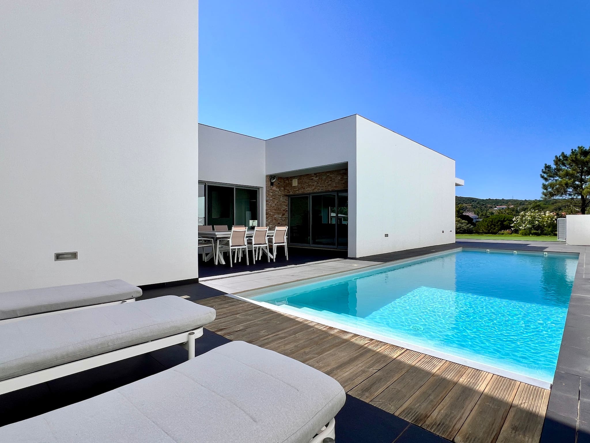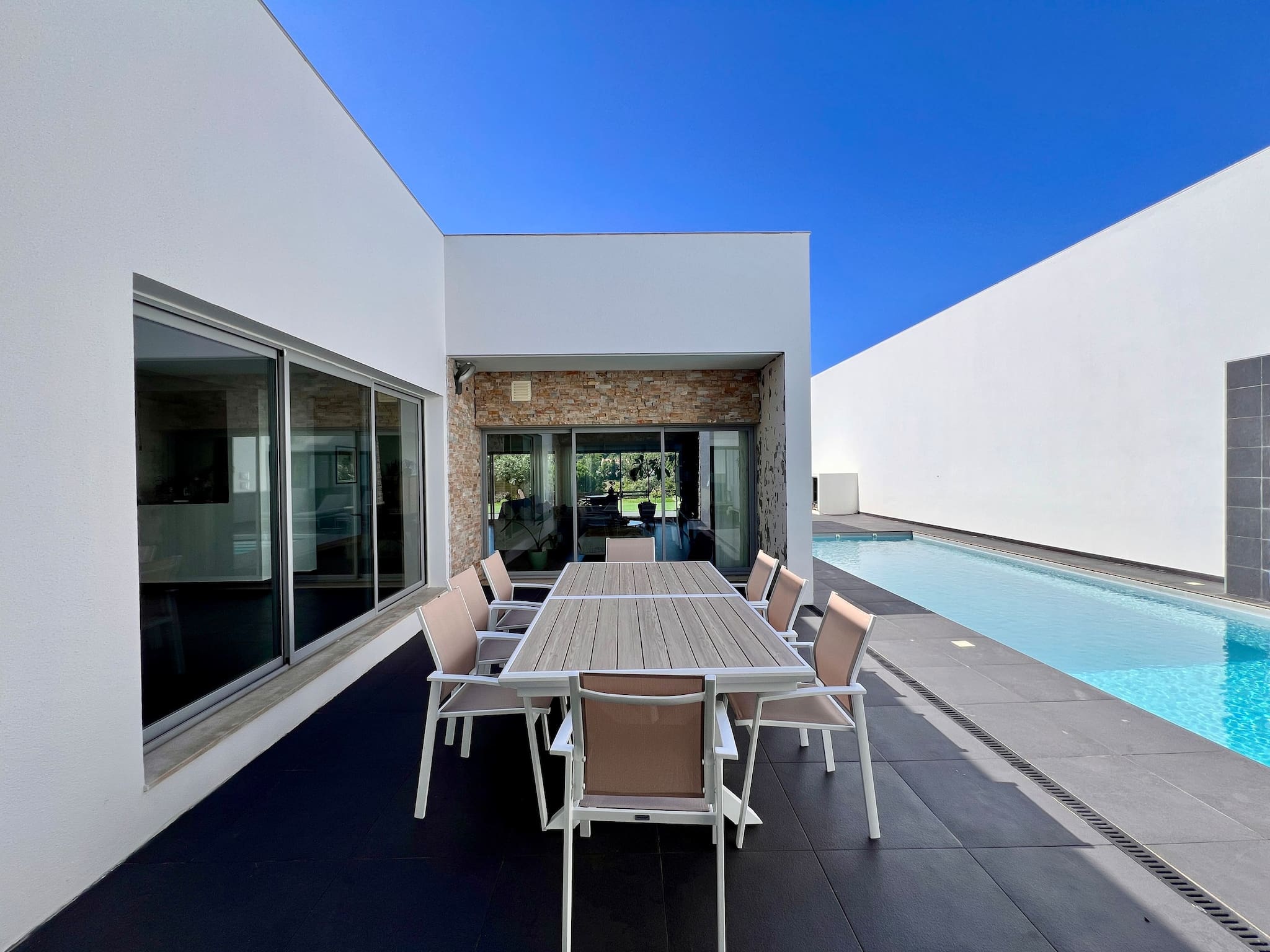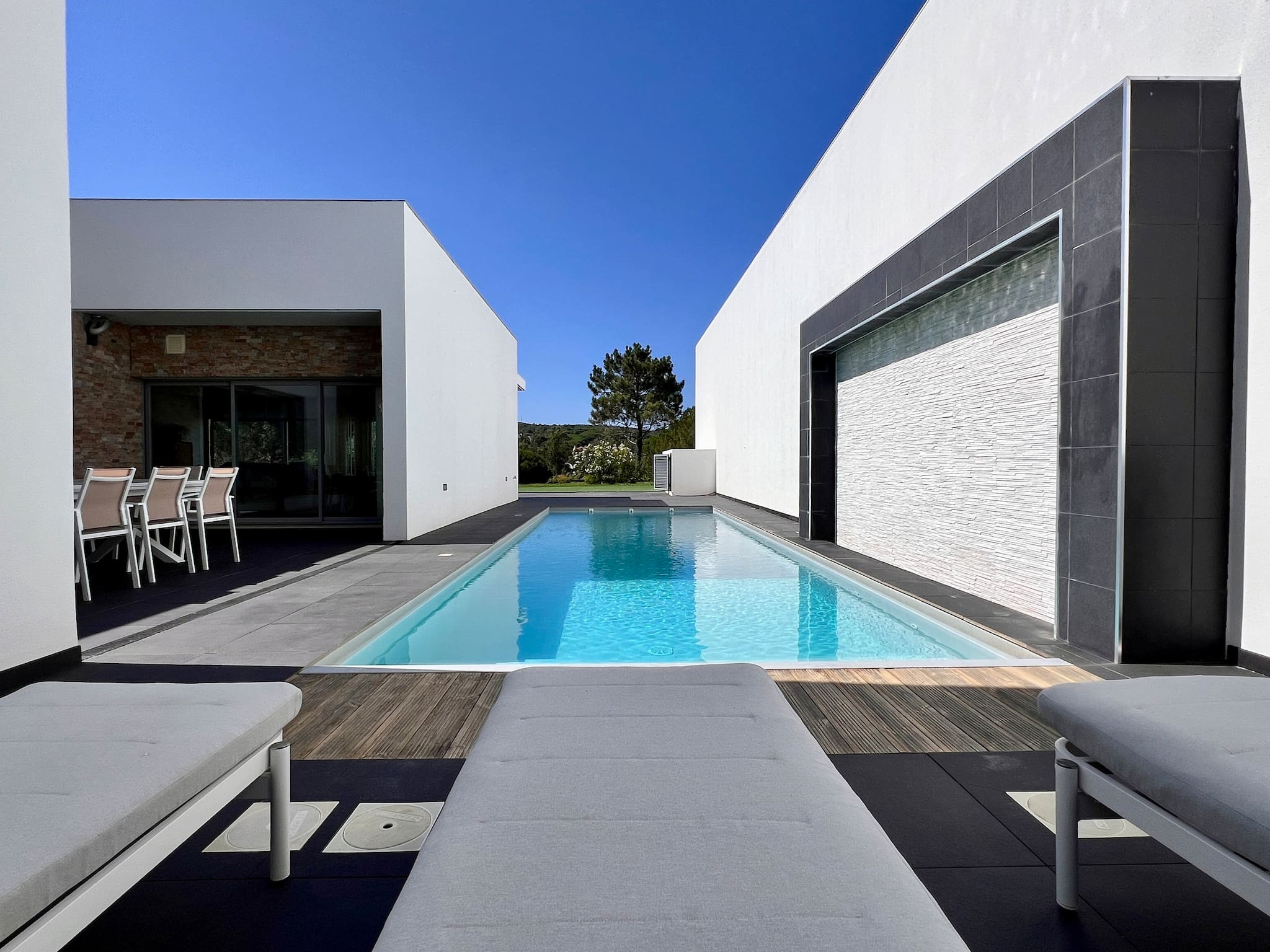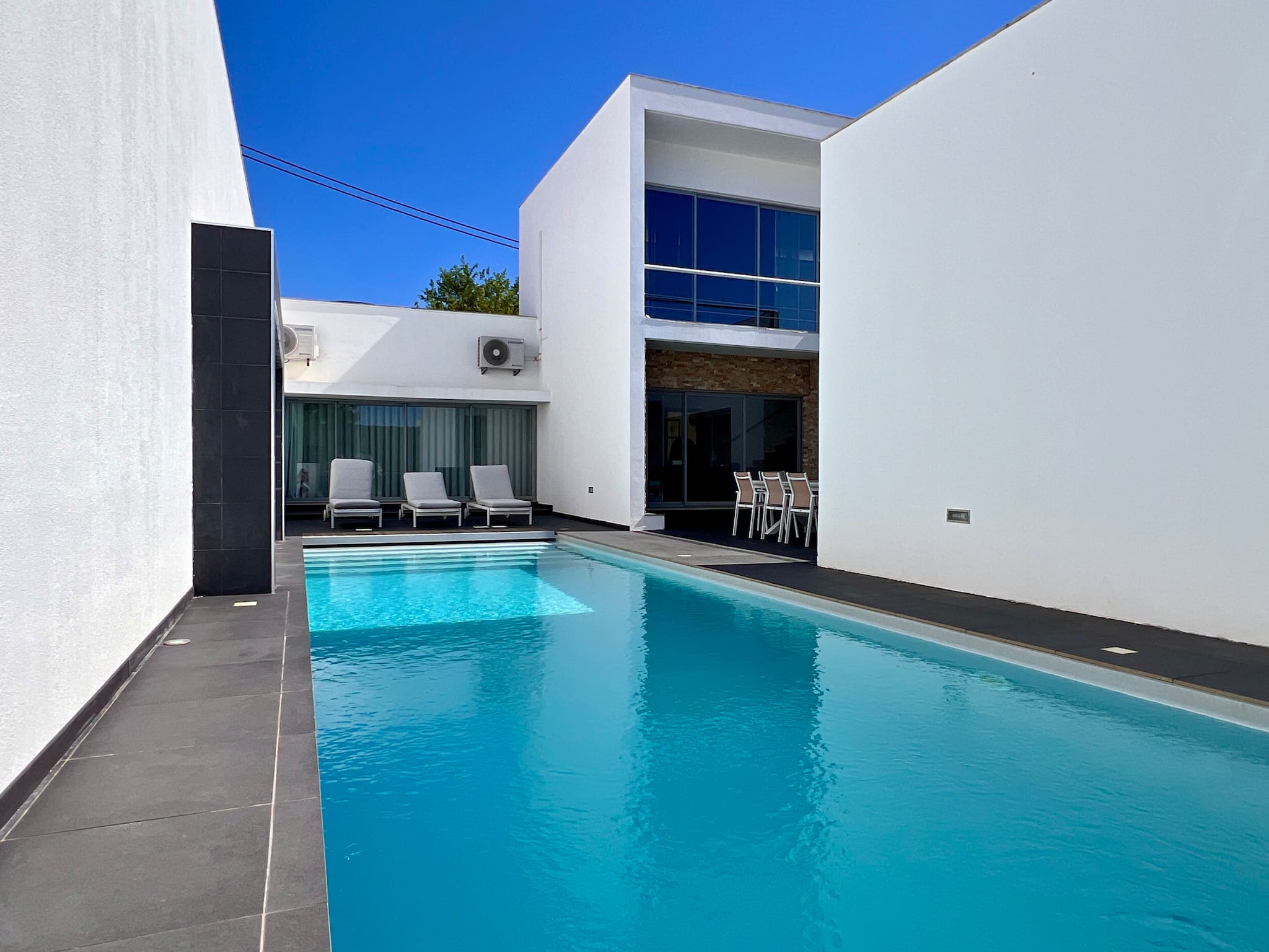 Cette villa contemporaine de 250m2 s’étend sur deux niveaux, offrant un espace généreux et lumineux pour votre détente et votre plaisir. Vous y trouverez une piscine privée et un jardin aménagé, où vous pourrez vous rafraîchir et vous détendre sous le soleil portugais.