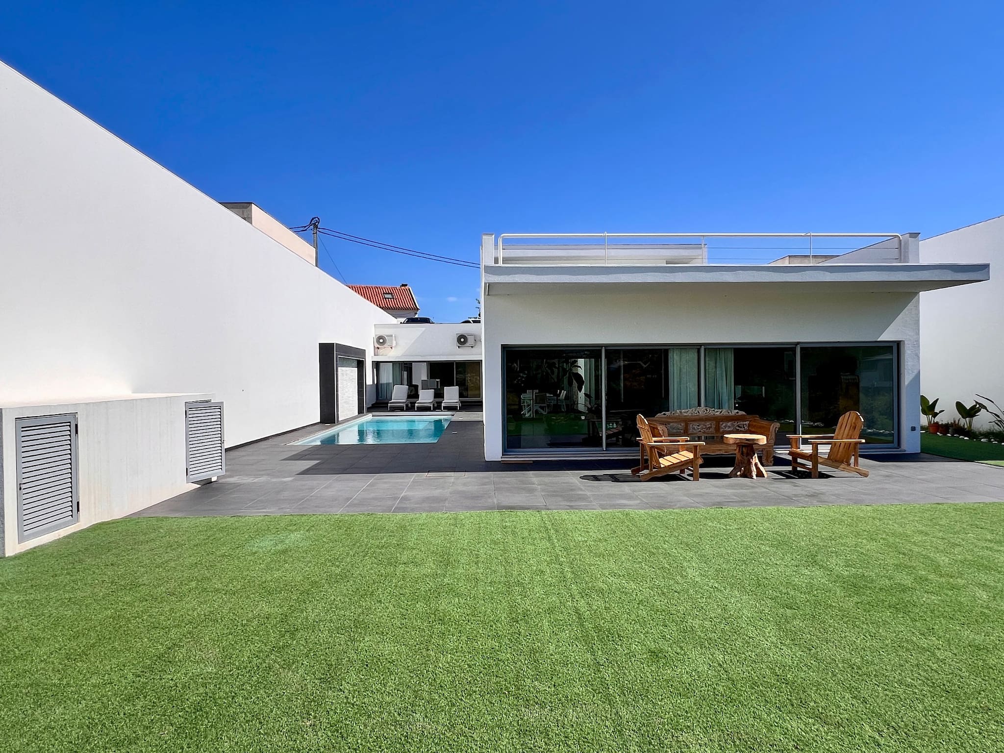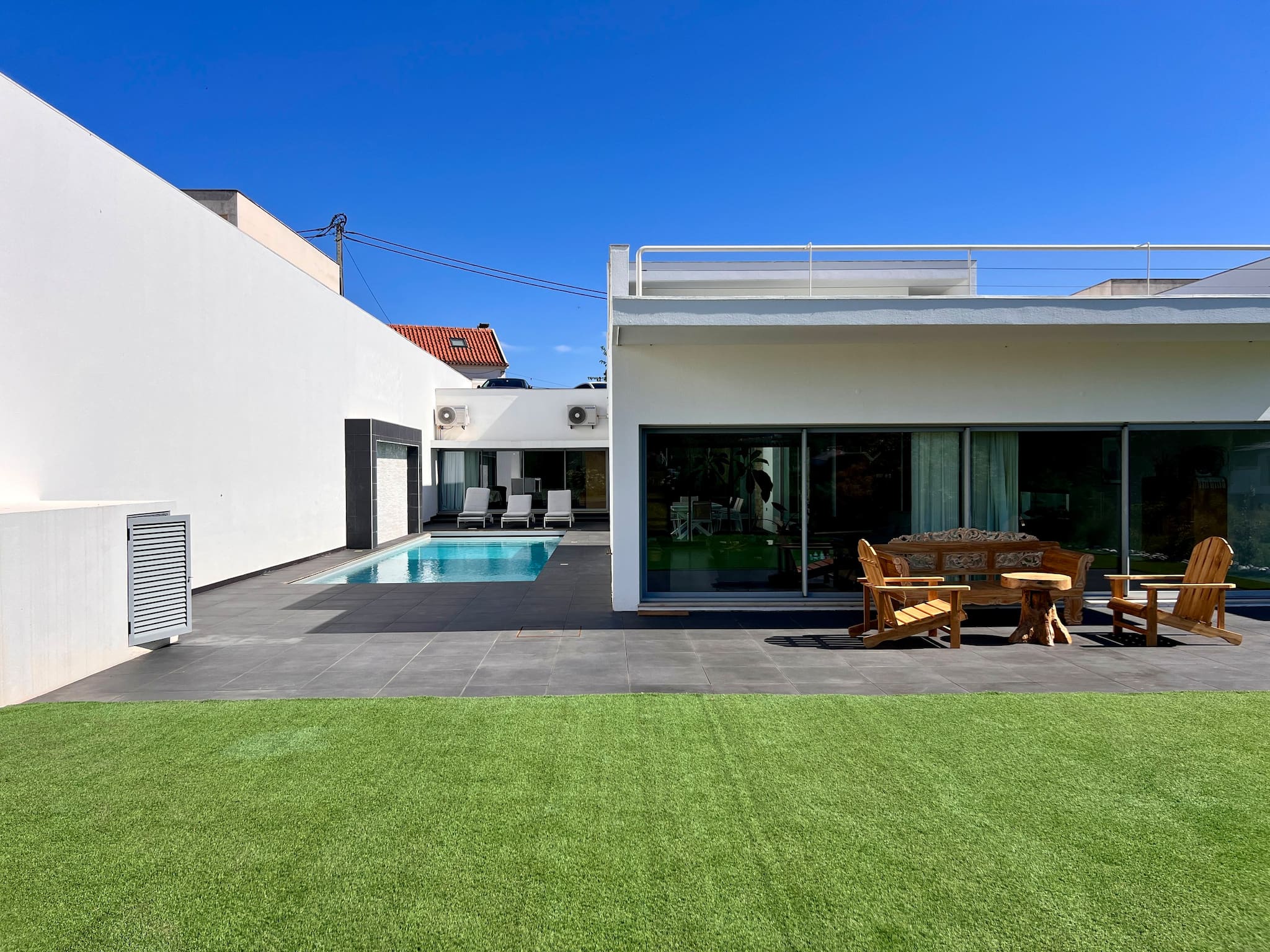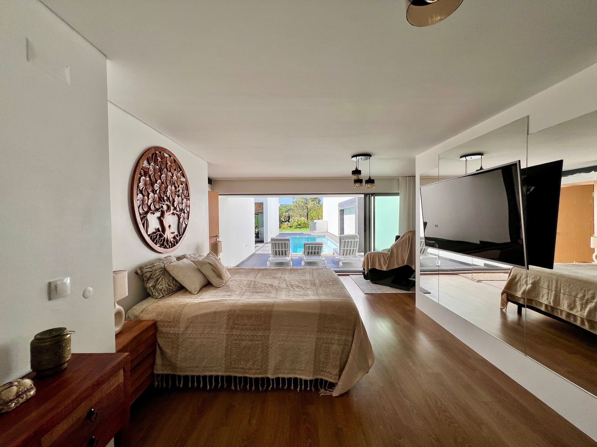 Cette villa contemporaine de 250m2 s’étend sur deux niveaux, offrant un espace généreux et lumineux pour votre détente et votre plaisir. Vous y trouverez une piscine privée et un jardin aménagé, où vous pourrez vous rafraîchir et vous détendre sous le soleil portugais.