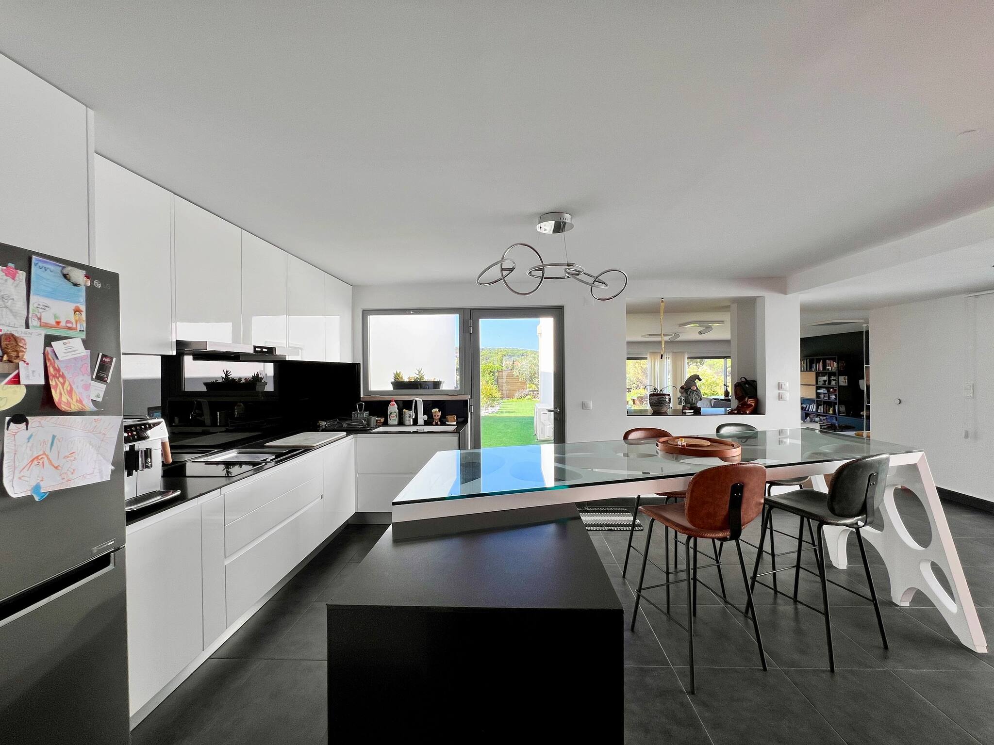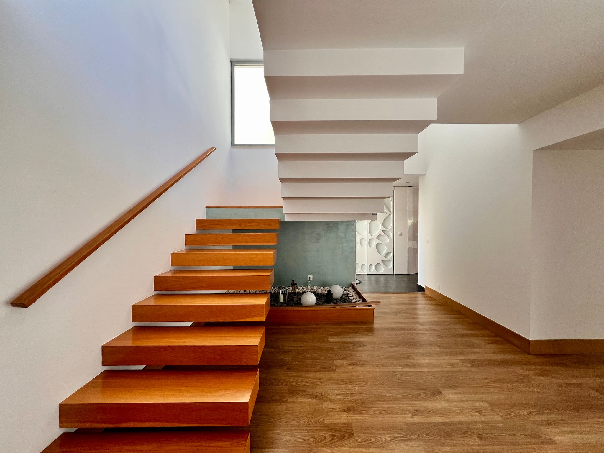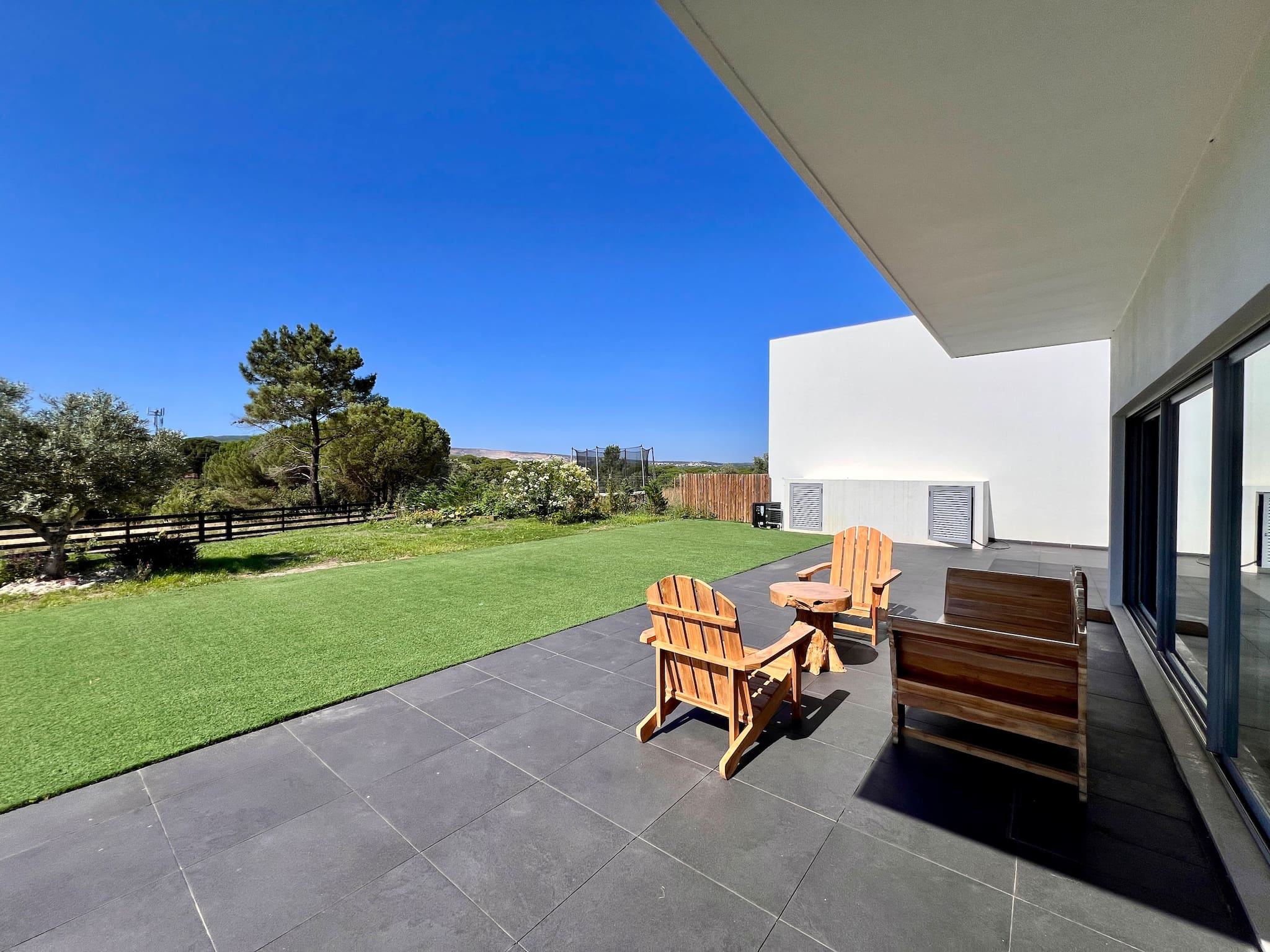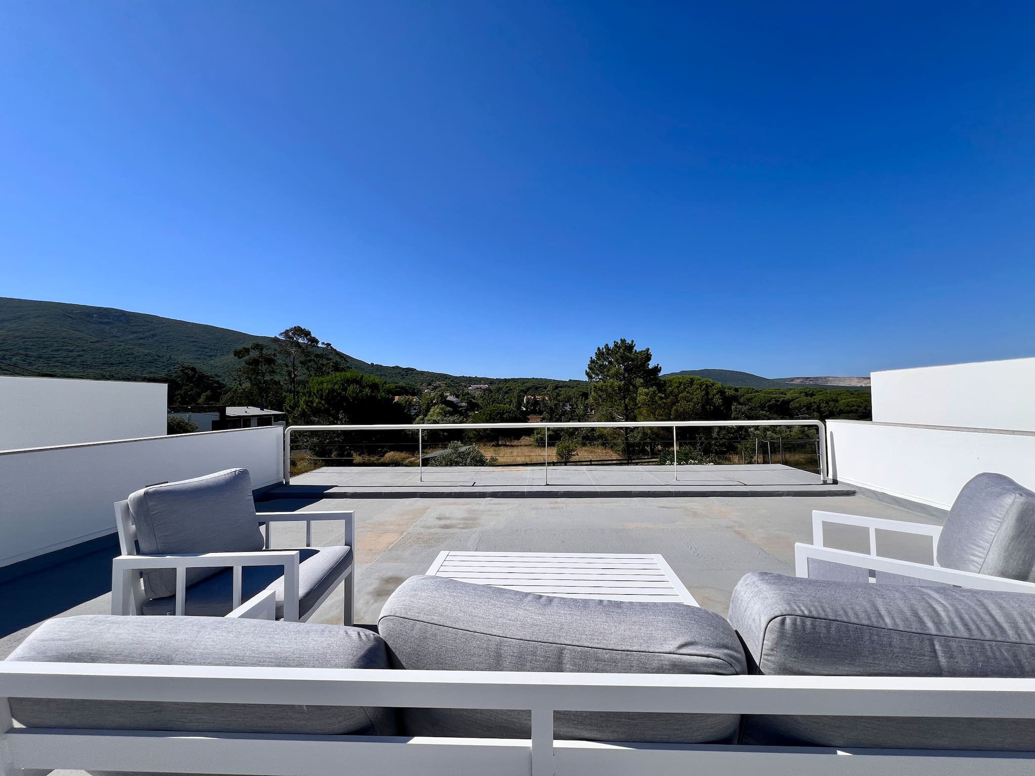 Cette villa contemporaine de 250m2 s’étend sur deux niveaux, offrant un espace généreux et lumineux pour votre détente et votre plaisir. Vous y trouverez une piscine privée et un jardin aménagé, où vous pourrez vous rafraîchir et vous détendre sous le soleil portugais.
