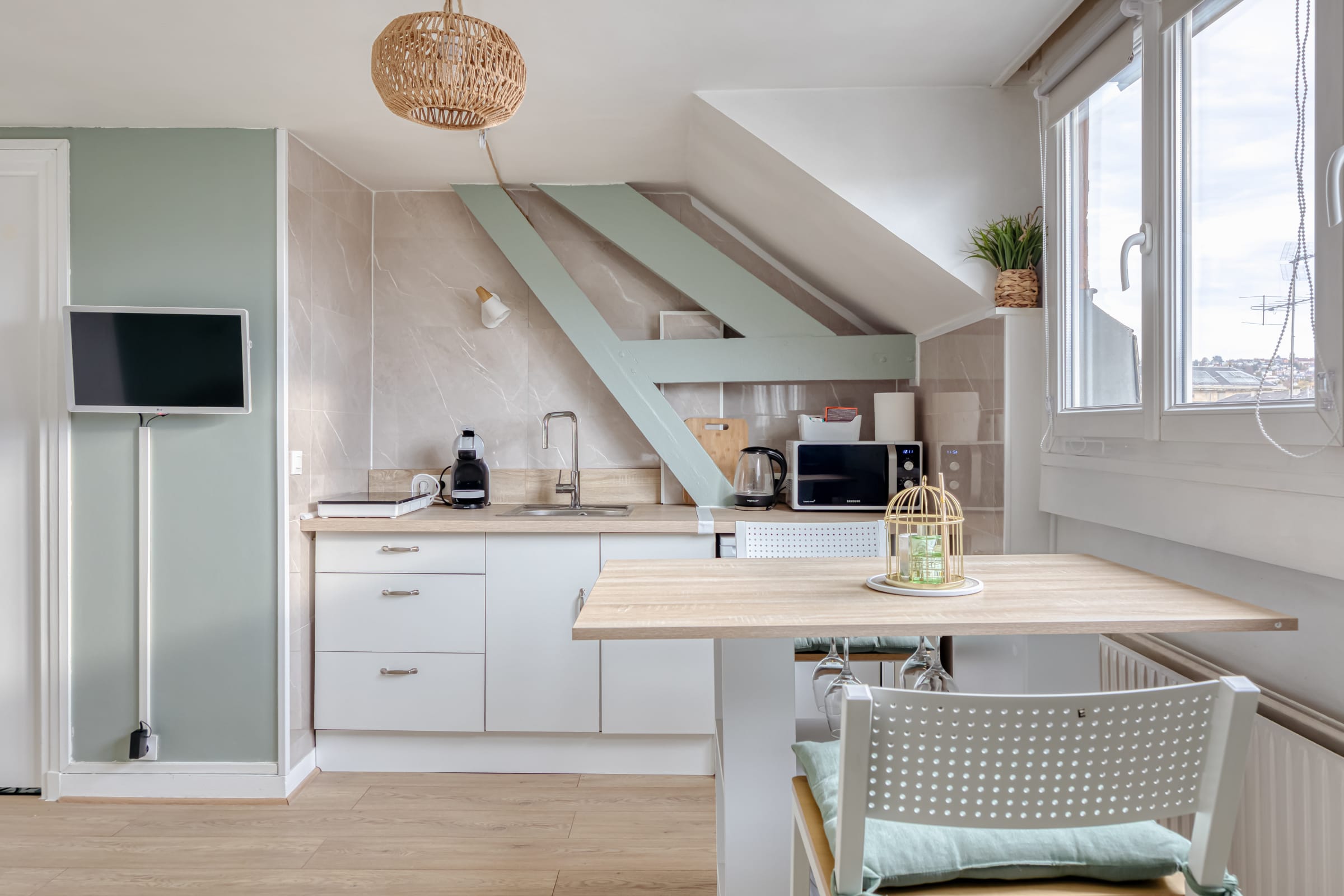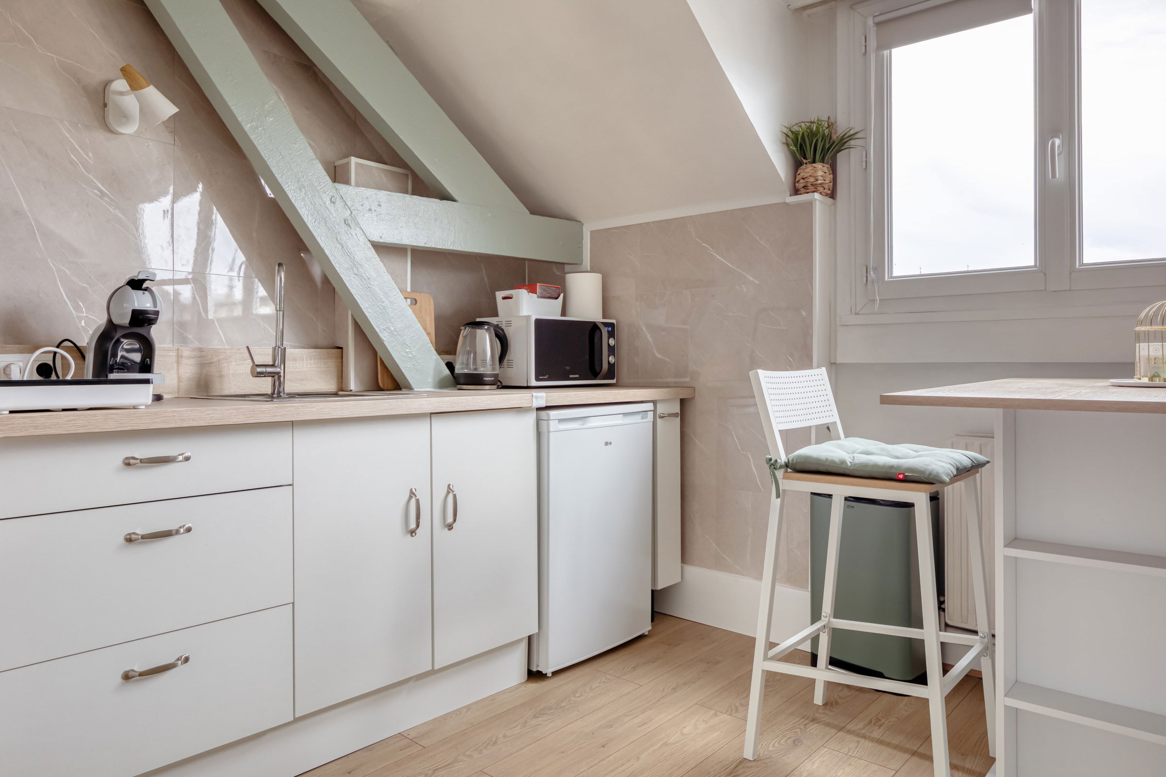 Installé au dernier étage d’une résidence calme avec ascenseur, cet appartement de 20 m² à l’ambiance soignée et accueillante est parfaitement conçu pour accueillir deux voyageurs en quête de charme et de tranquillité.