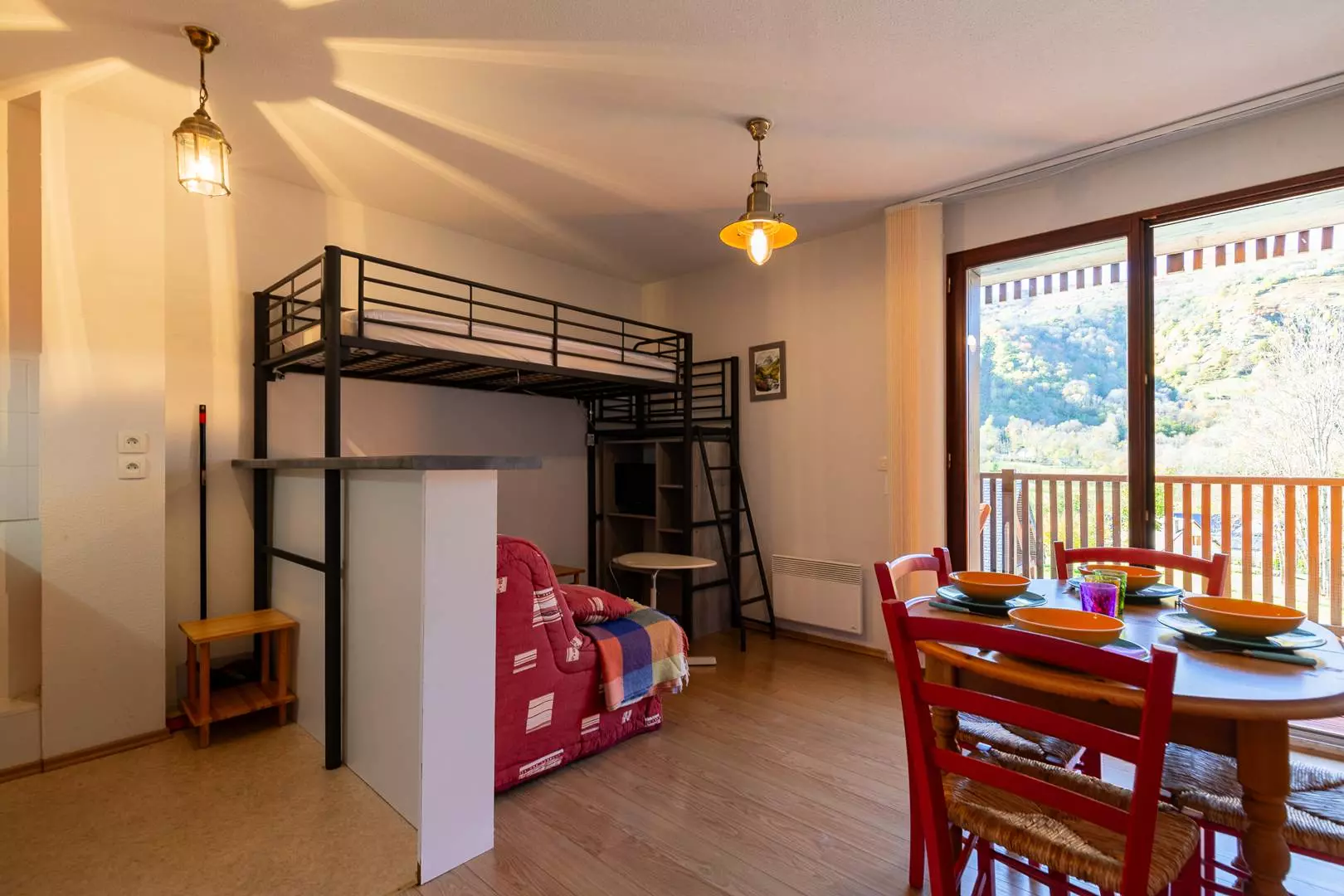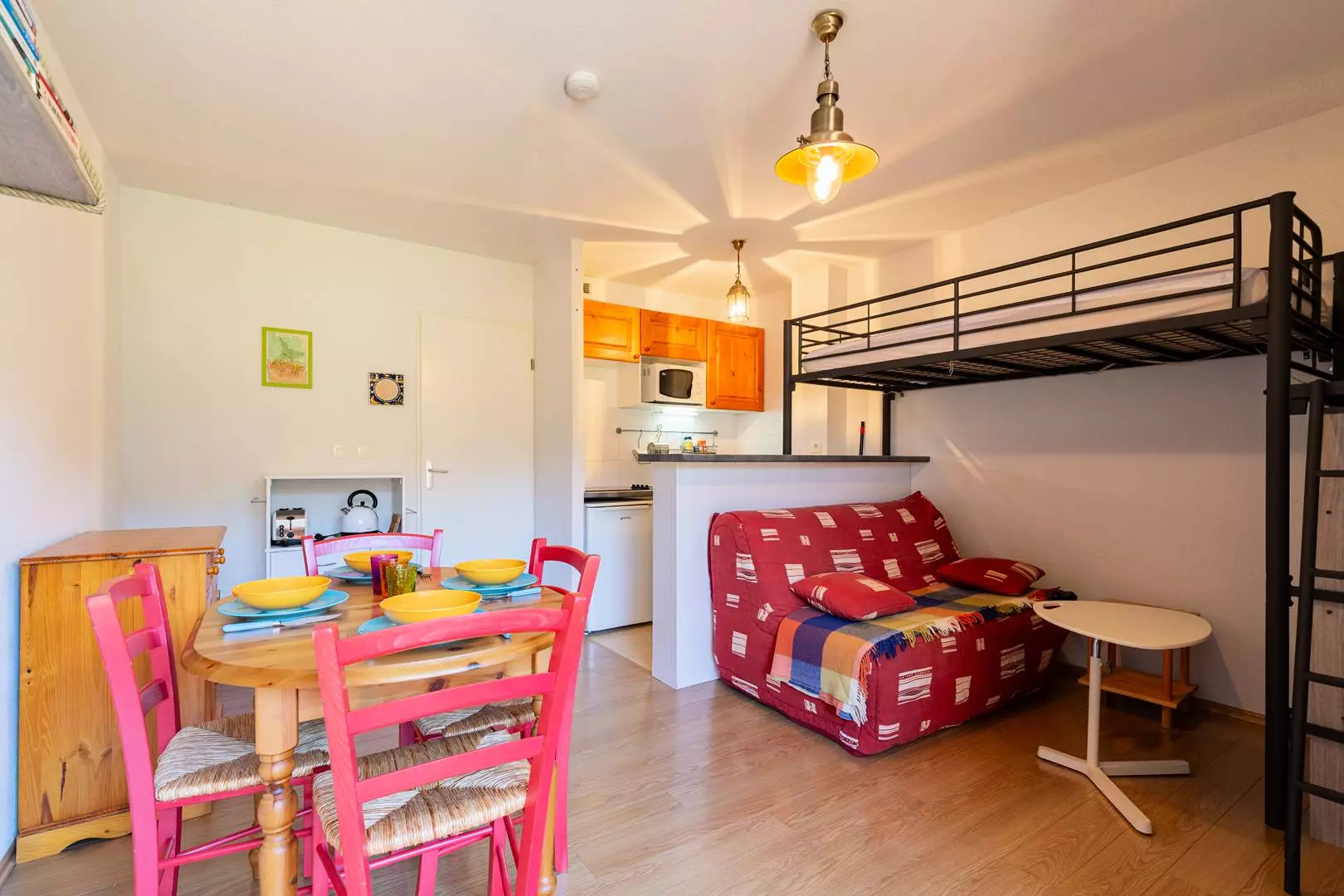 Canapé et lit mezzanine dans le séjour