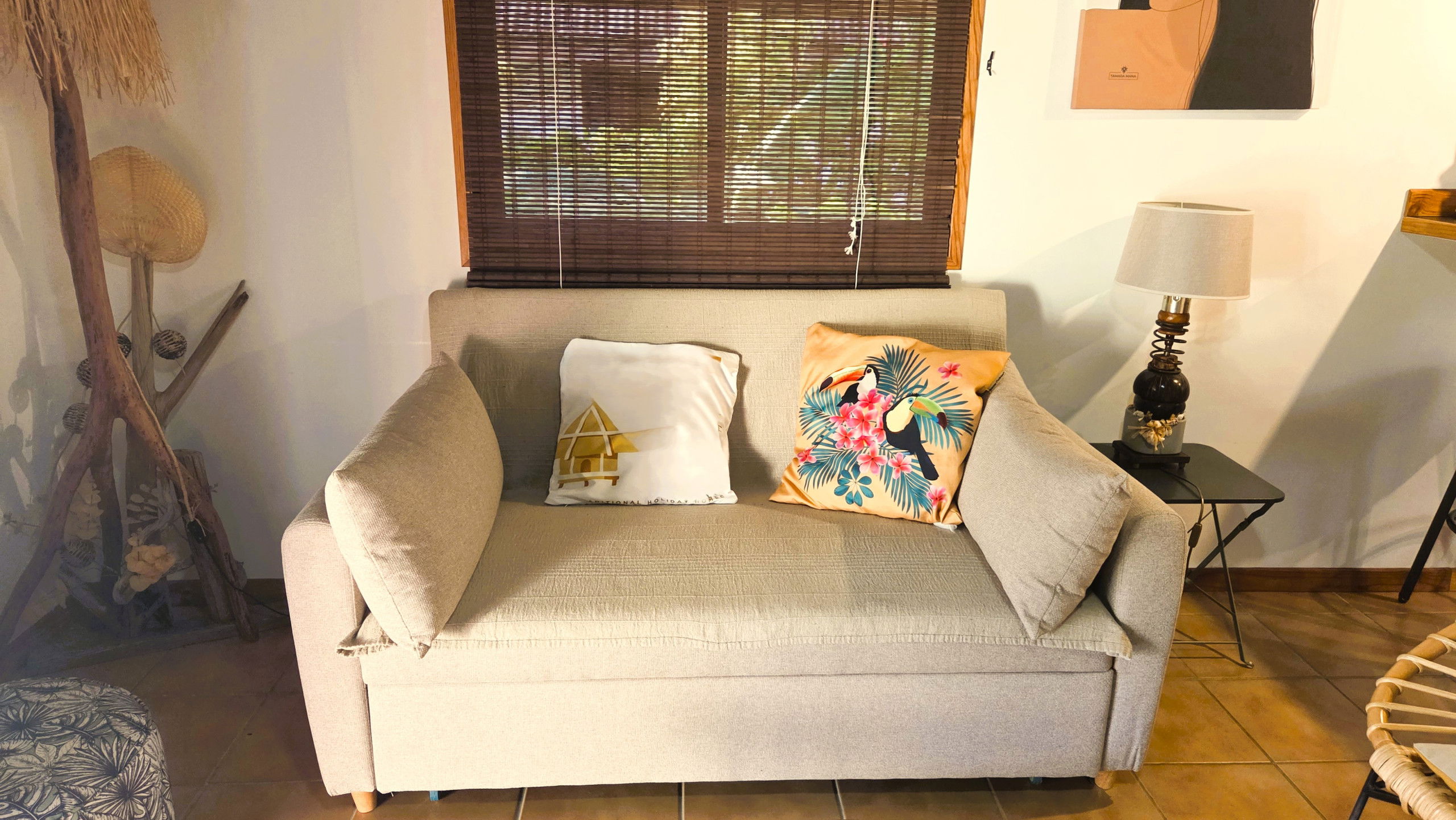 Entièrement réhabilité pour la location en meublé de tourisme, notre bungalow meublé et équipé peut accueillir jusqu'à 5 personnes. Il comprend une chambre parentale climatisée avec un lit double, une chambre pour enfants avec deux lits simples et un ventilateur, ainsi qu'un canapé-lit confortable dans le salon. Chaque pièce a été aménagée avec soin pour garantir votre confort et votre bien-être.