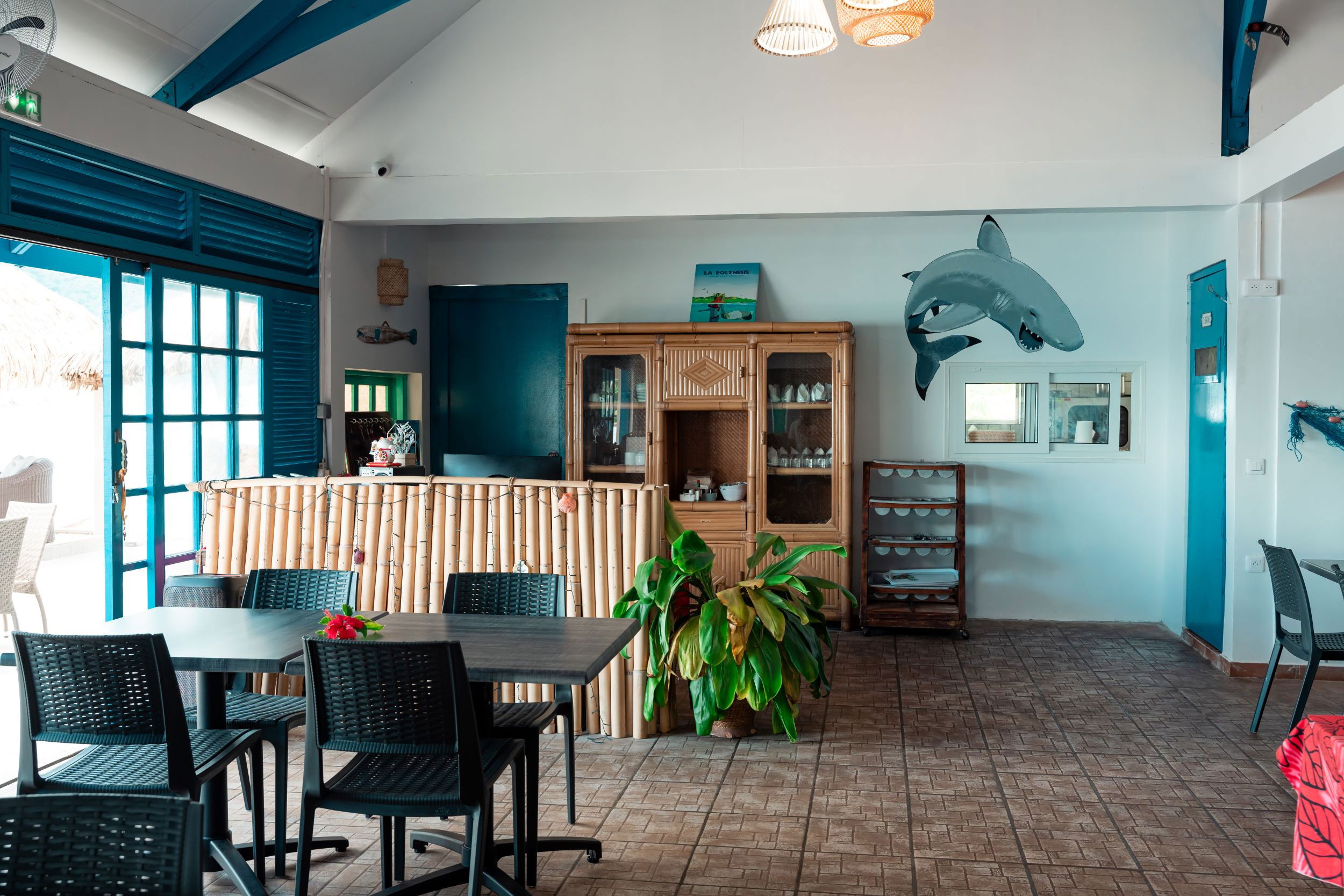 Demi-pension Enfant de mois de 12 ans à moitié prix soit 3 150 xpf par enfant. Les enfants de 0 à 3 ans mangent gratuitement. Un bar propose des boissons avec et sans alcool, dont la bière locale Hinano.