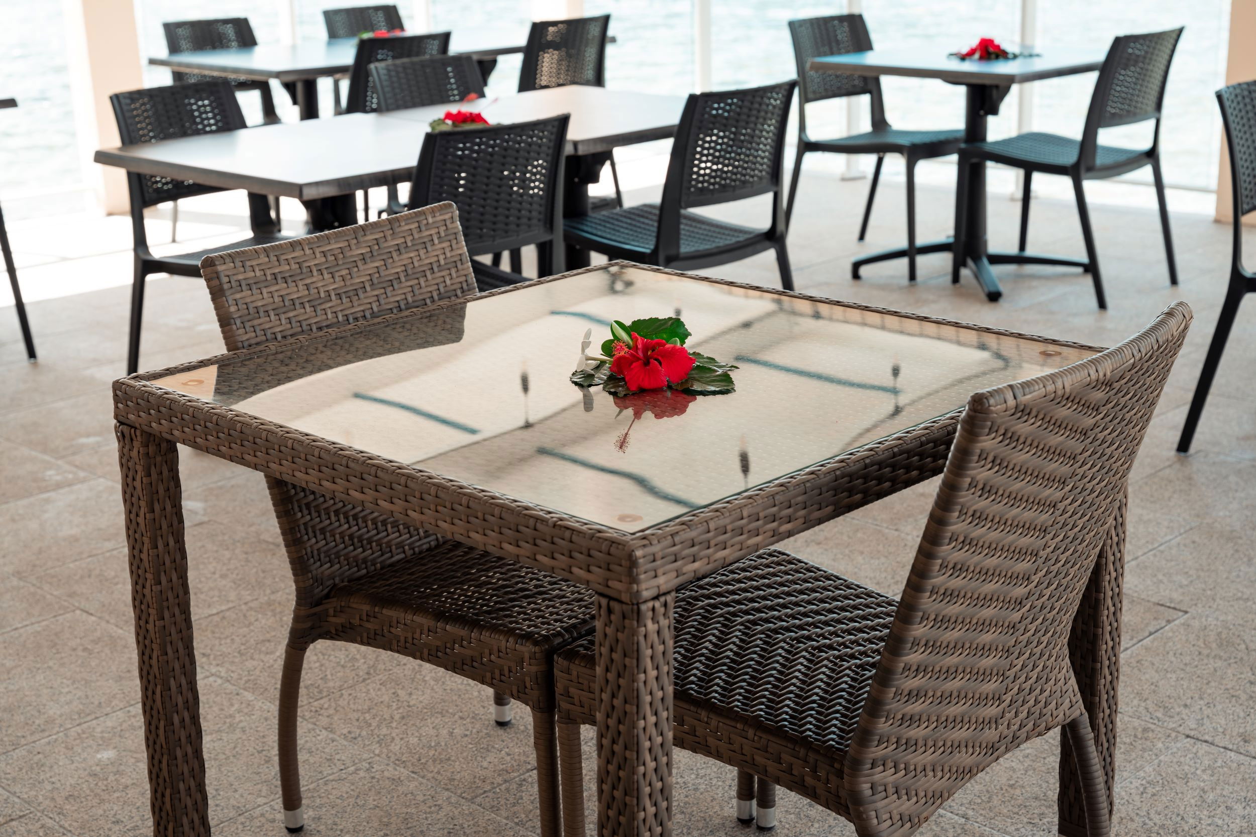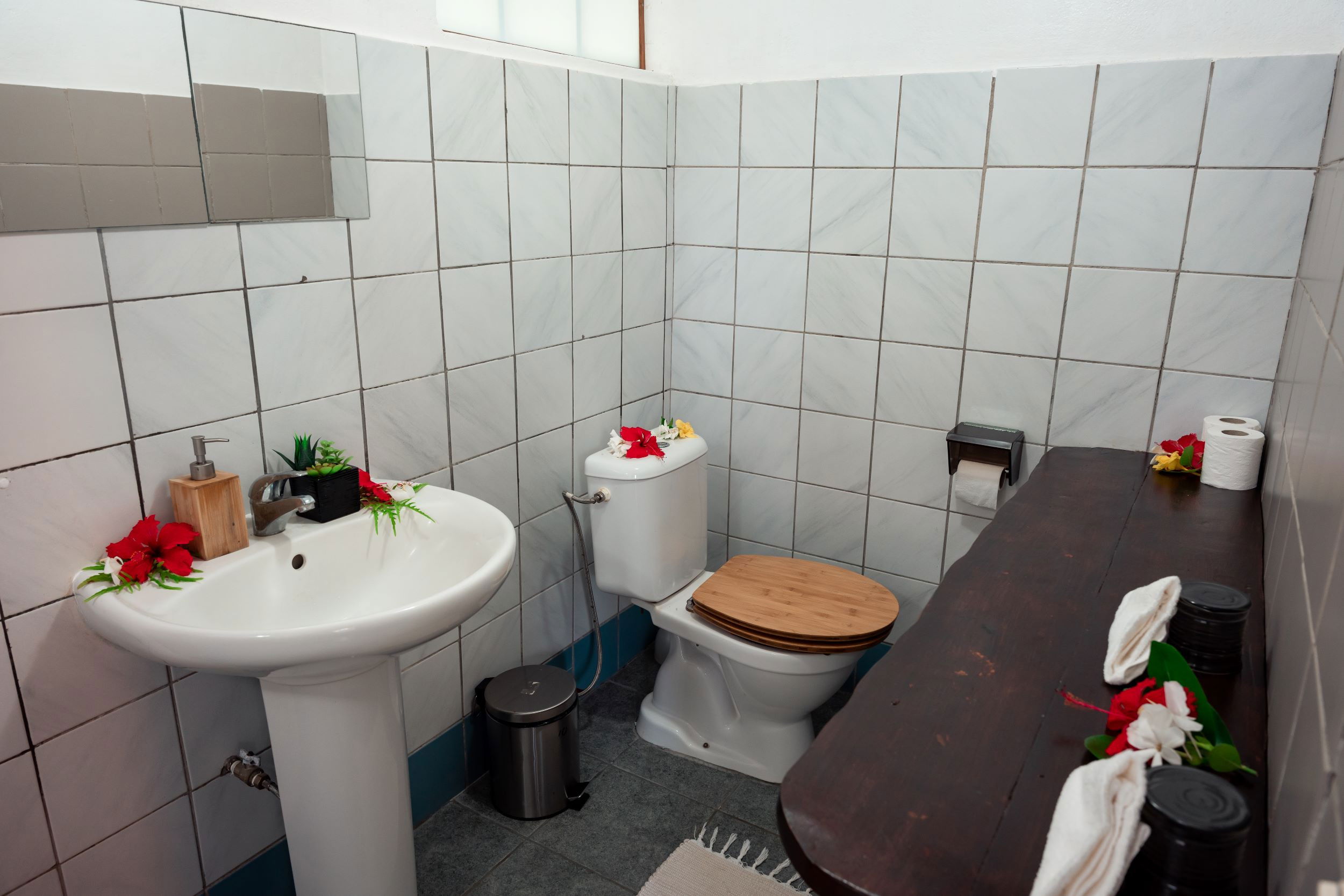 Le bungalow étant dépourvu de cuisine, un service de restauration en demi-pension est disponible avec petit-déjeuner et dîner (hors boissons).