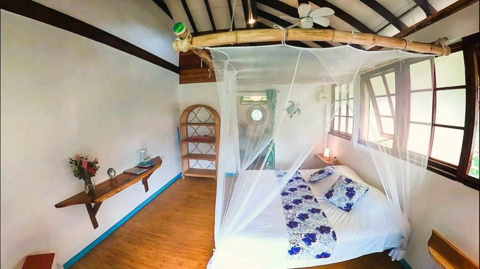 Installé au cœur d’un domaine luxuriant de plus de 2 hectares où se situe au total 6 hébergements, votre chambre est spacieuse avec une superficie de 24 m², alliant confort moderne et charme tropical. Pensé pour accueillir jusqu’à 2 personnes, la chambre est climatisée et équipée d’un lit à baldaquin avec moustiquaire intégrée pour des nuits paisibles.