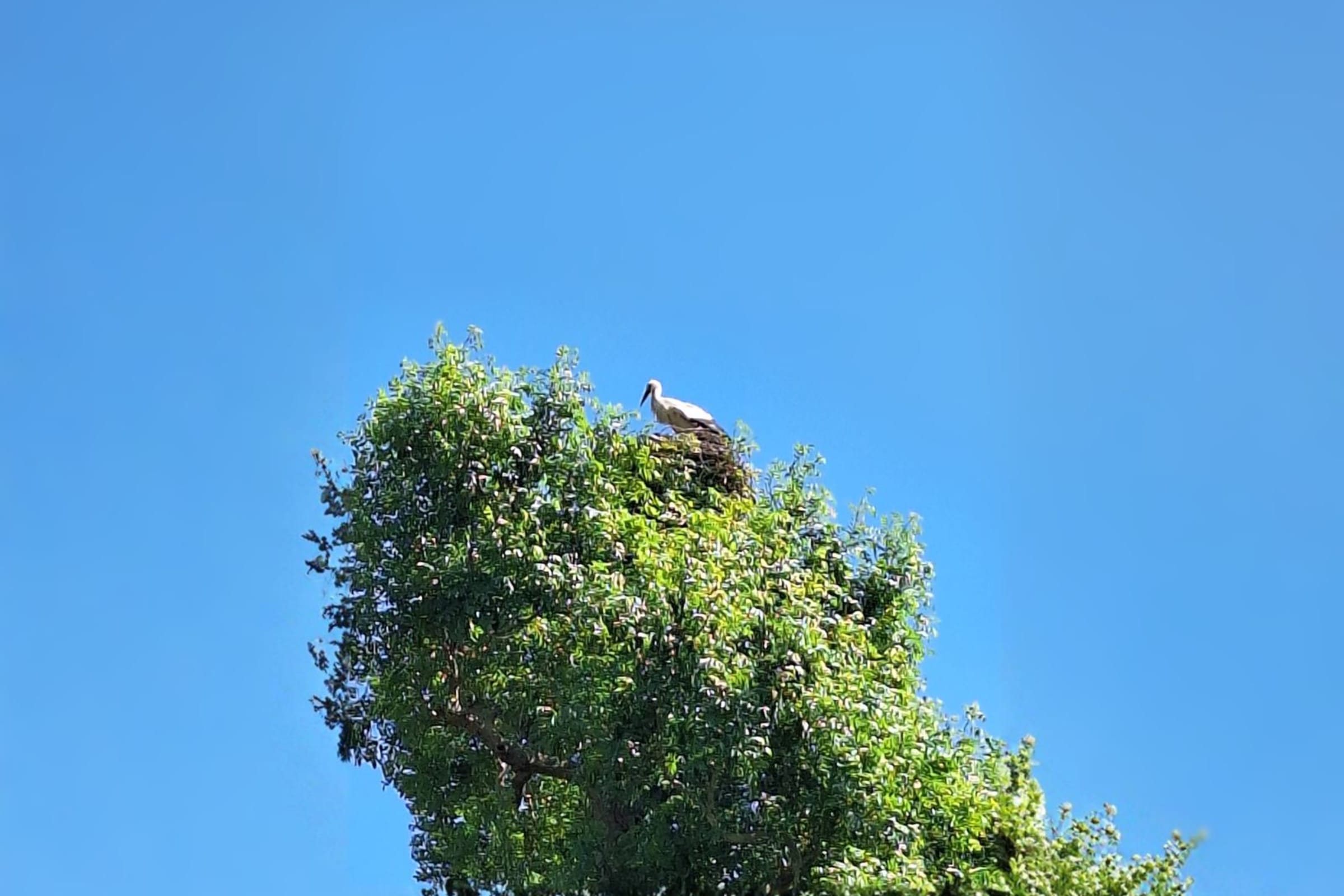 A certaines périodes de l'année, il vous sera possible d'observer des cigognes qui ont leur nid à la cime d'un arbre, dans le jardin.