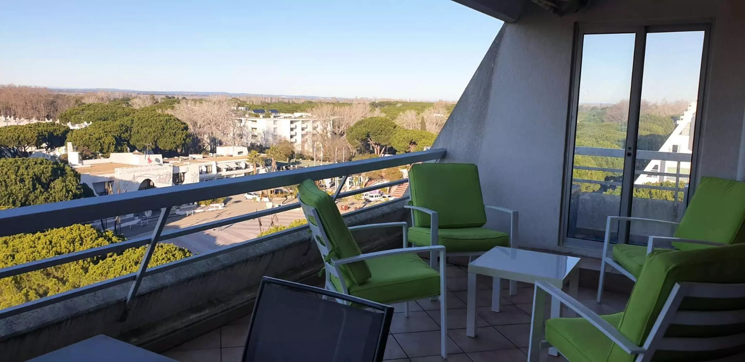 Le Groupe Neptune Immobilier vous propose en location vacances ce magnifique 4 pièces de 84 m², situé au centre-ville de la Grande-Motte dans une résidence calme et sécurisée au septième étage avec ascenseur. Cet appartement climatisé est composé d'une entrée, une salle d'eau avec douche, lavabo une vasque, lave-linge et WC. Une chambre avec lit superposée (140x190), une deuxième chambre lit double (140x190) et d'une troisième chambre lit double (140x190) avec un accès sur la terrasse extérieure. L'appartement est constitué d'un séjour avec un magnifique canapé d'angle, une télévision, et une incroyable vue sur la Grande-Motte. Une cuisine équipée (frigo,four, lave vaisselle, micro-onde, bouilloire, cafetière et grille-pain), un coin repas avec vue sur la terrasse et sur la Grande-Motte et pour finir une grande terrasse munie d'un mobilier de jardin, piscine collective.
