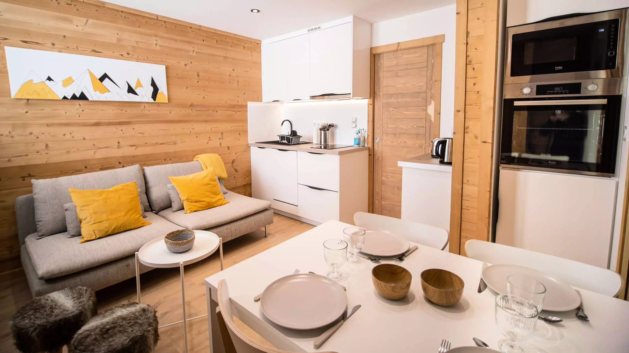 Bel appartement entièrement rénové de 26m² pour 4 personnes au 1er étage. Décoration dans un esprit montagne contemporain.