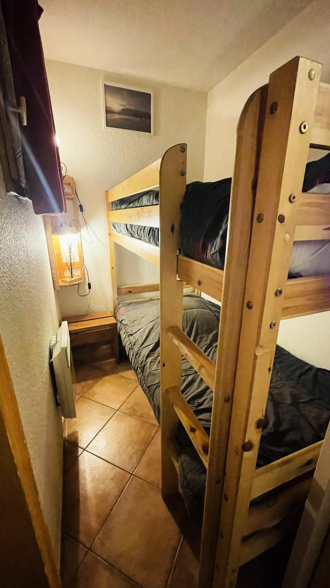 Une cabine fermée par une porte coulissante avec un ensemble des lits superposés.(2x80cm)