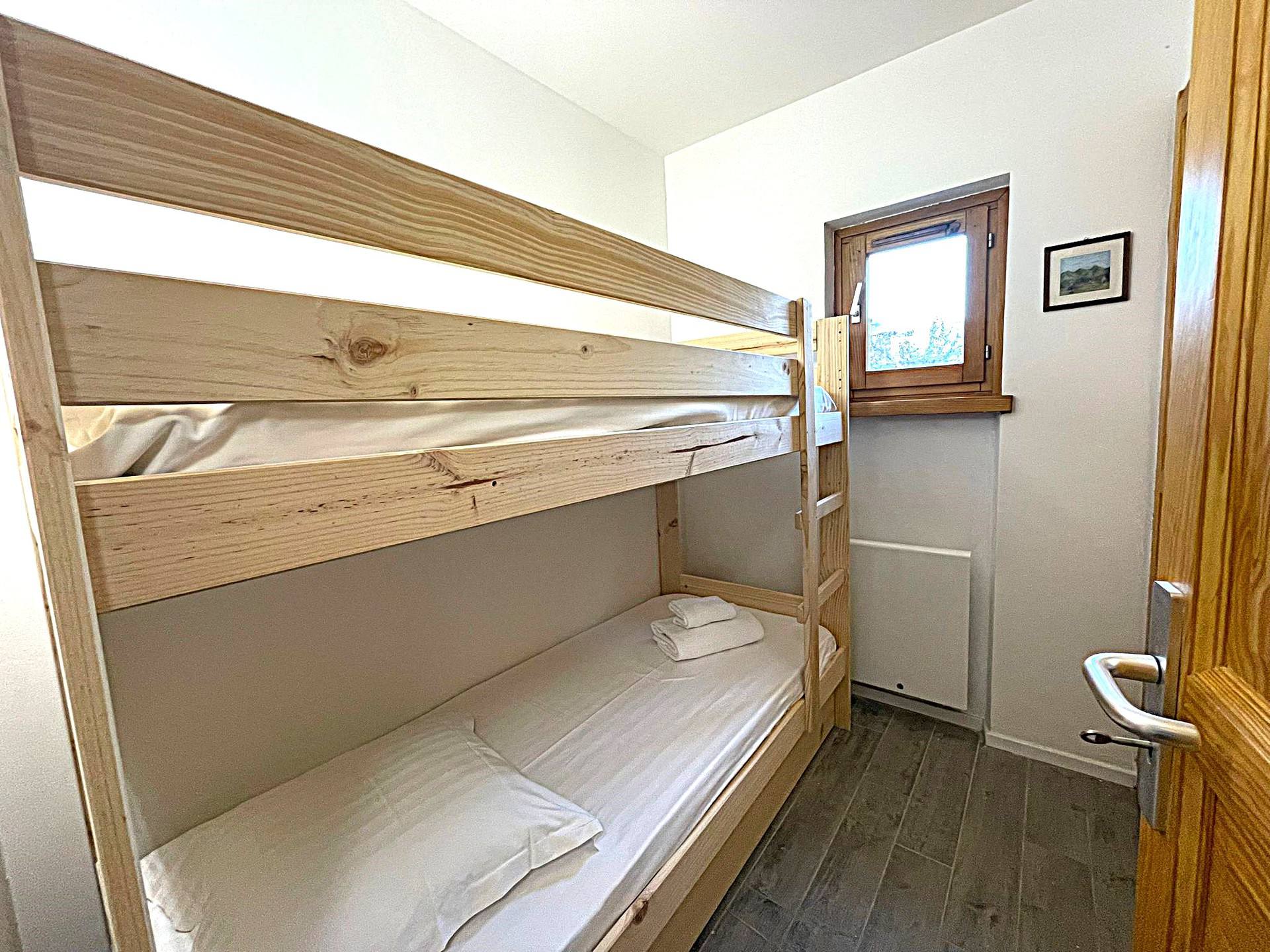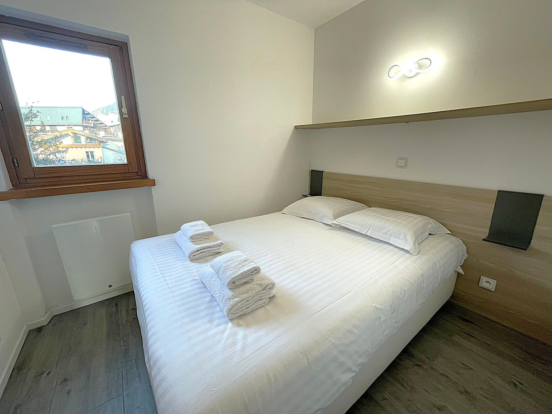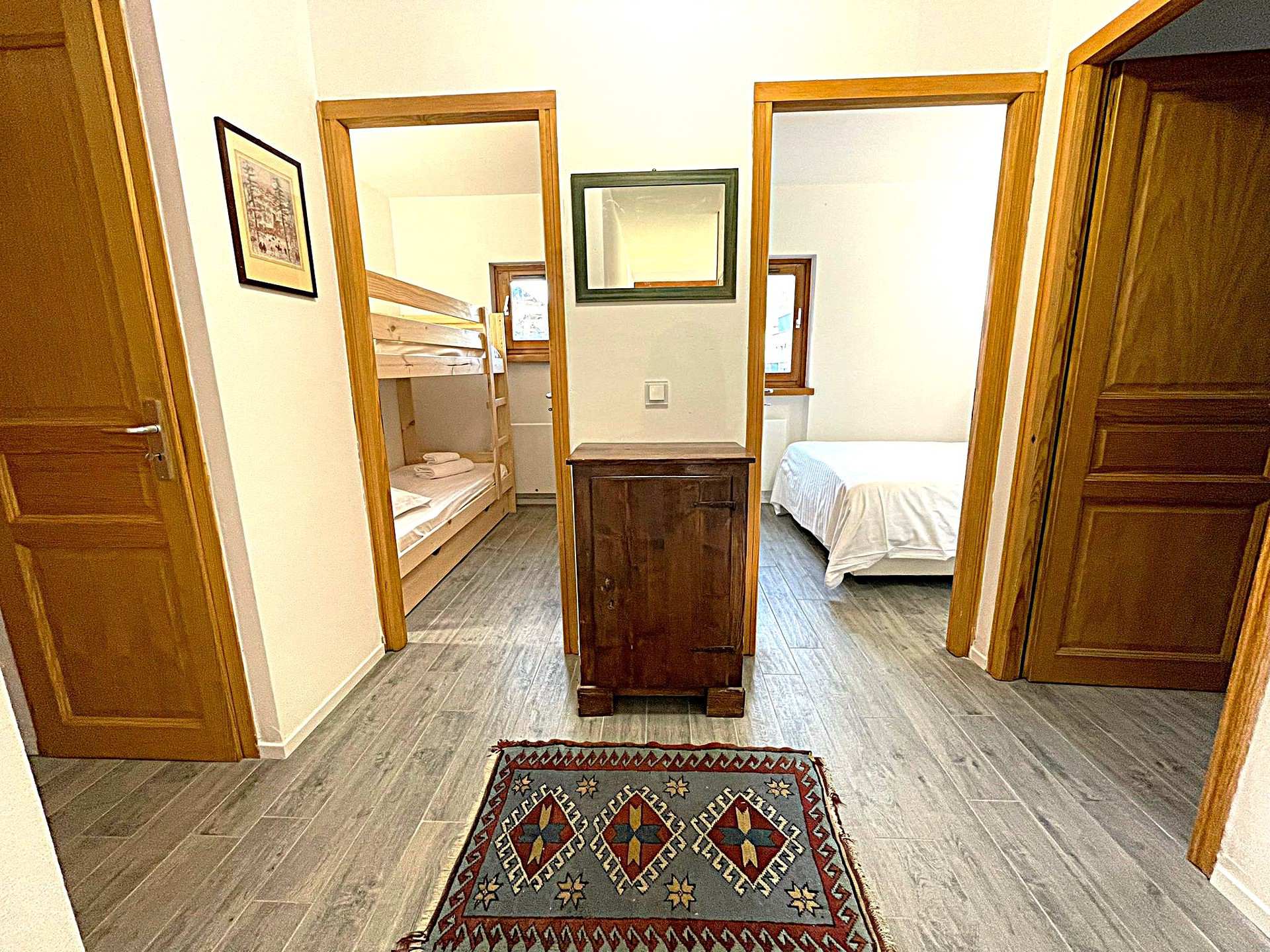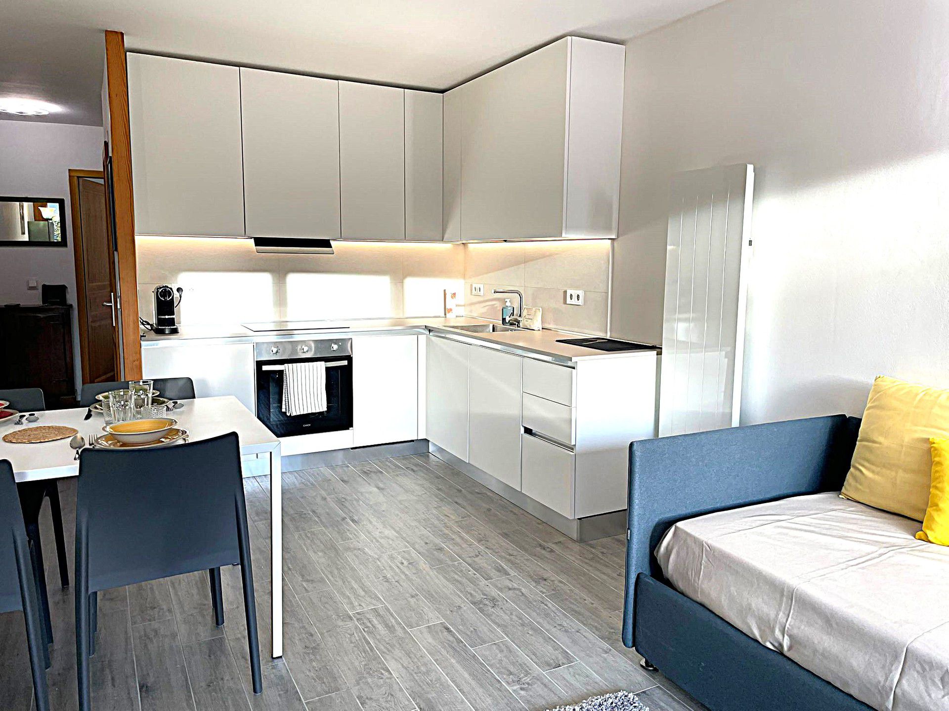Il se compose d'une chambre double et d'une chambre avec lits superposés, d’une cuisine entièrement équipée ouverte sur un salon / séjour lumineux et offre un cadre chaleureux et moderne.
