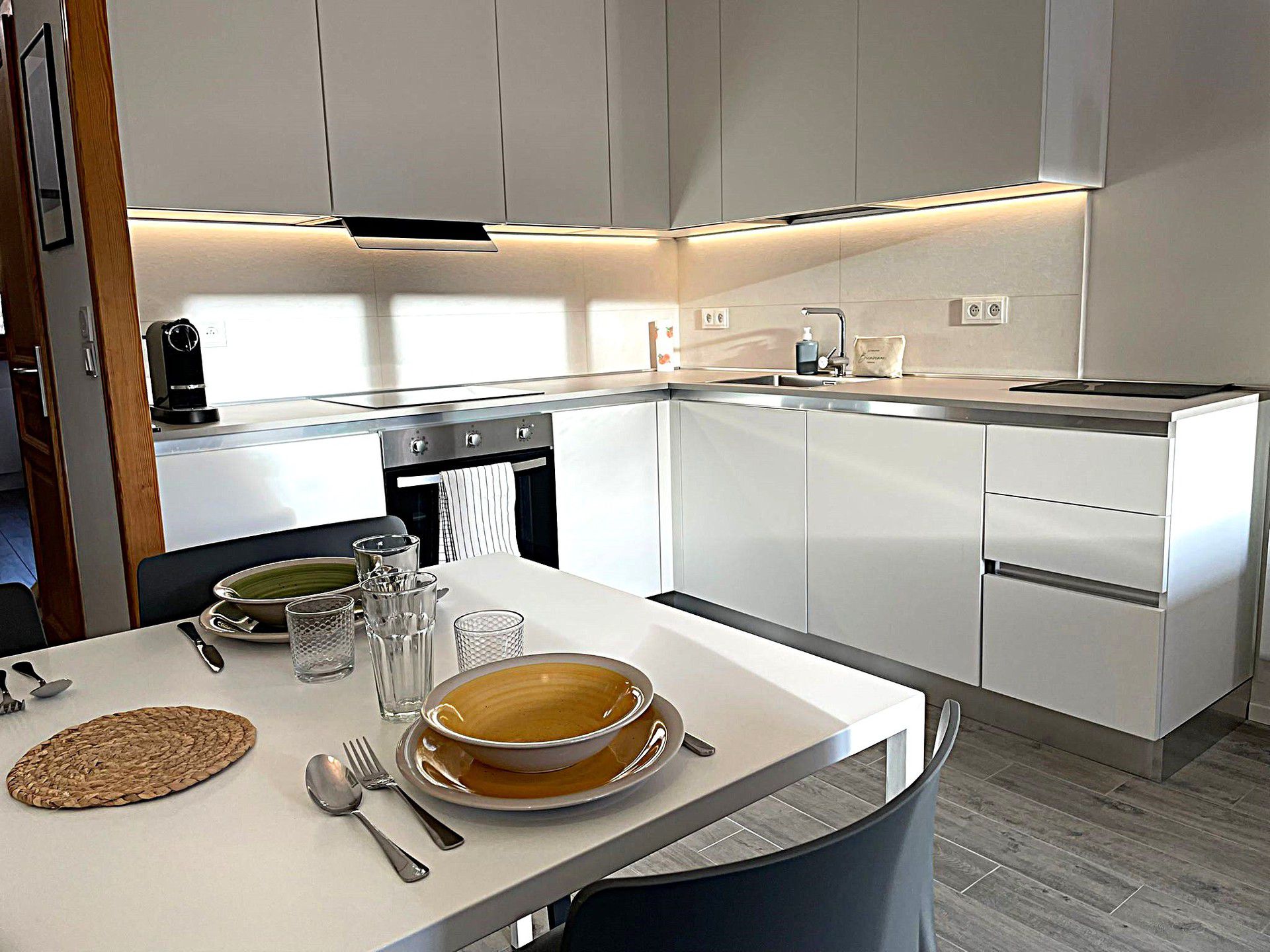 - Coin cuisine équipé (plaque à induction, four, réfrigérateur, lave-vaisselle, micro-ondes, machine à café Nespresso, bouilloire, grille-pain et lave-linge)