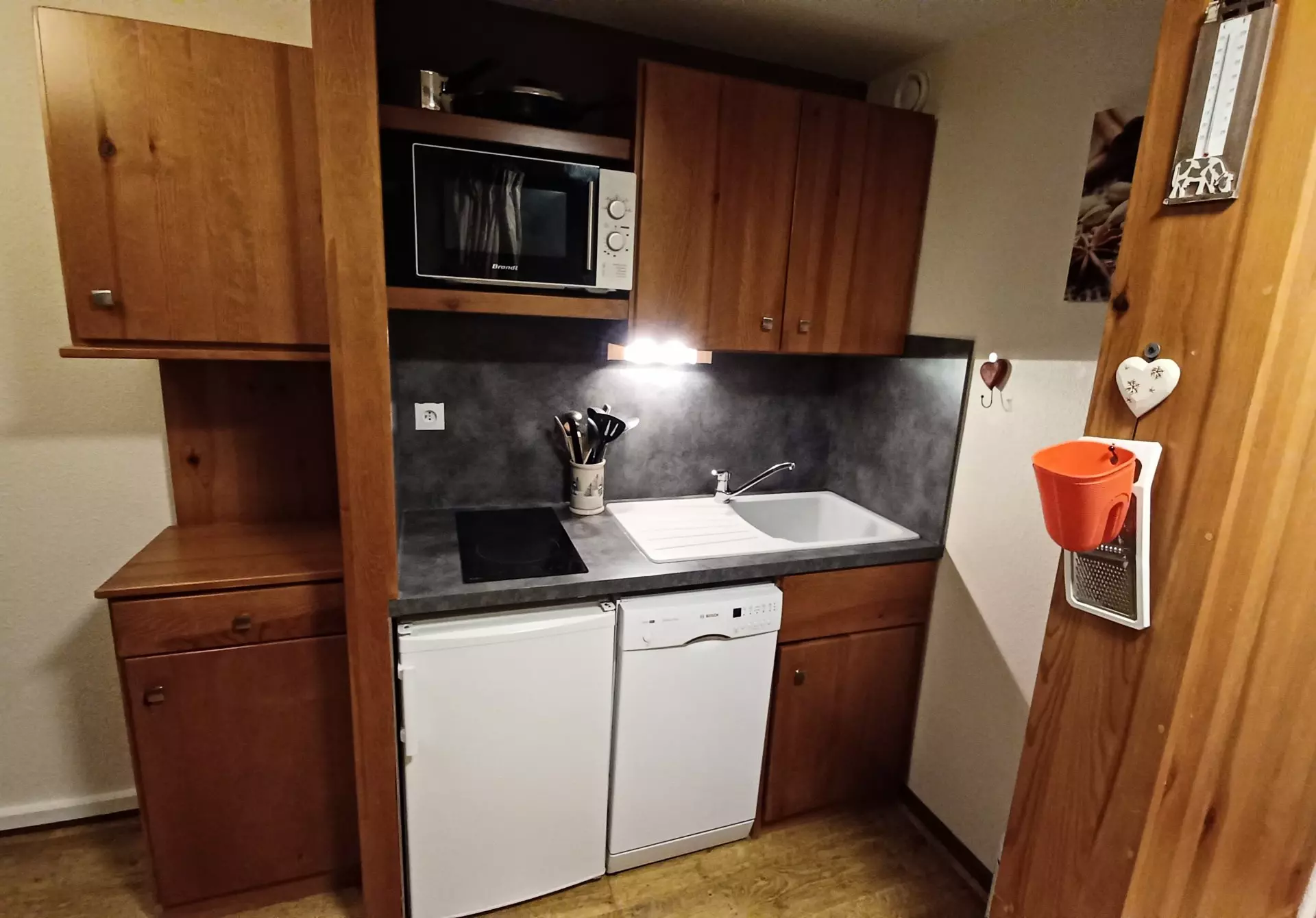 Équipements : Lave-vaisselle, réfrigérateur, four, plaques à induction. Télévision.