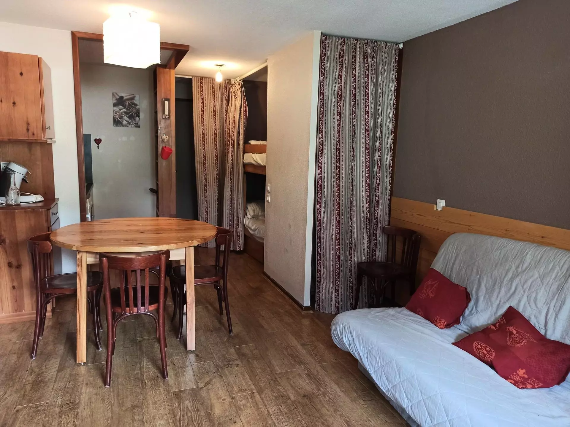 Couchages : 1 canapé convertible, 1 lit double en 140, 2 lits superposés (conseillé pour les enfants, uniquement à partir de 6 ans).