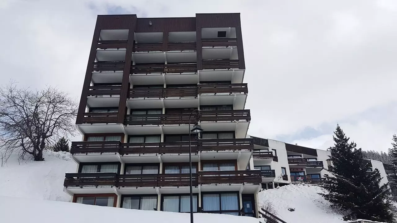 Résidence des années 70 avec des appartements situés proche des pistes et des commerces (magasins de sport, supérette).