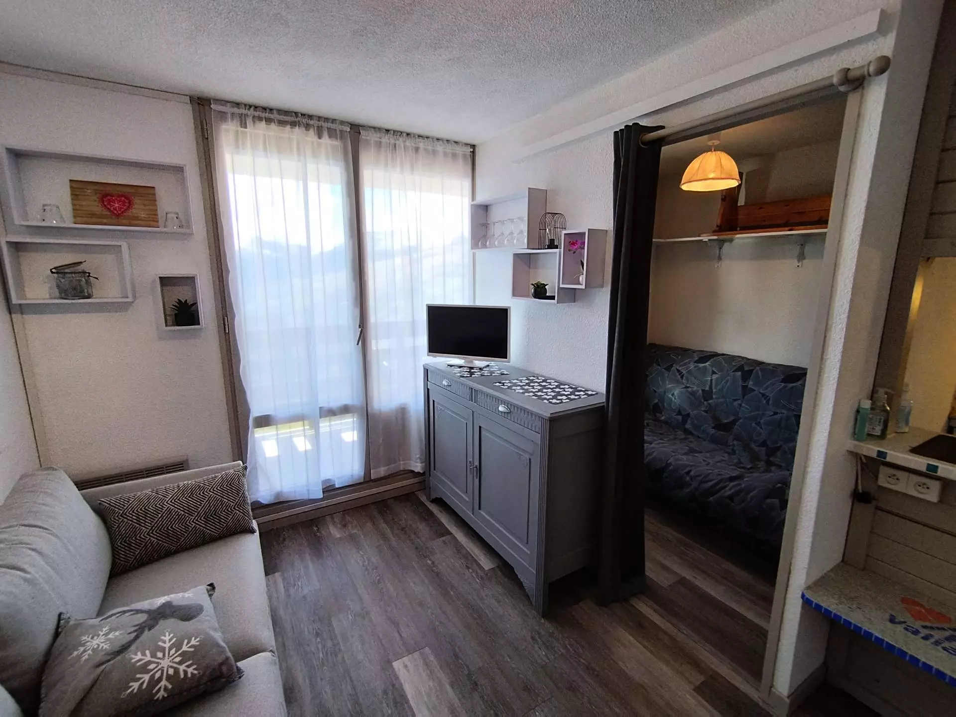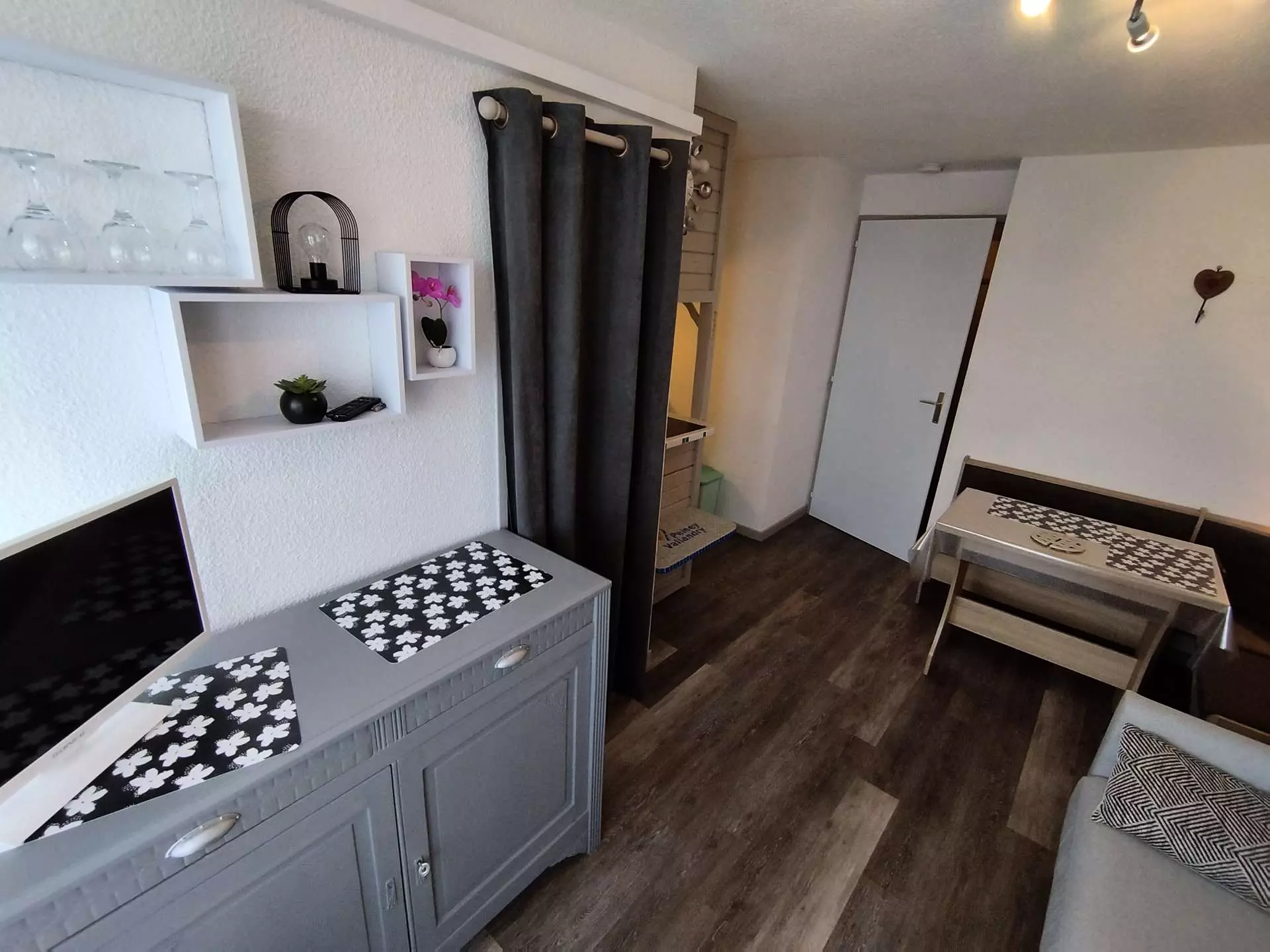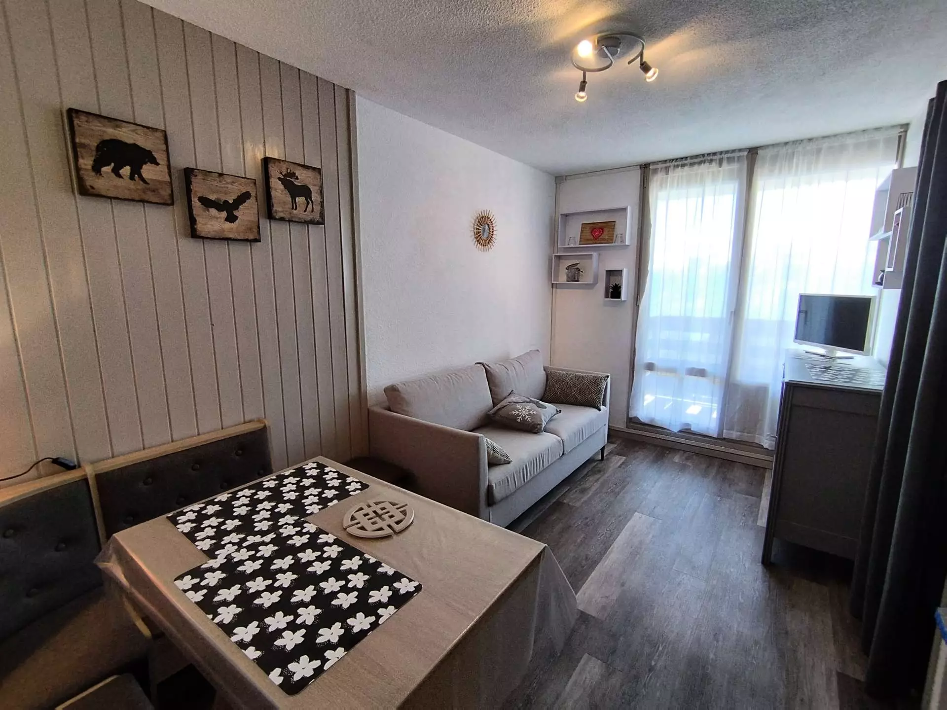 Il est composé d'un séjour avec cuisine équipée donnant sur un balcon offrant une très belle vue sur la vallée, une salle de bain avec WC séparé, une chambre separé du séjour avec un rideau, avec canapé lit double et un coin nuit dans l'entrée, bien séparé du séjour avec une porte, avec des lits superposés.