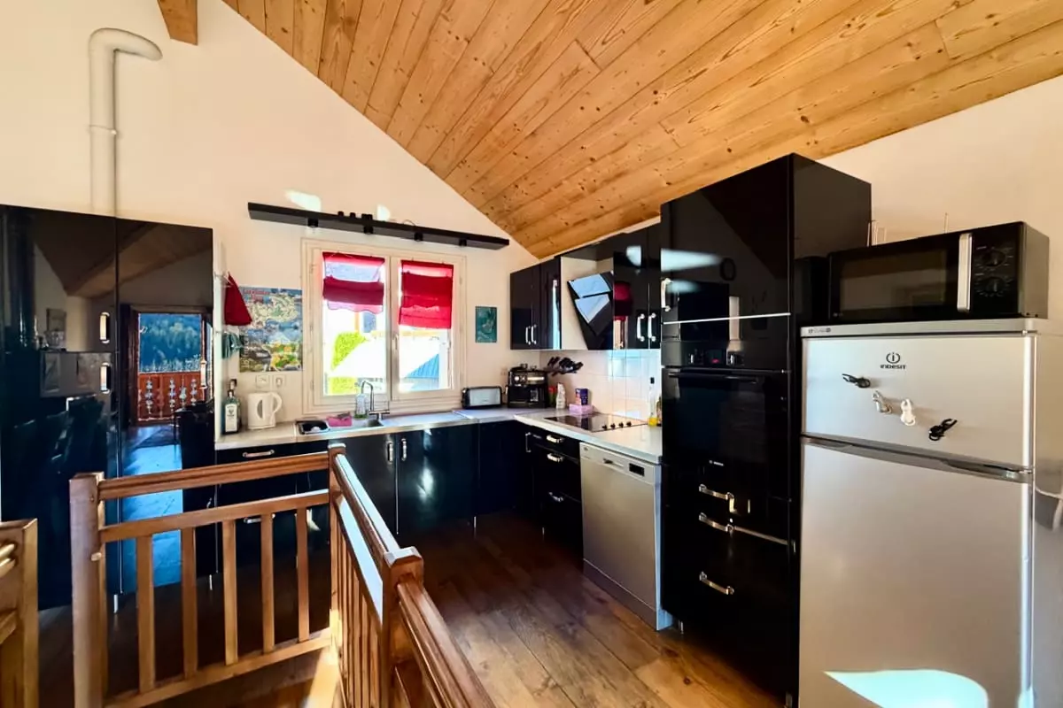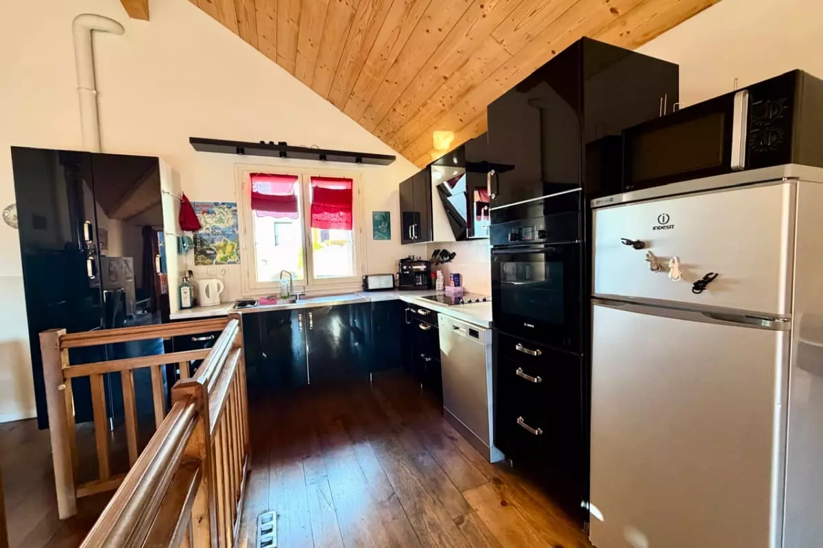 La cuisine entièrement équipée vous permettra de préparer vos plats préférés, tandis que la salle de douche fonctionnelle et l’espace repas avec table et chaises ajoutent au confort de votre séjour. Détendez-vous dans le salon confortable, équipé d’un canapé convertible de taille 140 x 190, parfait pour vos moments de convivialité. Un local à ski est également à votre disposition pour stocker votre matériel en toute sécurité.