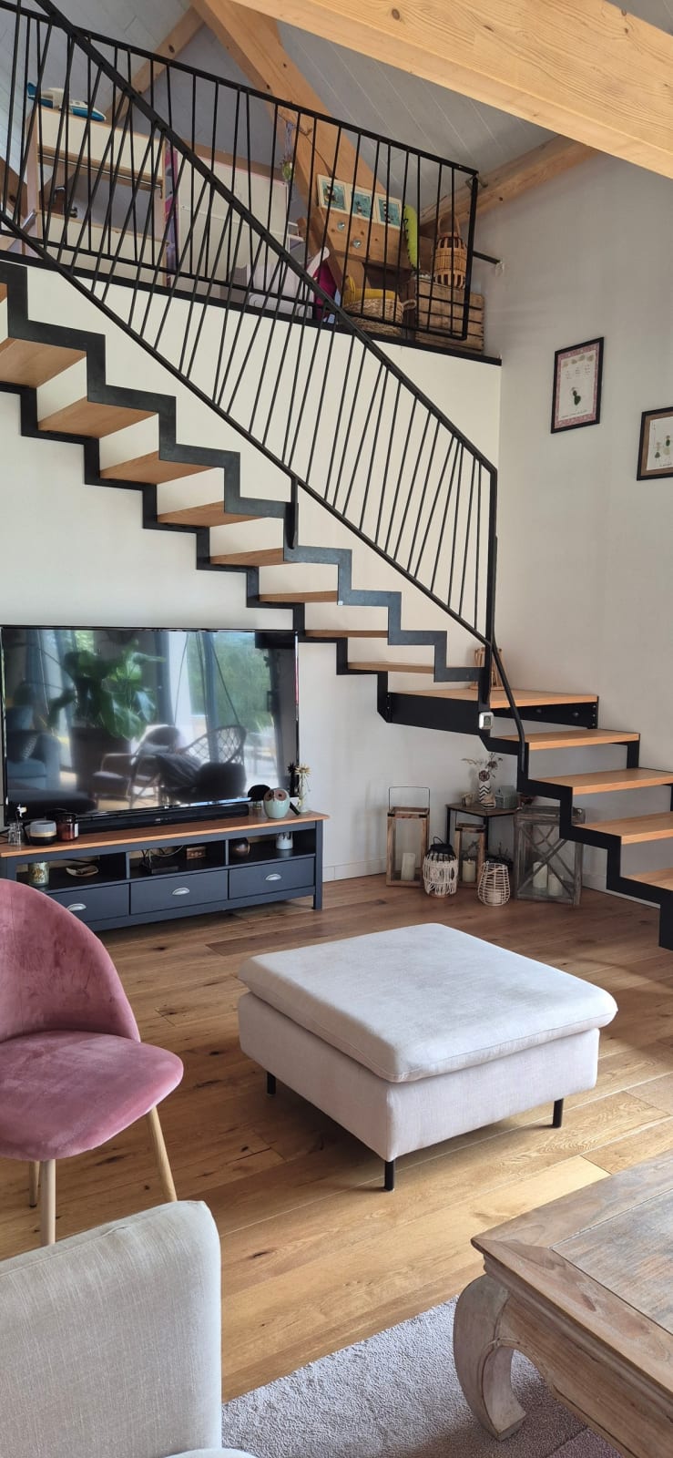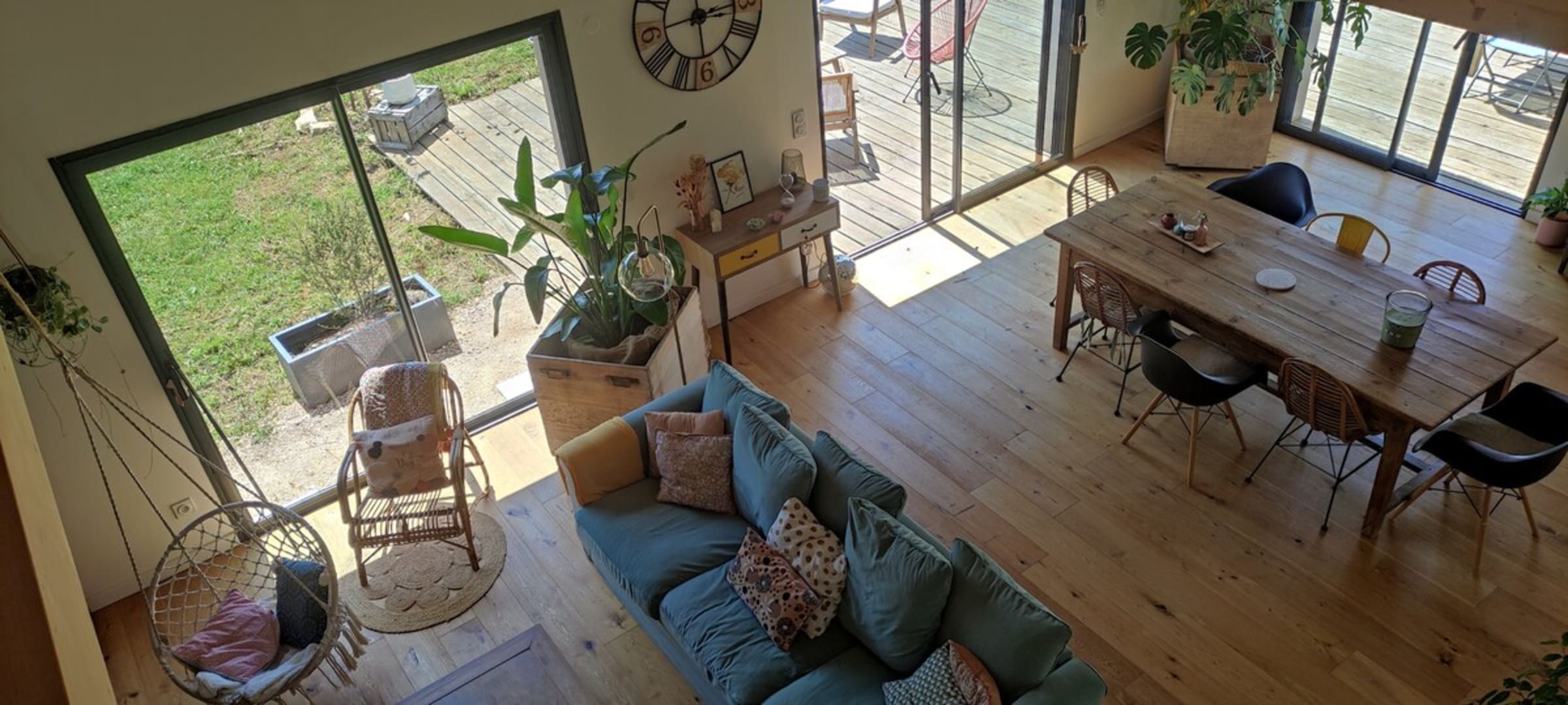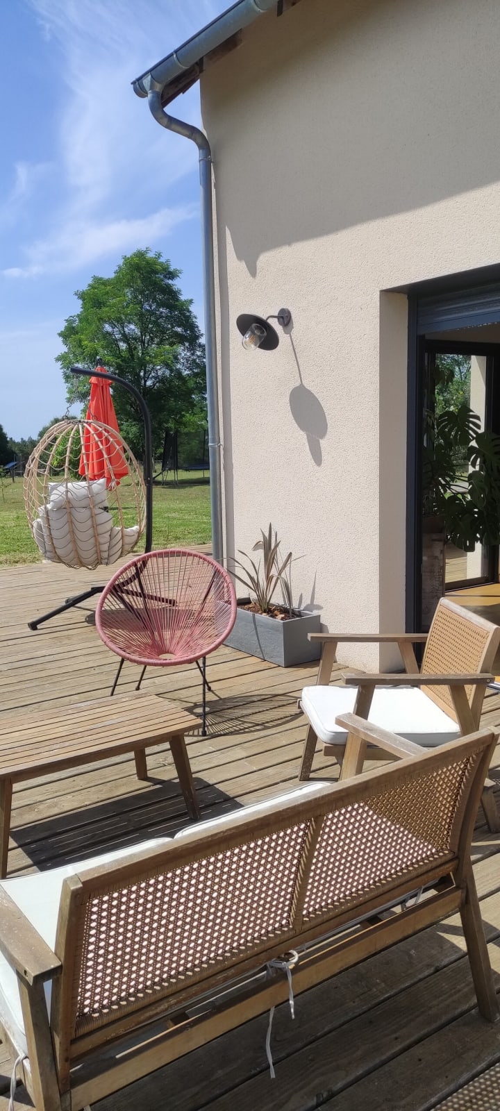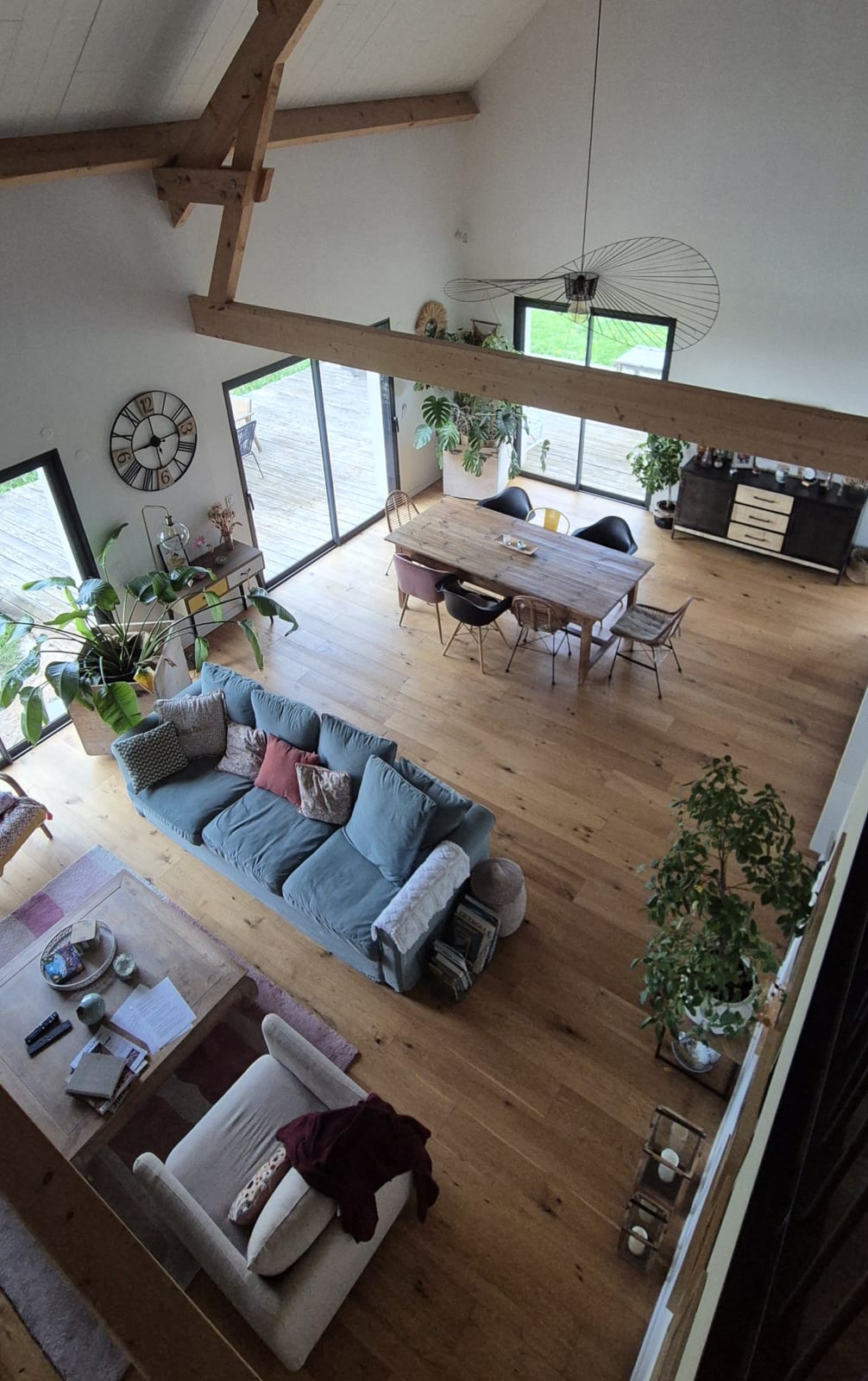 La maison est composée d'une entrée, d'un grand séjour, salle àmanger, une cuisine tout équipé a laquelle est attenant un cellier/buanderie avec tout le nécessaire (machine a laver, sèche linge...). Elle dispose de 3 chambres de plain pied ( 2 avec un lit en 160x200 et 1 avec un lit en 90x 190), une salle de bain et un toilette. L'étage est composé d'une grande mezzanine de 80m2 dans laquelle il y a un espace enfant, avec 3 lits en 90x190. La maison est implantée sur une parcelle d'environ 4000m2, elle dispose d'une grande terrasse pour profiter de l'extérieur.