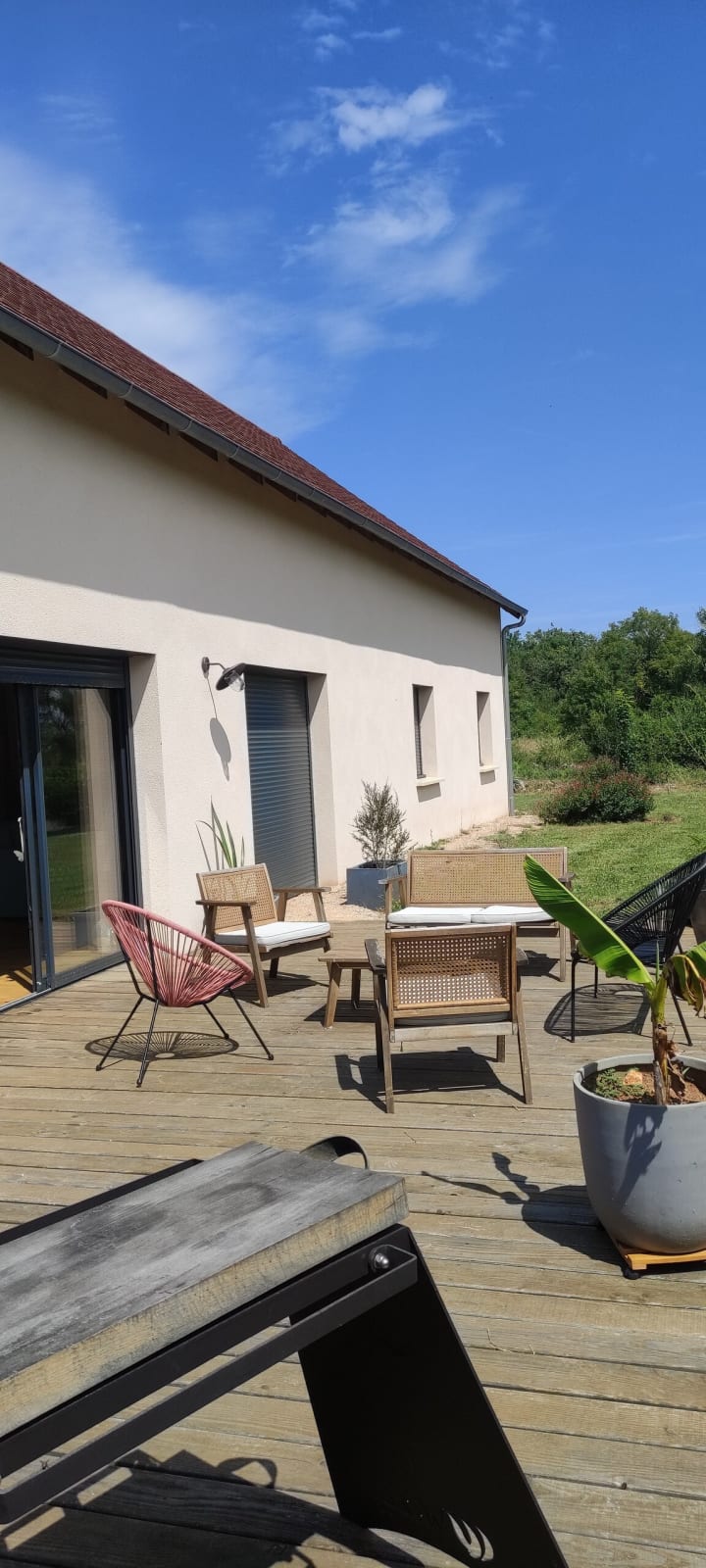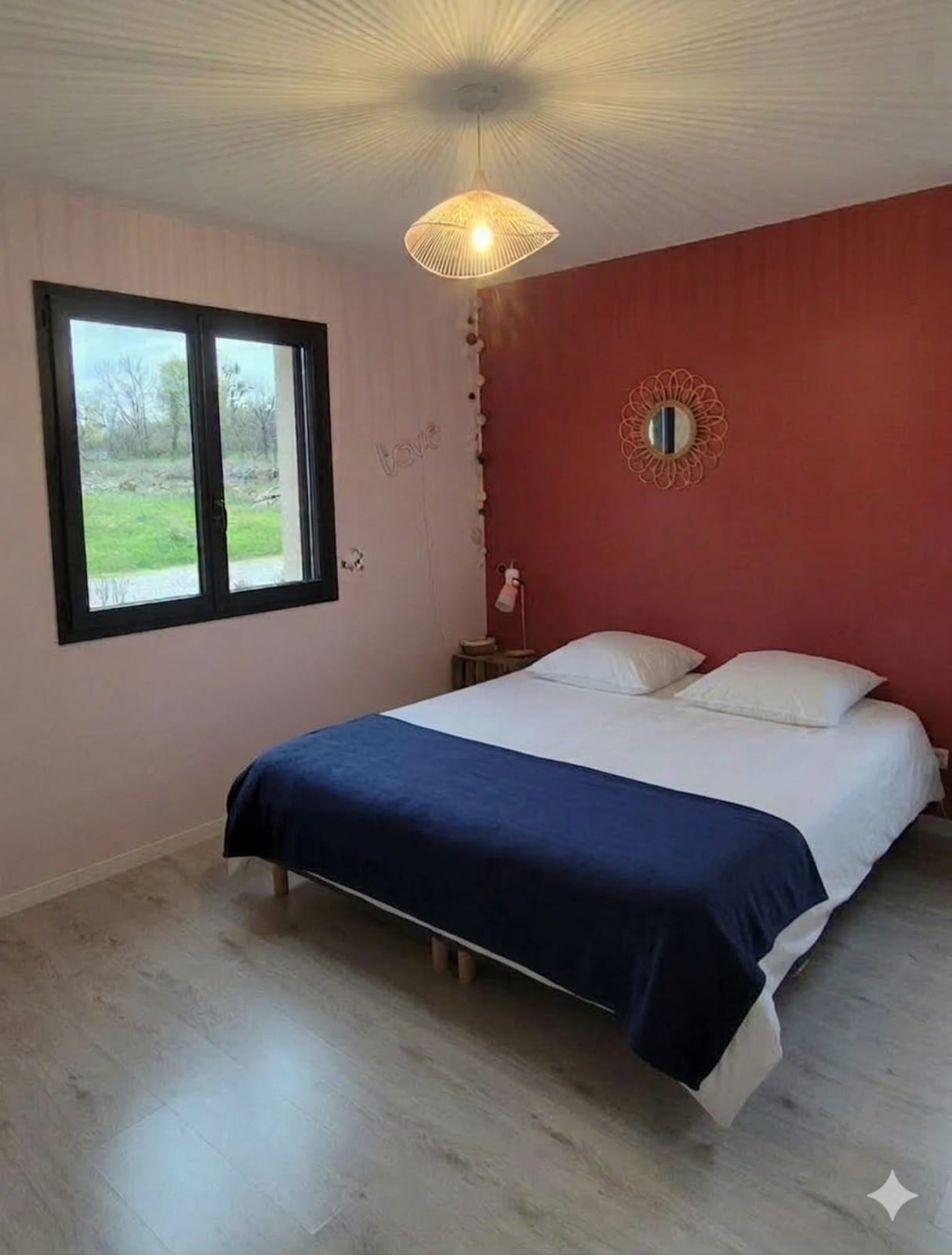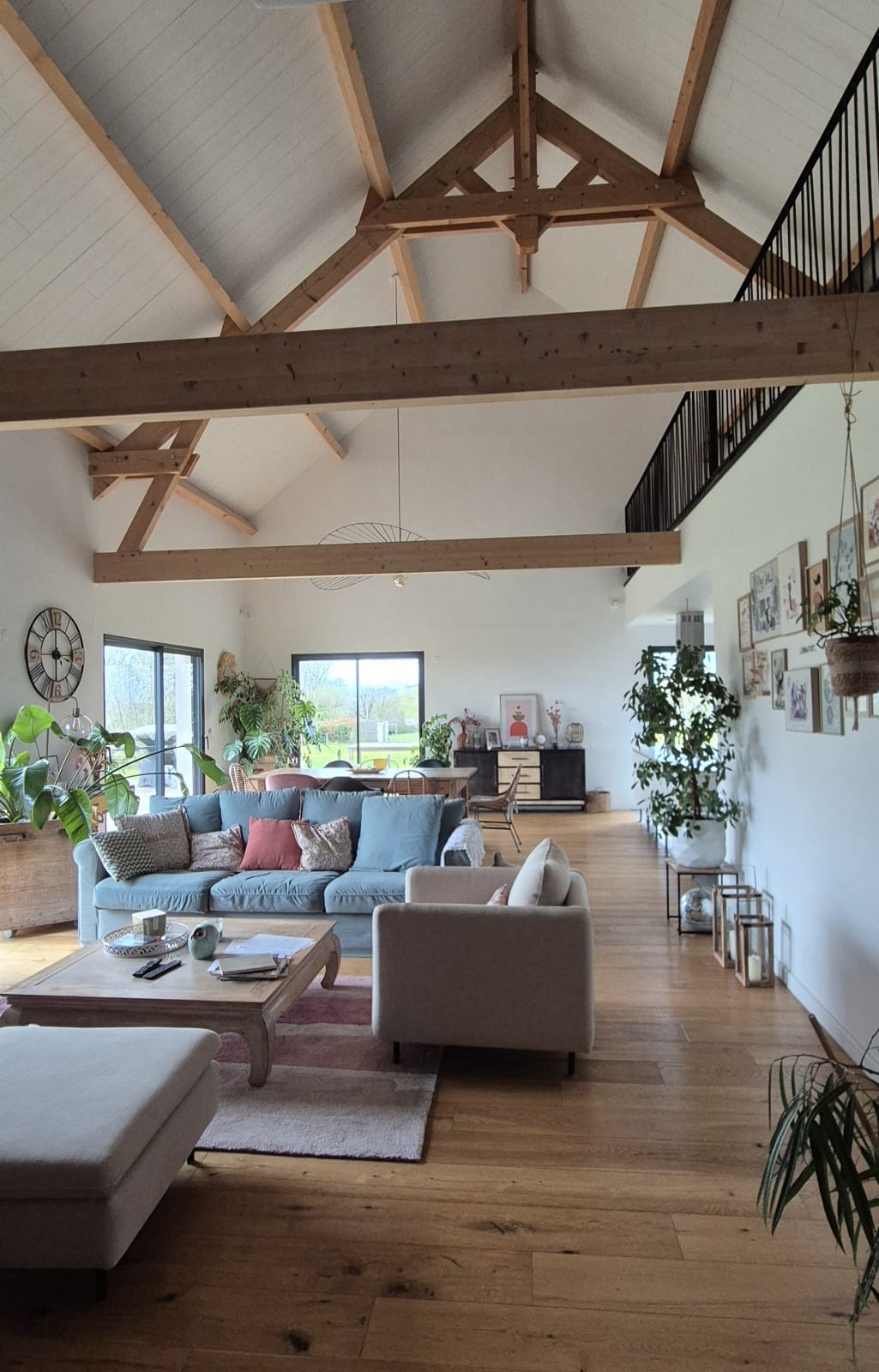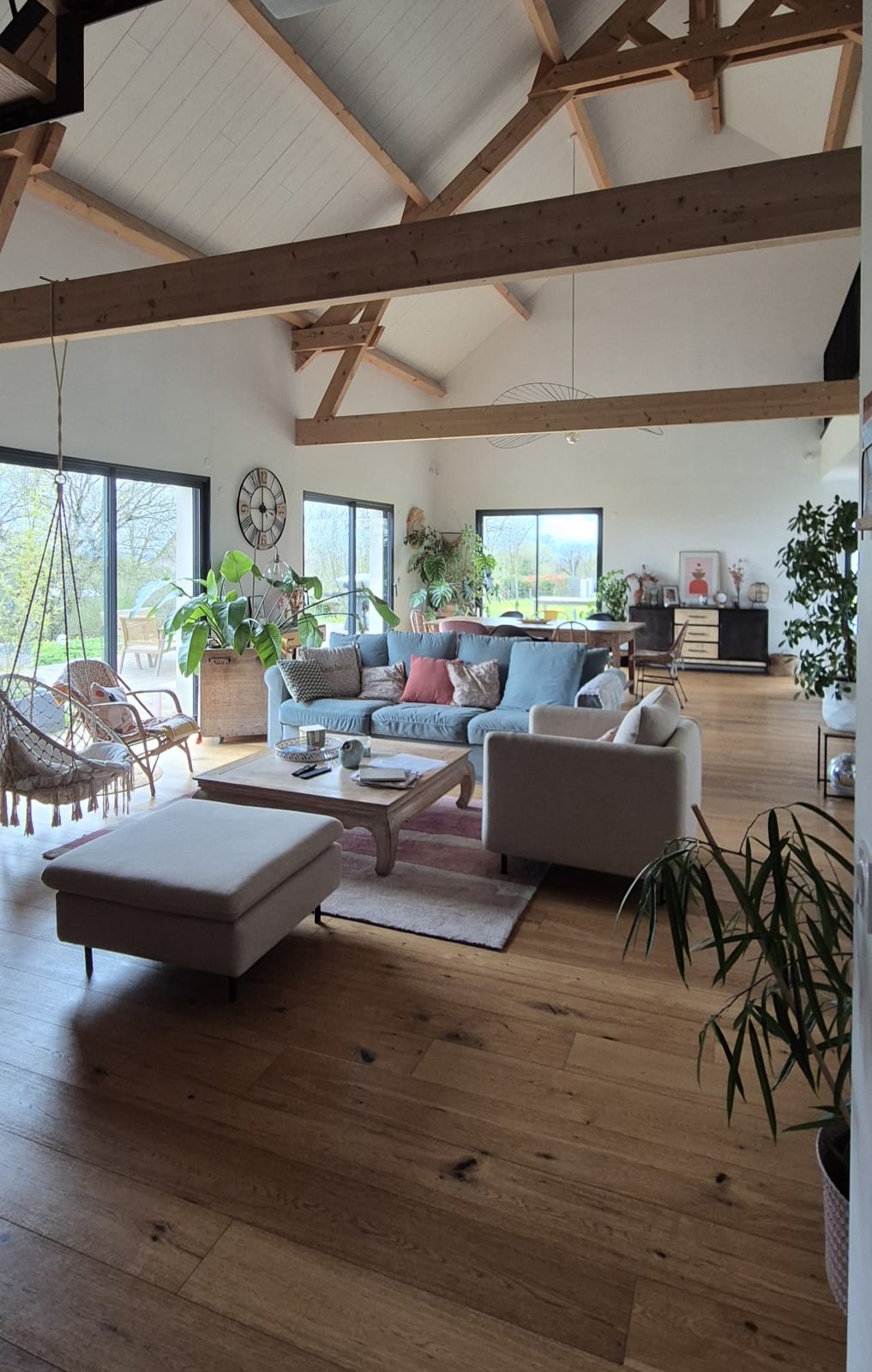 La maison est composée d'une entrée, d'un grand séjour, salle àmanger, une cuisine tout équipé a laquelle est attenant un cellier/buanderie avec tout le nécessaire (machine a laver, sèche linge...). Elle dispose de 3 chambres de plain pied ( 2 avec un lit en 160x200 et 1 avec un lit en 90x 190), une salle de bain et un toilette. L'étage est composé d'une grande mezzanine de 80m2 dans laquelle il y a un espace enfant, avec 3 lits en 90x190. La maison est implantée sur une parcelle d'environ 4000m2, elle dispose d'une grande terrasse pour profiter de l'extérieur.