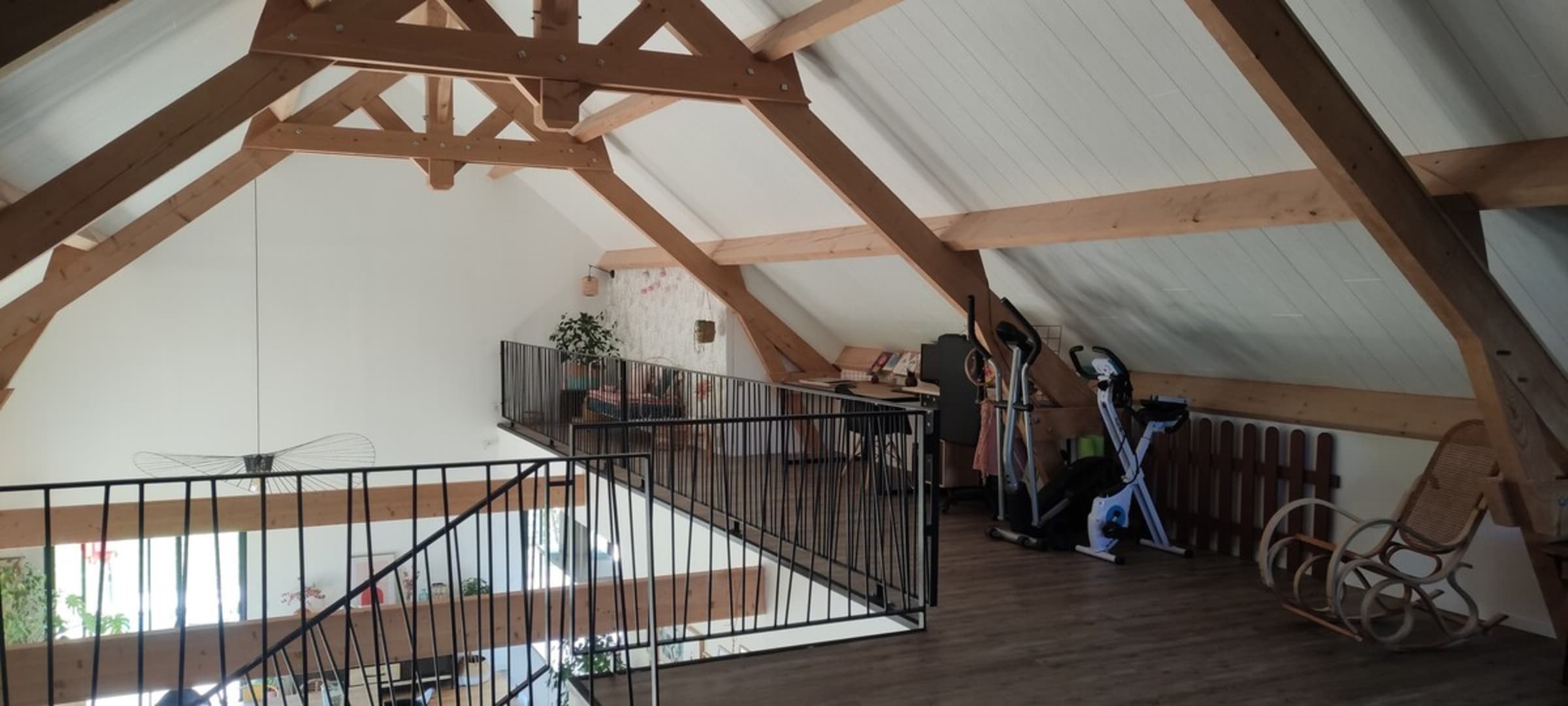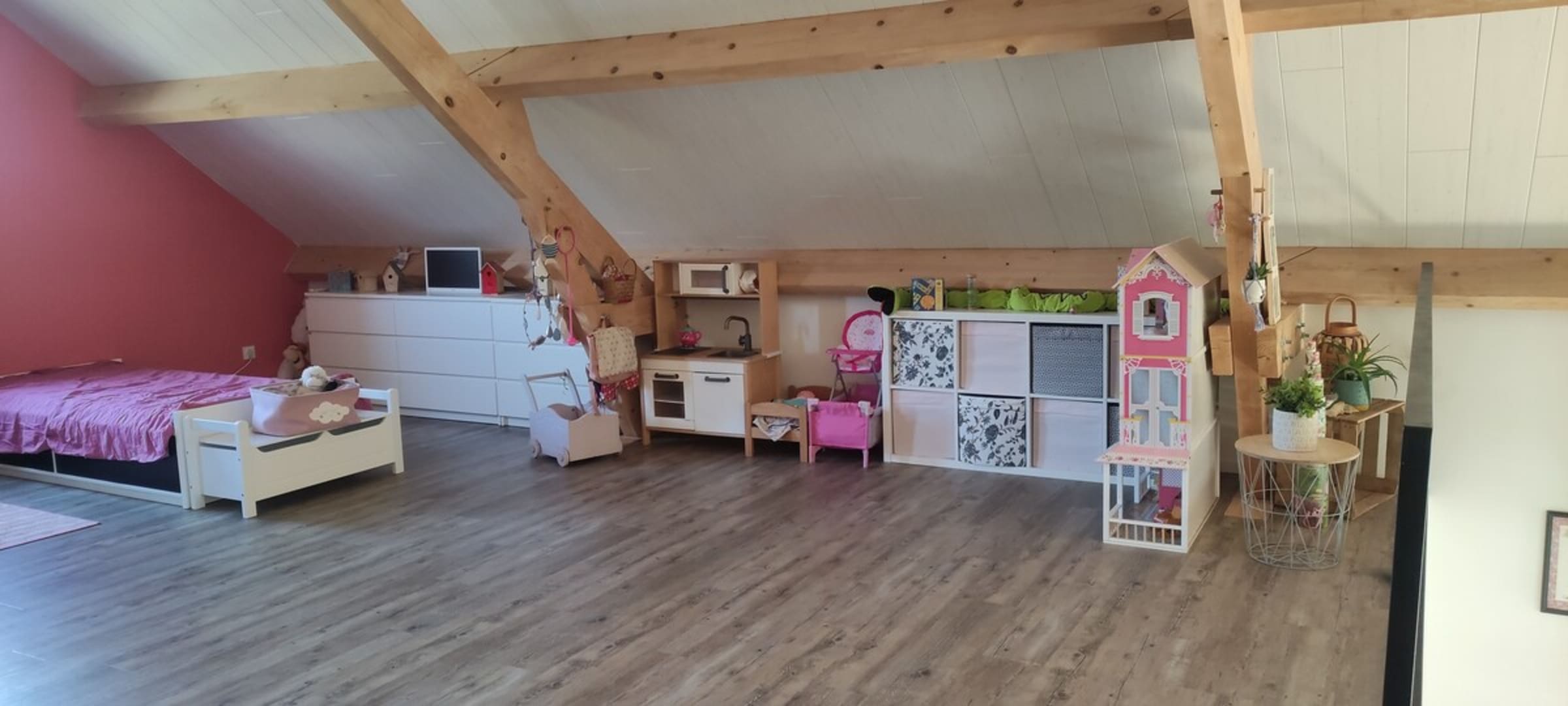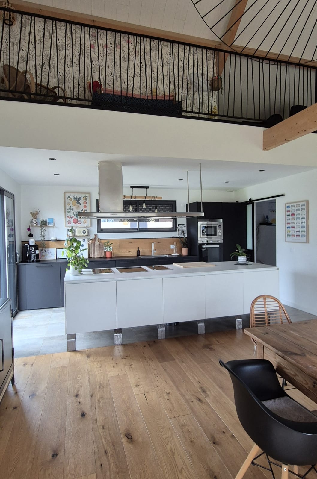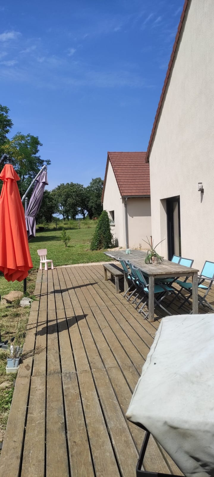 La maison est composée d'une entrée, d'un grand séjour, salle àmanger, une cuisine tout équipé a laquelle est attenant un cellier/buanderie avec tout le nécessaire (machine a laver, sèche linge...). Elle dispose de 3 chambres de plain pied ( 2 avec un lit en 160x200 et 1 avec un lit en 90x 190), une salle de bain et un toilette. L'étage est composé d'une grande mezzanine de 80m2 dans laquelle il y a un espace enfant, avec 3 lits en 90x190. La maison est implantée sur une parcelle d'environ 4000m2, elle dispose d'une grande terrasse pour profiter de l'extérieur.