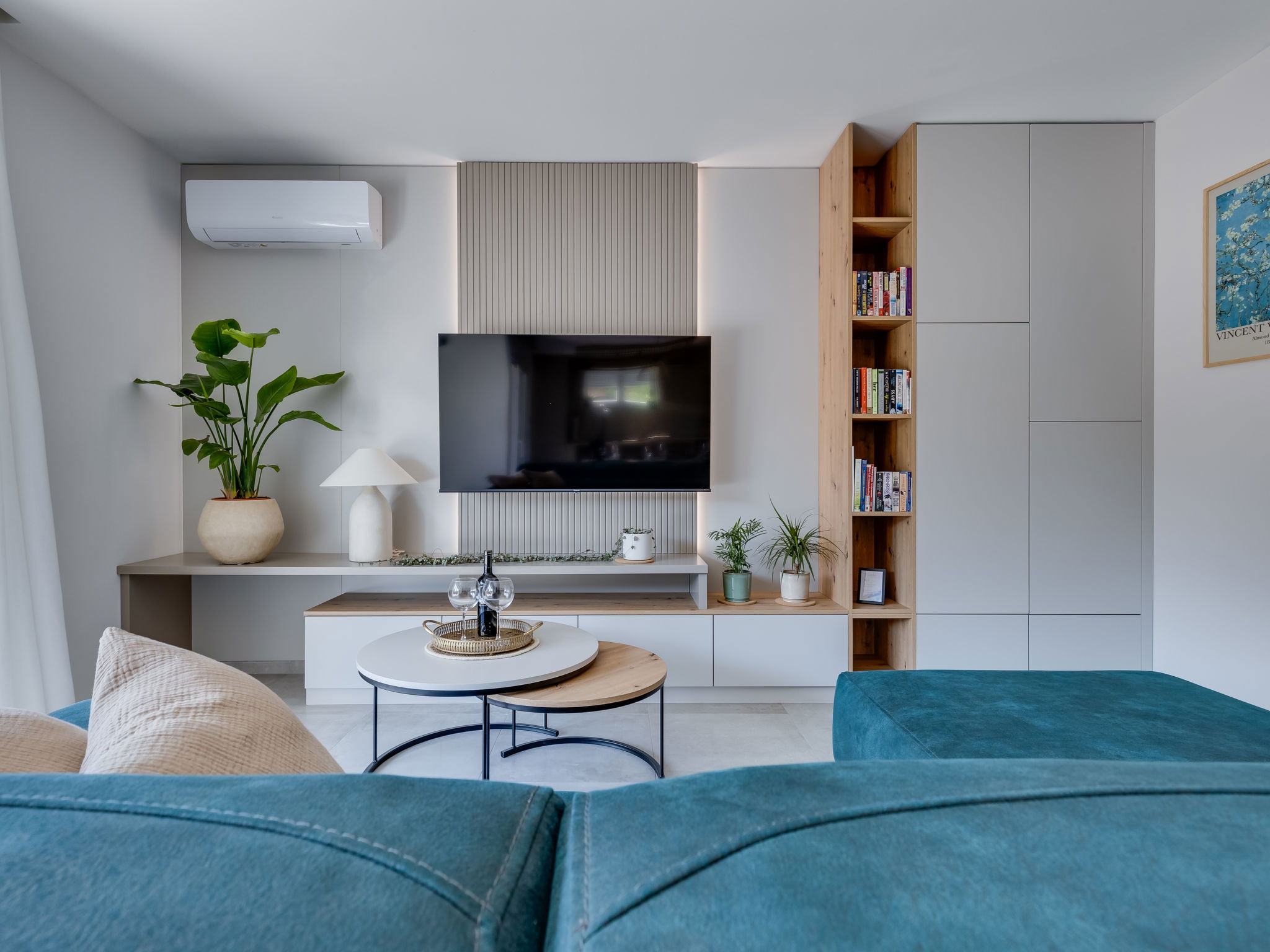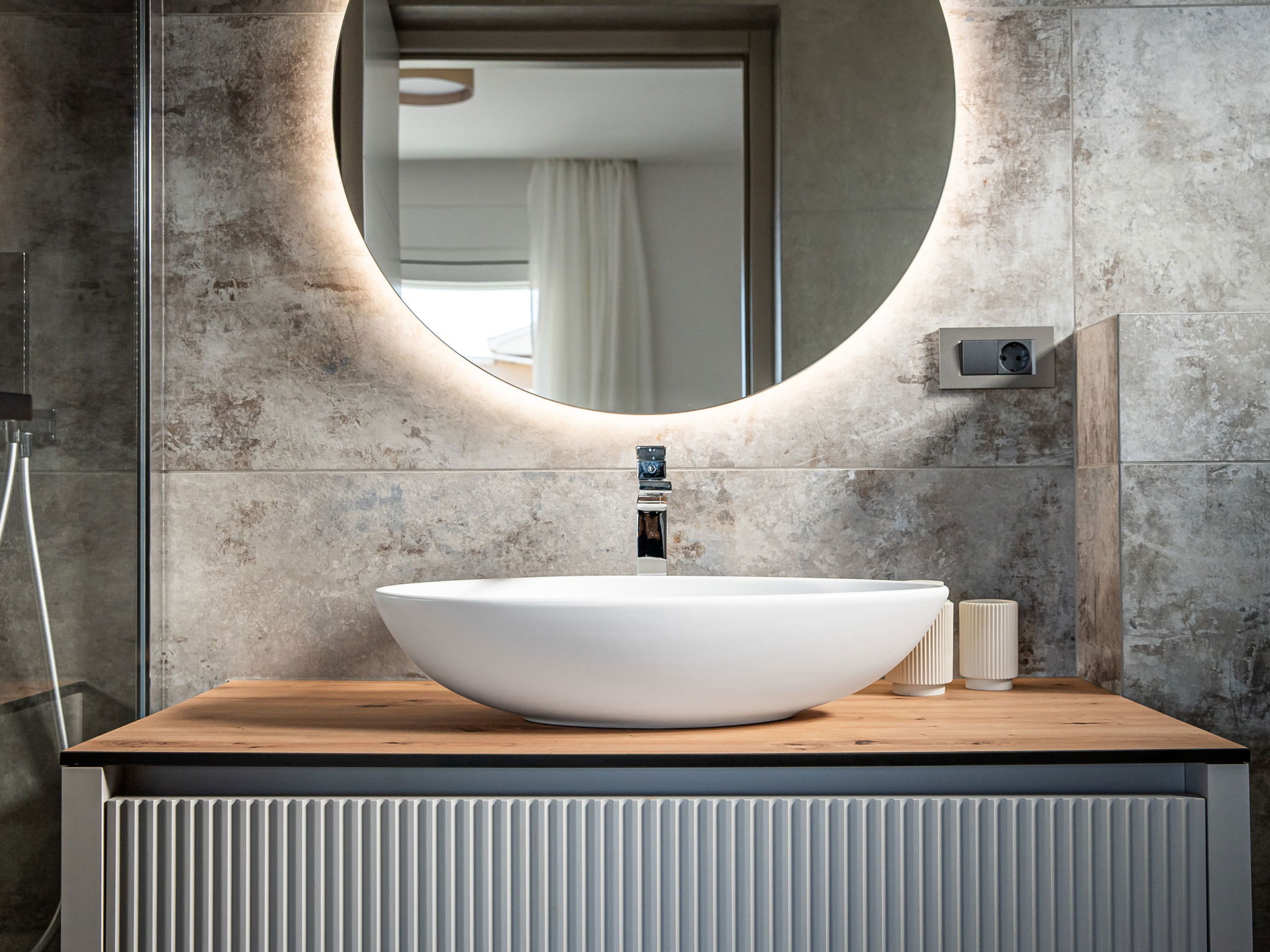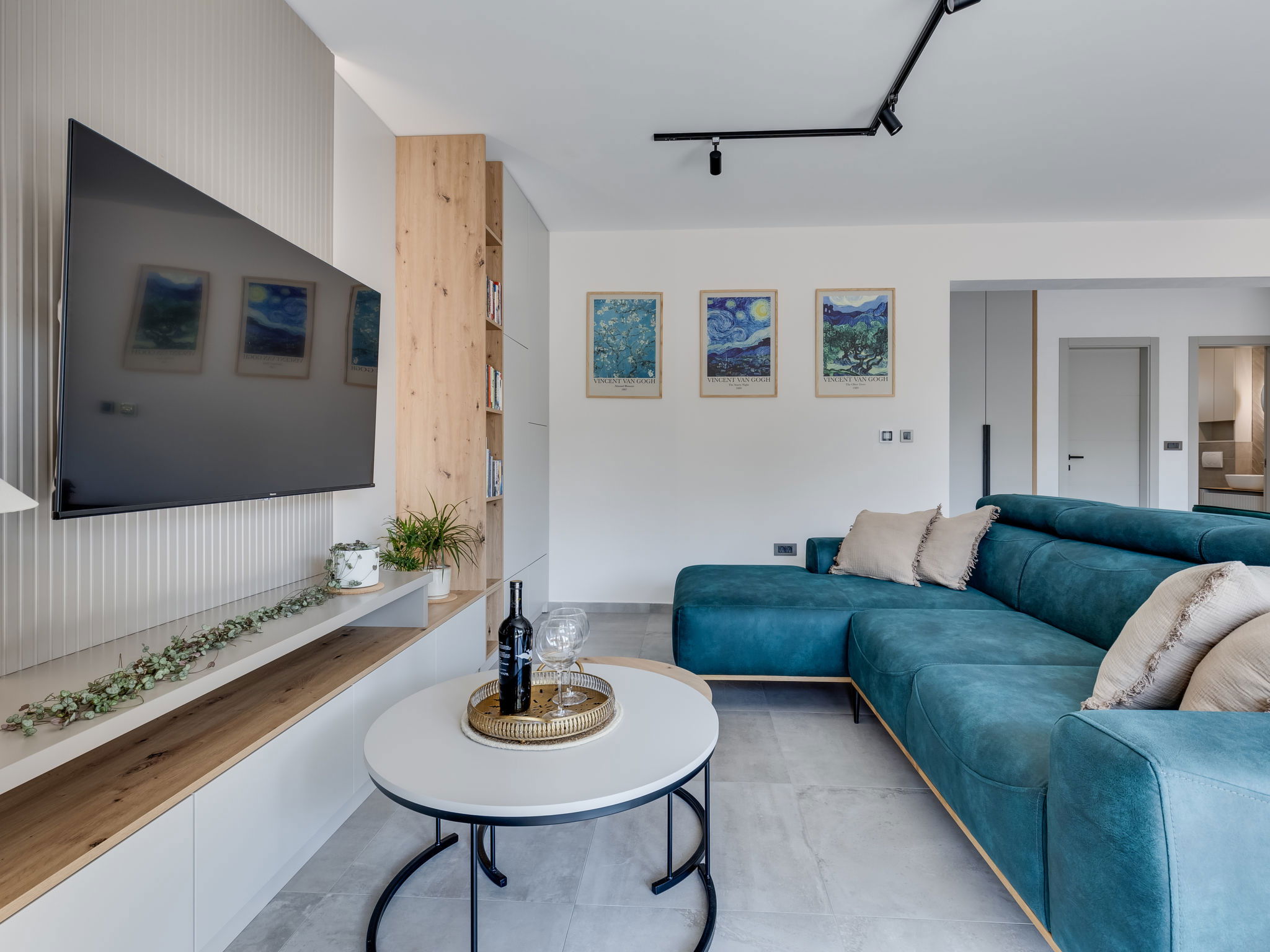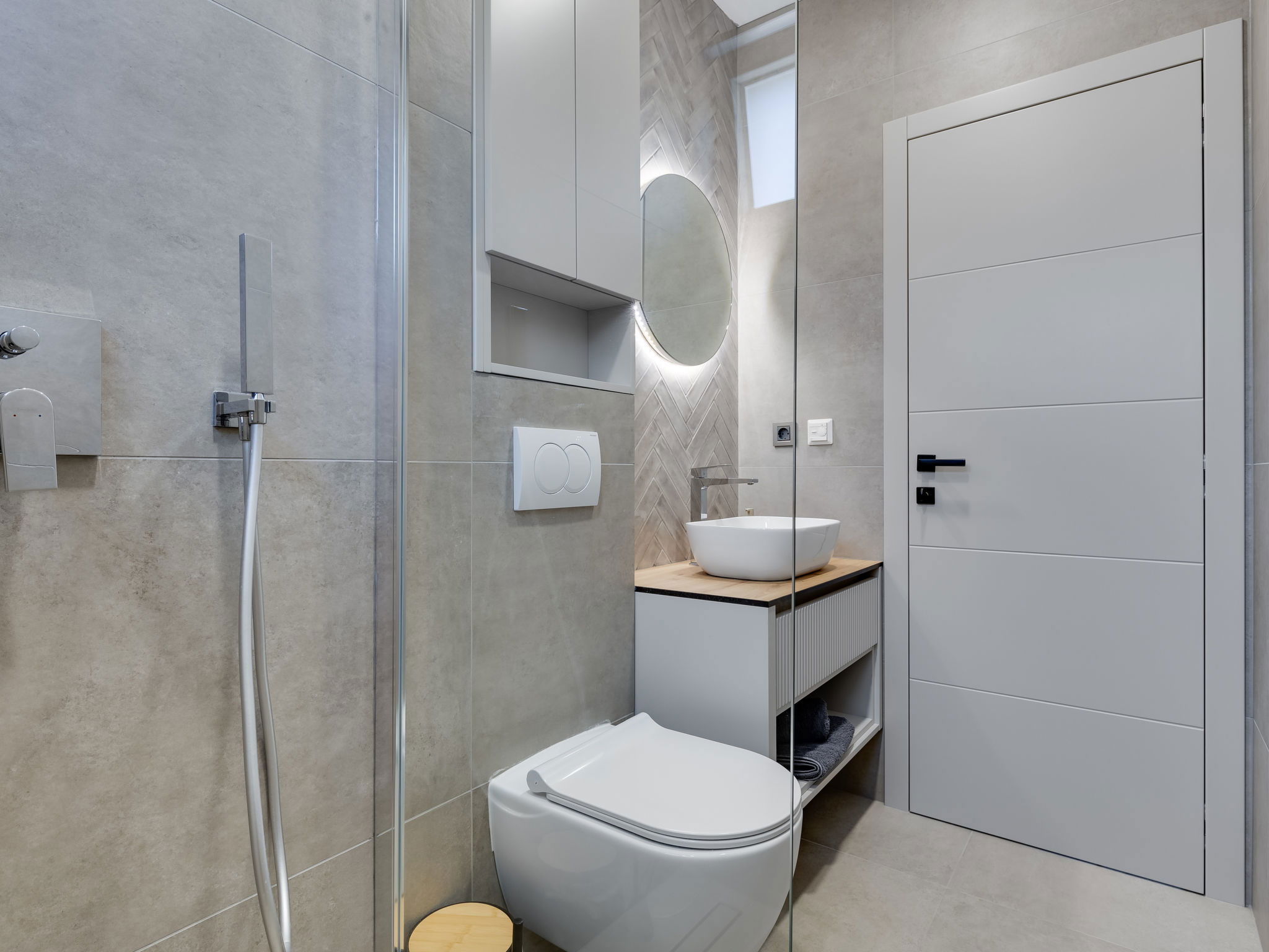 Maison 4 pièces 160 m2 sur 2 niveaux. Aménagement moderne: séjour/salle à manger avec TV (satellite) (écran plat), air-conditionné. Sortie sur la piscine. Cuisine ouverte (four, lave-vaisselle, 4 plaques à induction, congélateur, cafetière électrique). Douche/WC. À l'étage supérieur: 2 chambres, chaque chambre avec: 1 grand-lit (160 cm, longueur 200 cm), douche/WC et TV (satellite) (écran plat), air-conditionné. Sortie sur la terrasse. 1 chambre avec 1 lit (120 cm, longueur 200 cm), TV (satellite) (écran plat), air-conditionné. Chauffage par le sol, chauffage à air chaud. Balcon 15 m2. Chaises longues (5). A disposition: Internet (Connexion WIFI, gratuit). Veuillez noter: maison non-fumeur.
